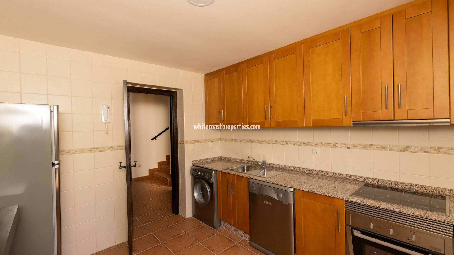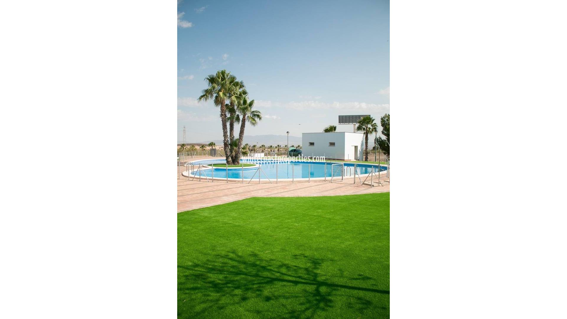 ADOSADOS LLAVE EN MANO EN FUENTE ALAMO, MURCIA Residencial de adosados, chalets independientes y pareados en Fuente Álamo, Murcia. Hay siete modelos diferentes de casas para elegir, diseñados para adaptarse al gusto de todos. Diseños rústicos combinados con materiales de primera calidad y un enfoque en el espacio de vida cómodo hay algo para todos. Los residentes de esta comunidad privada de hermosas y amplias casas también podrán disfrutar de sus propios jardines y piscinas comunitarias. Este adosado de diseño inusual tiene 2 dormitorios y 1 baño, cocina independiente, salón con puertas de patio que dan al porche cubierto. Hay opción de una piscina privada con un coste adicional. Fuente Álamo de Murcia es una localidad y municipio de la Región de Murcia, en el sur de España. Está situada a 22 km al noroeste de Cartagena y a 35 km al suroeste de Murcia. La ciudad se encuentra en la cuenca del Mar Menor, rodeada por las sierras de Algarrobo, Los Gómez, Los Victorias y el Carrascoy. El agua de estas montañas fluye hacia la Rambla de Fuente Álamo y luego hacia el Mar Menor. Fuente Álamo se encuentra a 30 minutos del aeropuerto de Murcia - Corvera.