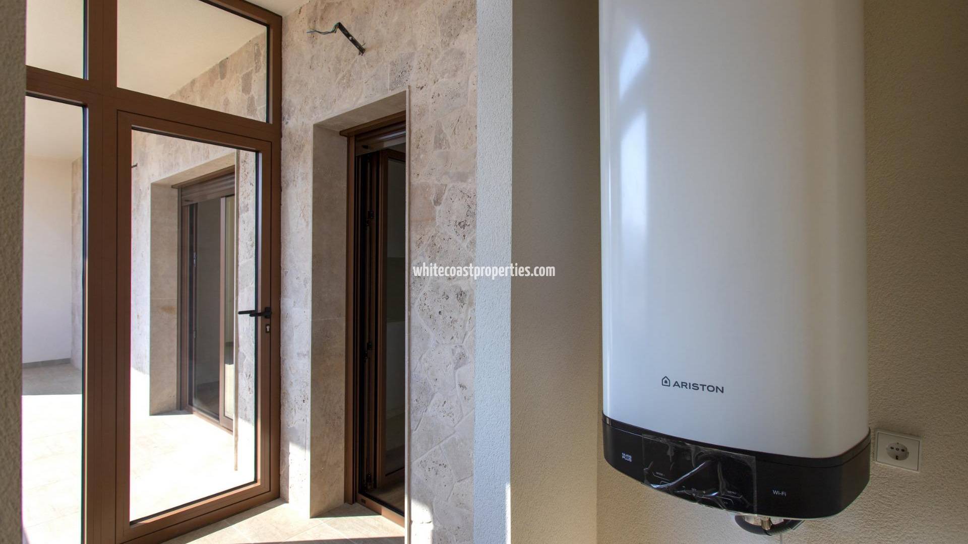 BUNGALOWS DE OBRA NUEVA EN HONDON DE LAS NIEVES 4 bungalows de obra nueva situados en Hondón de las Nieves (Alicante) Todos los bungalows disponen de 3 dormitorios con armarios empotrados, 2 baños, amplio salón comedor, cocina amueblada y terraza. Las viviendas están disponibles en planta baja con terraza/jardín delantero y trasero y en planta alta con terraza y solarium privado. Las viviendas de la primera planta disponen de placas fotovoltaicas en el tejado para ahorro energético. Las cocinas están totalmente amuebladas y acabadas con encimeras de granito o aglomerado sintético (silestone o simular). Los baños están acabados con sanitarios de alta calidad y grifería con cisterna empotrada. Estas viviendas cuentan con preinstalación de aire acondicionado por conductos con bomba de calor, ventilación forzada con recuperador de calor, sistema de aerotermia para agua caliente sanitaria, los más modernos aislamientos térmicos y acústicos, carpintería exterior de aluminio con rotura de puente térmico y persianas. Hondón de las Nieves es un municipio de la Comunidad Valenciana, España. Está situado al suroeste de la provincia de Alicante, en la comarca del Vinalopó Medio. Las playas y el aeropuerto de Alicante están muy cerca, a sólo 30 minutos en coche.