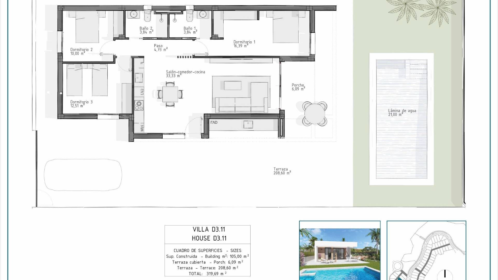 Villas de nueva construcción en Vera Playa, Almería: viviendas modernas cerca del mar Vida contemporánea en Pueblo Salinas, a solo 2 km de la playa Presentamos una impresionante nueva promoción residencial situada en la codiciada zona de Vera Playa, dentro de la exclusiva urbanización Pueblo Salinas. Este moderno complejo ofrece un estilo de vida privilegiado a solo 2 km de las playas de Vera (Almería), con espectaculares vistas al mar y un tranquilo entorno mediterráneo ideal para vivir todo el año o disfrutar de las vacaciones. Viviendas elegantes con comodidad y estilo modernos Esta nueva fase consta de 17 villas de alta calidad pudiendo elegir entre viviendas de 3 o 4 dormitorios y 2 o 3 baños completos en una planta para mayor comodidad. Con piscina privada con bomba de calor, y zona de aparcamiento en parcela que disponen de preinstalación de punto de carga eléctrica para vehículo, ofreciendo el máximo confort en una ubicación inmejorable, ideal para disfrutar del sol, la playa y la calidad de vida del Mediterráneo durante todo el año. Algunas de estas viviendas cuentan con sótano (brindando así un espacio adicional que se adapta a sus necesidades y estilo de vida) y/o solárium privado en azotea con cocina de verano y zona de pérgola con la colocación de placas solares. Las villas cuentan con interiores elegantes y funcionales, disponen de cocinas totalmente equipadas con todos los electrodomésticos, y además, incluyen preinstalación de climatización por conductos. Todas las viviendas cuentan con: Cocinas abiertas totalmente equipadas con frigorífico integrado, lavavajillas, placa de inducción, horno, microondas y campana extractora Espacios diáfanos y luminosos con iluminación LED en toda la vivienda (excepto en los dormitorios) Persianas motorizadas en los dormitorios Baños con acabados modernos, incluyendo calefactores para toallas, platos de ducha con mamparas de cristal y muebles empotrados Preinstalación de aire acondicionado por conductos Sistema aerotérmico para una producción eficiente de agua caliente Puerta de entrada de seguridad Ubicación privilegiada con excelentes conexiones Vera Playa es un popular destino costero conocido por sus amplias playas de arena y su estilo de vida relajado. La ubicación de la urbanización ofrece fácil acceso a los servicios y atracciones esenciales: Playa: 2 km Desert Springs Golf Resort: 8 km Centro de Vera: 5 km Puerto deportivo y restaurantes de Garrucha: 6 km Parque Comercial Mojácar: 10 km Aeropuerto de Almería: 85 km (1 hora en coche) Haga de Vera Playa su nuevo hogar Tanto si busca una residencia permanente, un refugio para las vacaciones o una inversión inteligente, estas villas de nueva construcción ofrecen un valor inigualable en una de las zonas más deseadas de la Costa de Almería. Póngase en contacto con nosotros hoy mismo para obtener más información y programar su visita.
