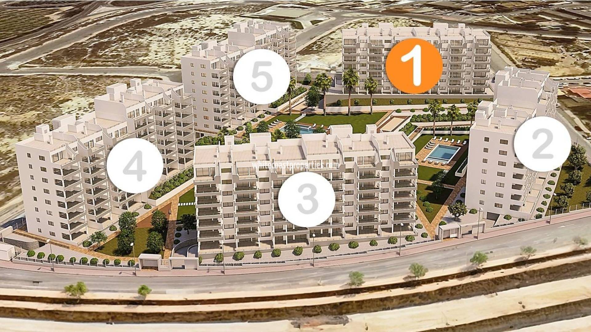 Nueva Promoción Residencial en San Miguel de Salinas Exclusivos Apartamentos en un Entorno Natural Único Descubra esta nueva promoción en San Miguel de Salinas, un residencial exclusivo compuesto por 5 bloques de apartamentos con amplias zonas comunes, diseñadas para ofrecer confort y calidad de vida. Este complejo cerrado cuenta con un espectacular jardín comunitario de casi 10.000 m², distribuido en tres niveles e integrado con tres piscinas comunitarias, rodeadas de césped natural y una cuidada selección de árboles y plantas. Las viviendas han sido diseñadas para aprovechar la luz natural y las vistas despejadas, ofreciendo una opción ideal tanto como segunda residencia como para vivir todo el año. Tipos de Viviendas Disponibles En este exclusivo residencial, podrá elegir entre: Plantas bajas con amplios jardines privados. Plantas intermedias con terrazas de más de 20 m². Áticos con terrazas y solárium privado en la azotea. Actualmente está disponible el Bloque 1, compuesto por 42 viviendas con una excelente relación calidad-precio. Calidades y Equipamiento de Primer Nivel Todas las viviendas se entregan con un completo equipamiento, incluyendo: Electrodomésticos incluidos en la cocina. Baños completamente equipados, con muebles, mamparas y sistema de iluminación LED. Instalación completa de aire acondicionado por conductos. Plaza de garaje y trastero incluidos en el precio. Además, disponemos de pisos piloto en otro proyecto similar, para que pueda conocer la calidad de los acabados antes de la entrega. Ubicación Estratégica en la Costa Blanca San Miguel de Salinas es una encantadora localidad en la comarca de la Vega Baja del Segura, a solo unos minutos de las mejores playas y campos de golf de la Costa Blanca. Rodeado de un entorno natural privilegiado, el municipio ofrece un ambiente tranquilo y todos los servicios esenciales, como supermercados, restaurantes, centros de salud y colegios. Distancias a los Principales Puntos de Interés Campos de Golf Las Colinas y Campoamor – 7 km. Playas de Orihuela Costa y Torrevieja – 10 km. Centro Comercial Zenia Boulevard – 9 km. Aeropuerto de Alicante – 50 km. Aeropuerto de Murcia-Corvera – 55 km. Su Nuevo Hogar le Espera en San Miguel de Salinas Tanto si busca una inversión en la Costa Blanca como una vivienda para disfrutar todo el año, esta promoción ofrece una combinación perfecta de lujo, comodidad y ubicación inmejorable. Contáctenos hoy mismo para más información y para programar una visita.