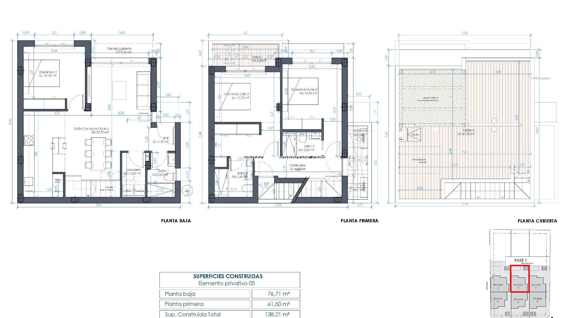 Lujosos chalets adosados de nueva construcción en Benijófar, Costa Blanca Ubicación privilegiada en Benijófar con fácil acceso a todos los servicios Descubra un nuevo nivel de vida de lujo en la encantadora ciudad de Benijófar, una zona muy solicitada en la Costa Blanca española. Estas villas adosadas de nueva construcción están situadas en un barrio vibrante con una mezcla perfecta de modernidad y encanto local, ofreciendo fácil acceso a todos los servicios y atracciones esenciales. A sólo 10 km de las doradas playas de Guardamar del Segura y a 30 km del aeropuerto de Alicante, las villas están estratégicamente situadas para mayor comodidad y estilo de vida. Diseño espacioso y moderno con acabados de primera calidad Cada villa está diseñada con una estética contemporánea, con líneas limpias y acabados de alta calidad. La distribución incluye tres amplios dormitorios y tres cuartos de baño, proporcionando un amplio espacio para familias o invitados. El salón-comedor de planta abierta conecta perfectamente con la cocina totalmente equipada, ofreciendo un espacio perfecto para el entretenimiento y las reuniones familiares. Los grandes ventanales permiten la entrada de mucha luz natural, creando un ambiente luminoso y acogedor en toda la casa. Espacios exteriores privados con piscina y solarium Estas villas incluyen espacios exteriores privados diseñados para relajarse y disfrutar del clima mediterráneo. El jardín embaldosado cuenta con una piscina de 2,5x5m, perfecta para refrescarse en los días calurosos, y un amplio espacio de aparcamiento. Las propiedades también vienen con un solarium en la azotea, donde se puede disfrutar de las vistas de los alrededores. El solarium está equipado para una posible instalación de jacuzzi, por lo que es un lugar perfecto para relajarse y disfrutar de la puesta de sol. Inclusiones de alta calidad para el máximo confort Todas las villas están totalmente equipadas con electrodomésticos de alta gama, como frigorífico con congelador panelado, placa de inducción, lavavajillas panelado, microondas integrado y horno. Otras características incluyen unidades de aire acondicionado para el control del clima, calefacción por suelo radiante en los baños y persianas eléctricas para mayor privacidad. Los focos y apliques exteriores realzan el ambiente, haciendo que cada villa sea a la vez funcional y lujosa. Benijófar: Una mezcla de tradición y modernidad Benijófar es un pueblo encantador con un ambiente acogedor, conocido por su hermosa iglesia, tiendas locales, supermercados, farmacias, bancos y deliciosos restaurantes. Los amantes de la naturaleza apreciarán el cercano parque natural, ideal para pasear y explorar. Los entusiastas del golf encontrarán varios campos de golf a poca distancia en coche, mientras que las familias pueden disfrutar de los cercanos parques acuáticos de Rojales (4 km) y Torrevieja (12 km). Las villas también están bien comunicadas, ya que las autopistas N-332 y AP-7 facilitan el acceso a las ciudades de los alrededores. ¿Listo para hacer de Benijófar su nuevo hogar? Disfrute del lujo y la comodidad de estas modernas villas en Benijófar. No pierda esta oportunidad de disfrutar de la vida en la Costa Blanca. Póngase en contacto con nosotros hoy mismo para concertar una visita y dar el primer paso hacia la casa de sus sueños.