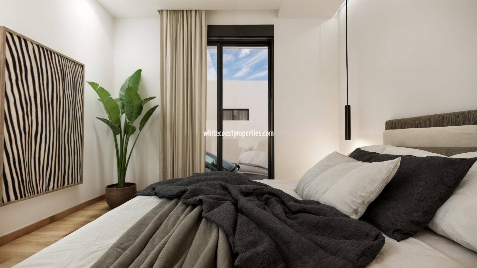 Chalets adosados de obra nueva en Dolores Esta moderna urbanización de Dolores cuenta con chalets adosados de nueva construcción. Diseñadas con un estilo contemporáneo y pensando en la comodidad, cada casa se distribuye en dos plantas, con 3 dormitorios y 3 baños. La cocina abierta conecta perfectamente con el salón, que conduce directamente a una terraza privada y al jardín. Además, cada vivienda cuenta con su propia piscina privada y plaza de aparcamiento. Acabados de alta calidad y servicios modernos Estas viviendas están construidas con materiales y acabados de alta calidad. La carpintería exterior es de aluminio con rotura de puente térmico, y los baños cuentan con mamparas de ducha de cristal. La iluminación LED instalada en toda la vivienda garantiza la eficiencia energética y un ambiente moderno. Estas características se combinan para crear un entorno de vida cómodo y elegante para usted y su familia. Ubicación privilegiada cerca de los servicios diarios Situadas en las afueras de la encantadora localidad de Dolores, estas viviendas están a un corto paseo de los servicios esenciales del día a día, incluyendo tiendas, restaurantes y servicios locales. Dolores forma parte de la comarca de la Vega Baja del Segura, al sur de la provincia de Alicante, conocida por sus paisajes agrícolas y su relajado ritmo de vida. Cerca de Puntos de Interés Playa de La Marina: 10 km Playa de Guardamar: 10 km Aeropuerto de Alicante: 30 km Aeropuerto Murcia-Corvera: 60 km Campos de Golf: 15 km Centros Comerciales: 12 km Perfecto para disfrutar del estilo de vida de la Costa Blanca Con el clima mediterráneo, hermosas playas a un corto trayecto en coche y varios campos de golf cercanos, esta urbanización ofrece el equilibrio ideal de relajación y ocio. Tanto si busca una casa de vacaciones como una residencia permanente, estas viviendas de nueva construcción en Dolores ofrecen una vida moderna en un lugar sereno y bien comunicado.