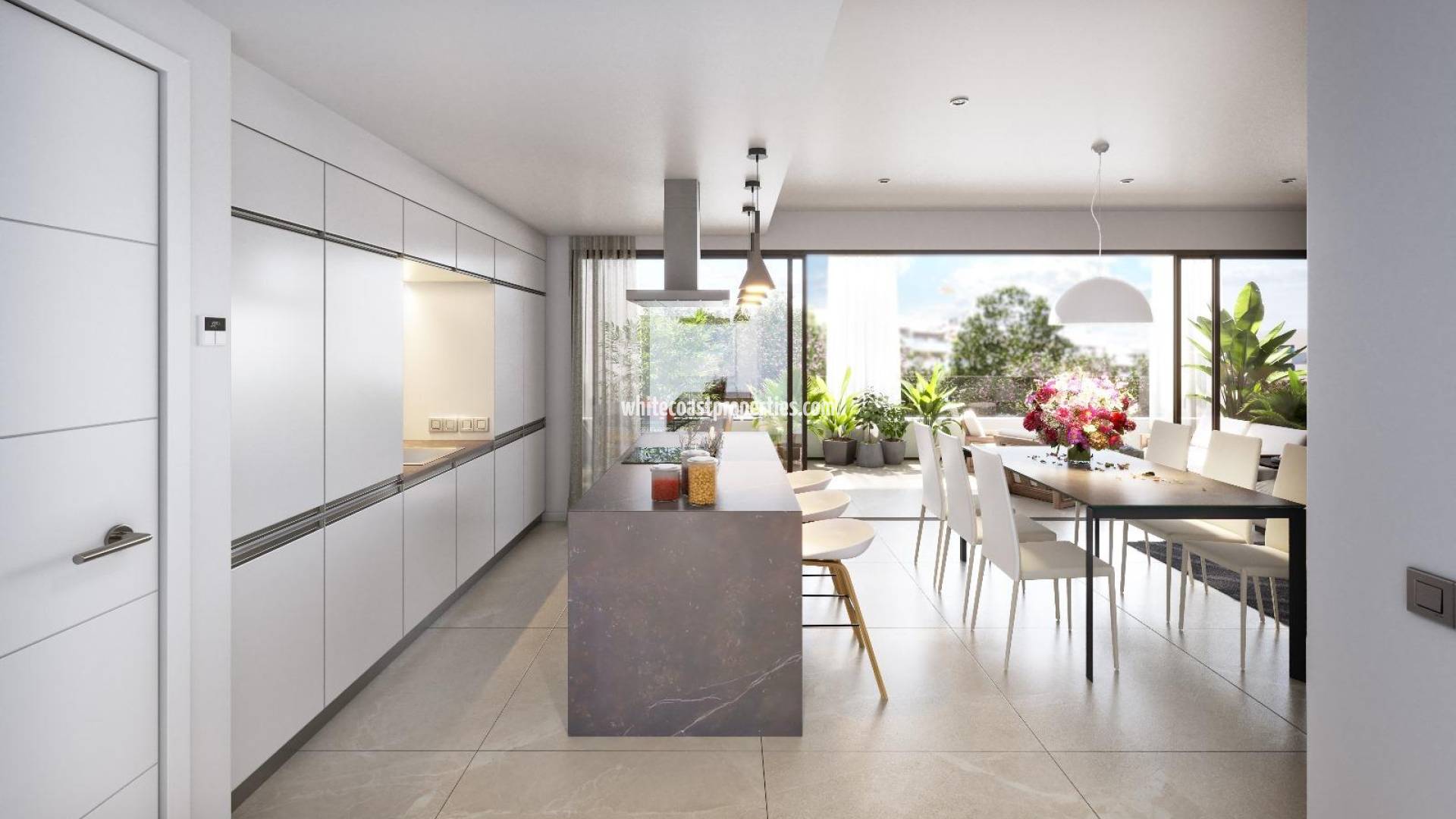 COMPLEJO RESIDENCIAL DE OBRA NUEVA EN SAN JUAN DE ALICANTE Complejo residencial de Obra Nueva de 32 modernos apartamentos y áticos situado en la zona de Nou Nazareth en San Juan de Alicante. Dispone de amplias terrazas, plaza de garaje, trastero, zona de coworking, gimnasio, piscina y espacios ajardinados para hacer de tu hogar un lugar polivalente y dinámico. Su arquitectura, cuidada al detalle, combina funcionalidad, diseño y la eficiencia energética de una vivienda exclusiva. La elegante atemporalidad de sus acabados y la luminosidad que aporta su amplia terraza dotan a la vivienda de profundidad y continuidad con el exterior, creando amplios espacios para el disfrute. Este residencial apuesta por la sostenibilidad ejecutando obras que optimizan el consumo. Todas nuestras viviendas ofrecen una alta calificación energética para que, a la vez que contribuyes al cuidado del medio ambiente y del planeta, te beneficies de un gran ahorro en tus facturas domésticas. Todas las viviendas cuentan con sistemas eficientes de climatización y calidad del aire. Sistemas de iluminación LED para garantizar un consumo y una duración óptimos. Los inodoros son de bajo consumo, lo que permite un importante ahorro de agua. Las zonas comunes se abastecen de energía mediante placas solares instaladas en la urbanización. El complejo residencial está situado en Nou Nazaret, una de las zonas más cotizadas de San Juan de Alicante. A escasos metros del mar y rodeado de todos los servicios, estarás a tan sólo 15 minutos del centro de Alicante y sus concurridas calles. El estilo de vida que encontrarás en esta localidad es tranquilo y familiar, rodeado de playas, instalaciones deportivas y lugares de ocio. Podrás pasear por el paseo marítimo y por el encantador pueblo, donde la amabilidad de sus gentes te hará sentir como en casa. Además, se encuentra cerca del Hospital de San Juan, de la Universidad Miguel Hernández y del Aeropuerto Internacional de Alicante. Todo ello disfrutando del idílico clima de la Costa Blanca y del Mediterráneo.