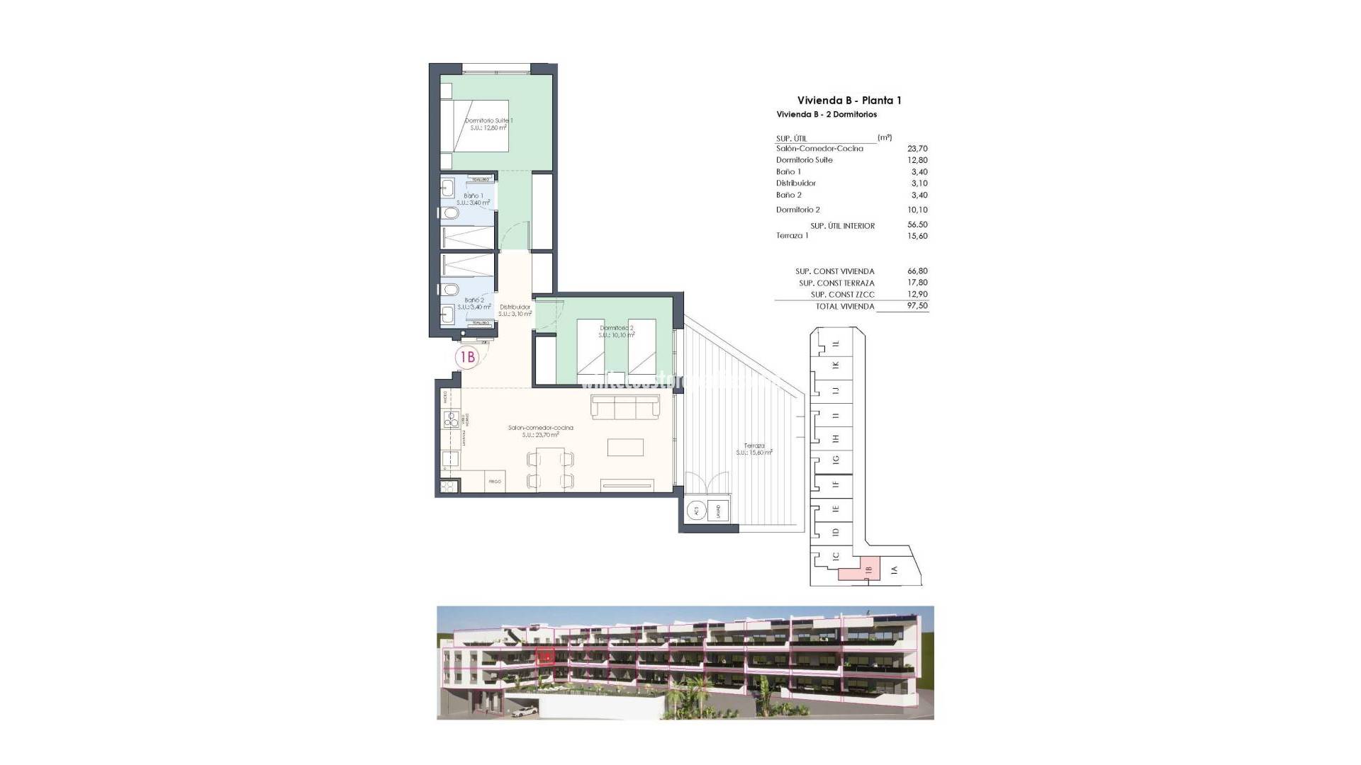 COMPLEJO RESIDENCIAL DE OBRA NUEVA EN BENIJOFAR Complejo residencial de obra nueva en la tranquila zona de Benijofar. Residencial compuesto por 35 apartamentos y áticos de 2, 3 y 4 dormitorios y 2 baños, cocina americana con el salón, armarios empotrados, terrazas. Los áticos disponen además de un amplio solarium privado donde poder disfrutar de las preciosas puestas de sol del verano. Nueva construcción complejo residencial cuenta con una amplia zona verde con piscina. Parking y trastero opcionales en planta sótano con acceso directo a las viviendas. Benijofar es un pueblo encantador con una encantadora iglesia y todos los servicios como supermercados, farmacias, bancos, restaurantes y parque natural situado muy cerca de las villas. Hay varios campos de golf cerca, así como parques acuáticos en las cercanas Rojales y Torrevieja. Las mejores playas de Guardamar están a sólo 10 minutos en coche con más de 11 km de dunas de arena blanca y aguas cristalinas. Benijófar situado a pocos minutos de la N-332 y AP-7. A tan solo 30 minutos del aeropuerto de Alicante, a 10 minutos de las playas de Guardamar y Torrevieja.