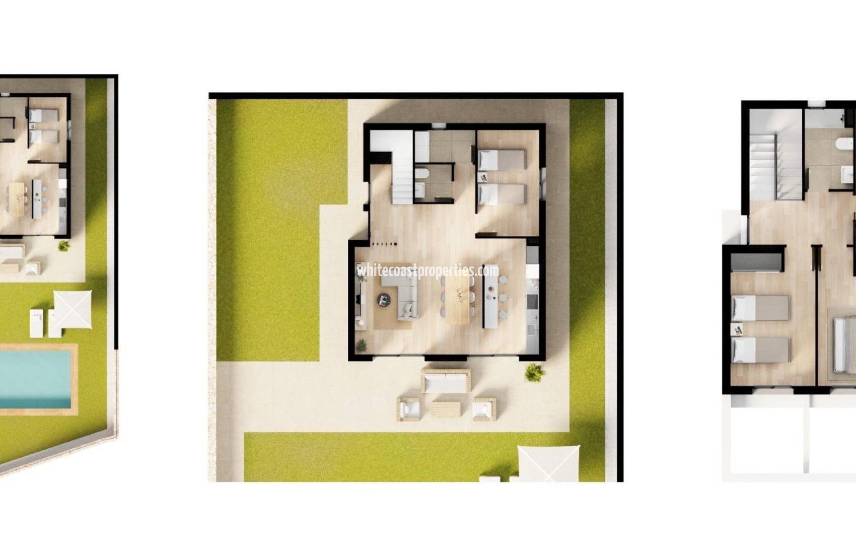 VILLAS DE OBRA NUEVA EN FINESTRAT Villas independientes y pareados de obra nueva en Balcon de Finestrat. Bonitas villas con 4 dormitorios, 3 baños, cocina americana con el salón, armarios empotrados, jardín privado con la piscina y plaza de aparcamiento. Instalación de aire acondicionado por conductos (frío/calor). El complejo residencial consta de piscina comunitaria para adultos con zona de piscina infantil y solarium, zona de aparcamiento para bicicletas, zona de juegos infantiles embaldosada con pavimento continuo de seguridad. Complejo residencial perfectamente ubicado en un enclave natural de la Costa Blanca y que ofrece increíbles vistas del skyline de Benidorm, la cala de Finestrat y El Puig Campana. Benidorm está a sólo cinco minutos en coche de las viviendas y ofrece todos los servicios que pueda necesitar, incluyendo tiendas, bares, restaurantes, supermercados, bancos, farmacias y varios colegios privados internacionales. Cerca de las playas de Levante, Poniente y Cala de Finestrat, con más de 6km de longitud que se encuentran entre las mejores de Europa galardonadas por la Unión Europea con Banderas Azules. Todos los servicios de ocio como los parques temáticos de Aqua Natura, Terra Mítica, Terra Natura, Aqualandia y Mundomar, los campos de Golf Sierra Cortina y Villaitana, senderismo y escalada en el Puig Campana un marco natural incomparable o disfrutar de los deportes náuticos. Distancia al mar 4 km, al aeropuerto 26 km y al golf 1km. Complejo situado a 40 minutos del aeropuerto de Alicante.