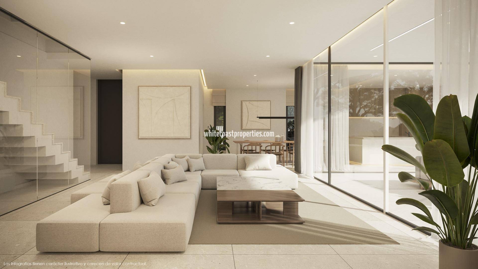 Lujosa casa moderna en el corazón de Moraira-Teulada: un refugio mediterráneo contemporáneo Descubra una impresionante casa unifamiliar enclavada en la pintoresca localidad de Moraira-Teulada, Costa Blanca. Esta moderna propiedad ofrece una exquisita combinación de lujo, confort y belleza natural, situada en una generosa parcela que proporciona tanto privacidad como vistas panorámicas del paisaje mediterráneo circundante. Moraira-Teulada es conocida por su encantador ambiente costero, su vibrante cultura local y su fácil acceso a los principales servicios. Excelencia arquitectónica con vistas panorámicas Esta casa de diseño arquitectónico es una obra maestra moderna que se funde armoniosamente con el entorno natural. Construida con hormigón armado y acentuada con detalles de madera, el diseño de la casa integra a la perfección grandes paneles de cristal para maximizar la luz natural y enmarcar impresionantes vistas al mar y a la exuberante vegetación. La casa está construida sobre varias terrazas, complementando la pendiente natural del terreno y ofreciendo vistas despejadas desde todos los ángulos. Espaciosa distribución interior para una vida elegante La planta baja es el corazón de esta casa, con un amplio salón diáfano de 36 m² que conecta con una gran terraza exterior de 81 m². La cocina de alta gama y el comedor, de 20 m², están equipados con electrodomésticos de última generación, por lo que son ideales tanto para la vida diaria como para el entretenimiento. En la planta superior, la suite principal ofrece total privacidad con vestidor, baño en suite y acceso a una terraza privada. Tres dormitorios adicionales, cada uno con su propio cuarto de baño y terraza, ofrecen un lujoso confort para los miembros de la familia o los invitados. Excepcional vida al aire libre y piscina infinita Los espacios al aire libre están diseñados para la relajación y el entretenimiento, incluyendo una amplia terraza de 81 m² ideal para comer al aire libre o descansar bajo el sol mediterráneo. La terraza conduce a una impresionante piscina infinita que se funde con el horizonte, creando un oasis de paz. El cuidado jardín, repleto de plantas y árboles autóctonos, realza el ambiente sereno de la casa y proporciona privacidad adicional. Características sostenibles y energéticamente eficientes Esta propiedad está equipada con elementos sostenibles, como una avanzada bomba de calor aire-agua, calefacción por suelo radiante y aire acondicionado por conductos. Las ventanas y el aislamiento de alto rendimiento garantizan la eficiencia energética y el confort durante todo el año. Ubicación privilegiada cerca de servicios clave Aeropuerto de Alicante 90 km Campo de golf La Sella: 15 km Puerto de Moraira: 2 km Centros Comerciales: 5 km Experimente el lujo moderno y la tranquilidad en esta casa excepcional, perfectamente situada en la codiciada región de Moraira-Teulada.
