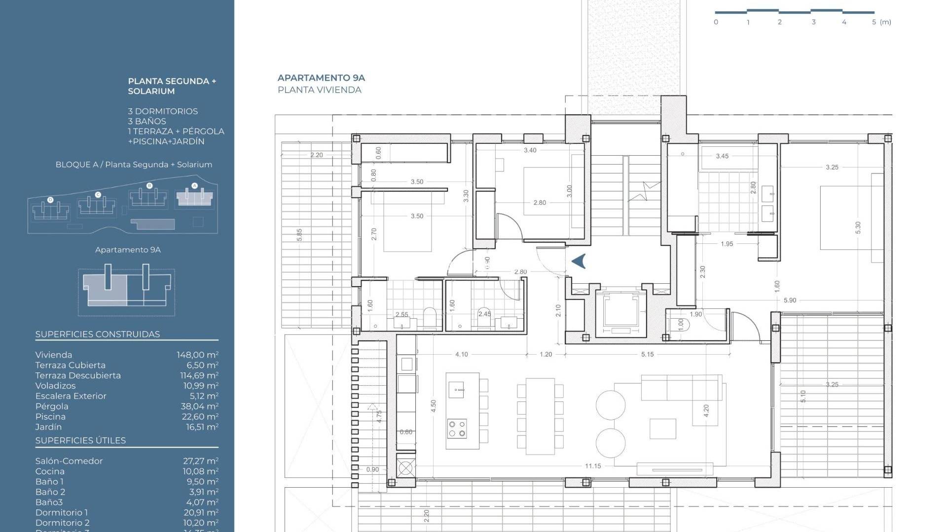 COMPLEJO RESIDENCIAL DE OBRA NUEVA EN LA NUCIA Complejo residencial de obra nueva de apartamentos y áticos con piscina comunitaria exterior, parking, trastero, ascensor, gimnasio, spa comunitario con piscina cubierta climatizada, sauna, jacuzzi en La Nucia. Viviendas modernas de 2 y 3 dormitorios, todas con 2 baños, cocina americana con amplio salón, armarios empotrados, terraza, plaza de garaje subterráneo. Los áticos tienen solariums privados con la piscina. Excelencia en su arquitectura vanguardista, exquisitos acabados y servicios de alta gama, una urbanización de ensueño para quienes buscan el máximo nivel de confort y distinción. Interiores que combinan elegante diseño y moderna sofisticación, crean espacios que convierten cada día en una excepcional experiencia de confort y bienestar. Cocina de diseño alemán, Burger o similar, con encimera de Silestone, totalmente equipada. Electrodomésticos Siemens o similar. Placa de inducción, campana extractora, horno y frigorífico y lavavajillas integrados en los muebles. Puerta de acceso a la vivienda blindada con cerradura de seguridad acabada con cuarterones lacados a juego con la carpintería interior. Opción de instalar cerradura con mando a distancia desde smartphone o tablet. Armarios modulares con puertas batientes o correderas lacadas a juego con el resto de la carpintería, incluyendo maletero, cajonera y barra de colgar. La vivienda estará preparada para poder contratar internet de alta velocidad. Habrá suelo radiante eléctrico de bajo consumo en los baños. El video portero será electrónico con imagen en color y dispondrá de mando a distancia integrado desde teléfono o tablet. Aire acondicionado Samsung. Cada habitación tendrá su propia máquina interior y control independiente. El aire acondicionado tendrá mando a distancia. Se podrá controlar desde teléfono o tablet. Se realizará la instalación completa del Sistema de Aire Acondicionado, dotado de bomba de calor para proporcionar tanto refrigeración como calefacción. También se utilizarán conductos de fibra de vidrio. Las unidades interiores se ubicarán en el falso techo de la zona de baños y pasillo, mientras que la unidad exterior se instalará en la zona asignada en el proyecto. Ventilación. Instalación de renovación de aire interior en viviendas con tomas de extracción en baños y cocina y reloj para programación horaria. Piscina de uso comunitario con cloración salina y control automático de PH y cloro. En el sótano habrá gimnasio, piscina cubierta climatizada, jacuzzi, sauna, baño de vapor, cromoterapia y vestuarios con baños. Amplias zonas de terrazas y jardines con plantas autóctonas para usos múltiples en la zona comunitaria. El perímetro de la parcela se plantará con plantas que crearán un ambiente privado en el recinto a medida que crezcan. Habrá un sistema de videovigilancia para las zonas comunes. Situado en una ubicación privilegiada, entre Nucia y Altea este residencial goza de un entorno excepcional y excelentes servicios dentro de la urbanización.