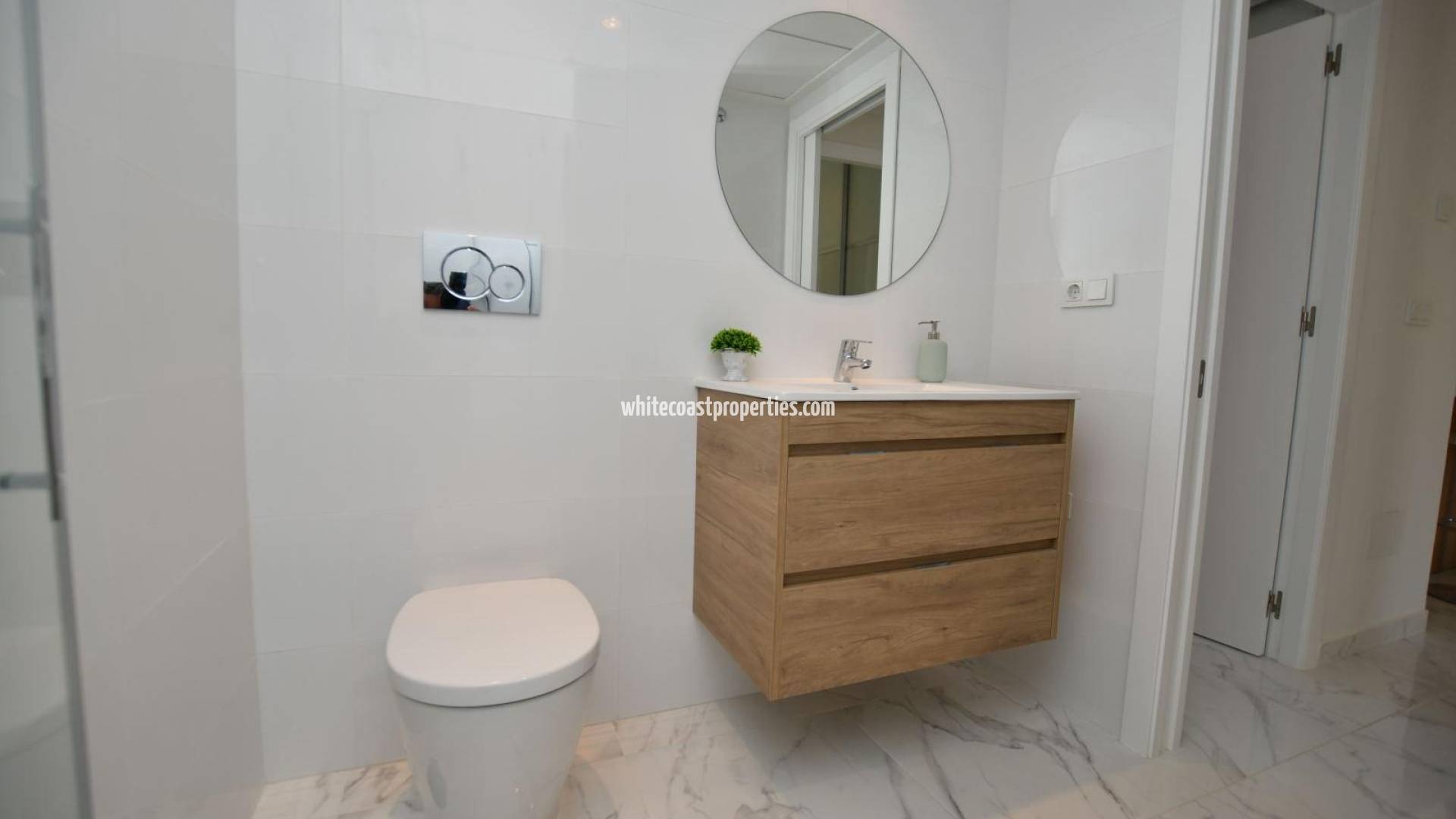 Bungalows de nueva construcción en San Miguel de Salinas: naturaleza, golf y comodidad Descubra esta nueva promoción residencial en San Miguel de Salinas, situada en la cotizada zona de «La Cañada», rodeada de un pinar protegido entre los prestigiosos campos de golf de Campoamor y Las Colinas. A solo 7 km de la costa mediterránea, esta urbanización ofrece la combinación perfecta de tranquilidad, naturaleza y fácil acceso a todos los servicios. Viviendas amplias y modernas La promoción ofrece dos tipos de viviendas que se adaptan a diferentes estilos de vida: Bungalows en planta baja: 2 dormitorios, 2 baños, dos amplios jardines privados y aparcamiento en superficie. Bungalows en planta superior: 2 dormitorios, 2 baños, amplio solárium con vistas al mar y aparcamiento en superficie. Todas las viviendas son muy amplias y se pueden adaptar a una distribución de 3 dormitorios (opcional con un coste adicional), con electrodomésticos incluidos. Acabados de alta calidad Diseñadas para ofrecer comodidad y funcionalidad, todas las viviendas incluyen: Baños completos con muebles, espejos y mamparas de ducha. Sistema de agua caliente aerotérmico. Lámparas LED empotradas en el techo. Zonas comunes exclusivas La urbanización cuenta con más de 1.700 m2 de zonas ajardinadas con palmeras y plantas mediterráneas. Los residentes pueden disfrutar de una gran piscina con jacuzzi, piscina infantil y zonas para tomar el sol, lo que la convierte en el lugar ideal para disfrutar del clima de la Costa Blanca durante todo el año. Ubicación privilegiada en San Miguel de Salinas Esta tranquila urbanización se encuentra a menos de 3 km del encantador pueblo de San Miguel de Salinas, con todos los servicios a mano. Además, las hermosas playas de arena de Orihuela Costa y Torrevieja están a solo 7 km, ofreciendo un sinfín de opciones de ocio, compras y restauración. Cerca de prestigiosos campos de golf Para los amantes del golf, la ubicación es inmejorable. En un radio de 4 km encontrará tres de los campos de golf más prestigiosos de la Costa Blanca: Villamartín Golf – 3,5 km Las Colinas Golf & Country Club – 4 km Campoamor Golf – 4 km Excelente conectividad Los principales puntos de interés cercanos incluyen: San Miguel de Salinas – 3 km Centro comercial La Zenia Boulevard – 10 km Aeropuerto de Alicante: 55 km Aeropuerto de Murcia (Corvera): 50 km Asegúrese su nuevo hogar en San Miguel de Salinas Tanto si busca una residencia permanente, un refugio para las vacaciones o una oportunidad de inversión, estos bungalows de nueva construcción ofrecen una excelente relación calidad-precio en una de las zonas más deseadas de la Costa Blanca. Póngase en contacto con nosotros hoy mismo para obtener más información y concertar una visita.