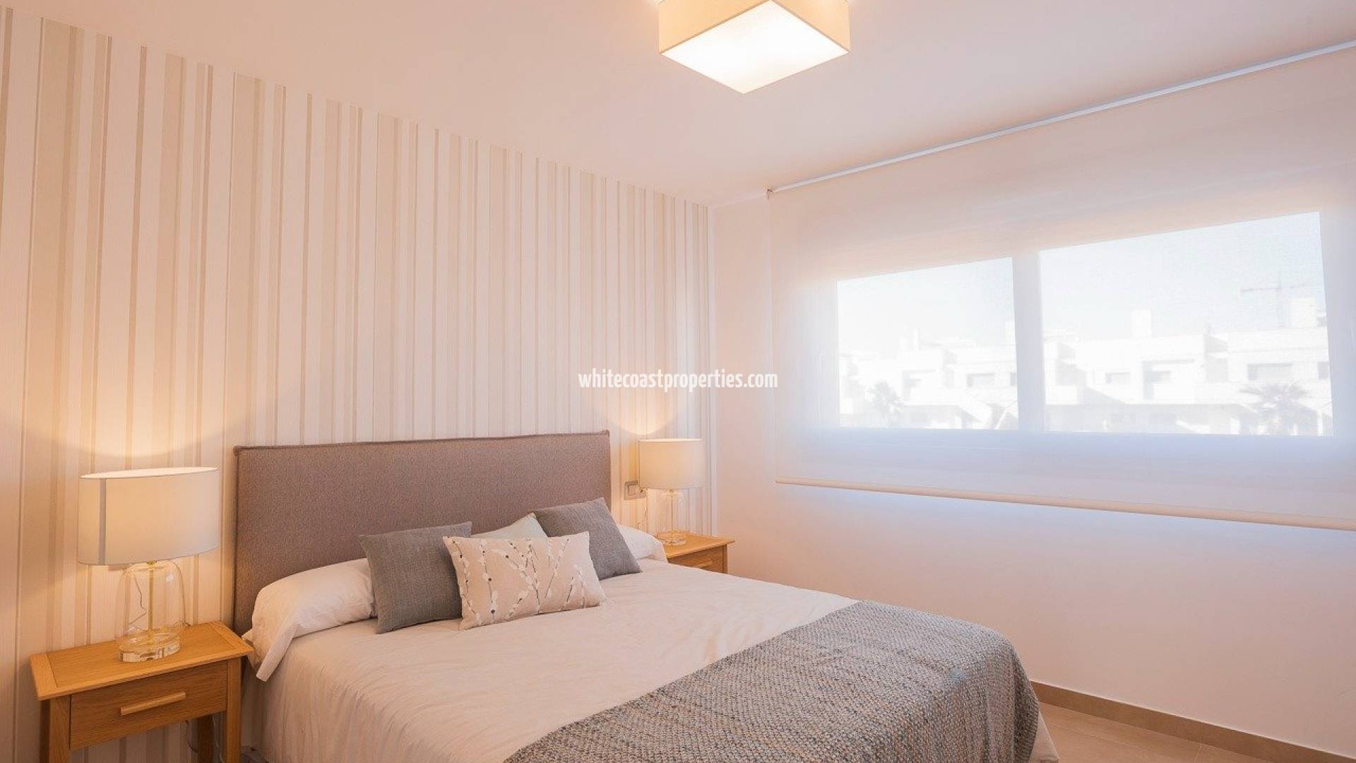 RESIDENCIAL DE OBRA NUEVA DE BUNGALOWS EN VISTABELLA Residencial de nueva construcción de apartamentos bungalow en Vistabella cerca del campo de golf. Complejo con instalaciones comunitarias y piscina consta de bungalows de 2 y 3 dormitorios, en planta baja con jardín privado y planta alta con solarium privado, cocina abierta con la zona del salón, armarios empotrados, terraza. Cado apartamento tiene aparcamiento privado. Un almacén de opciones con un costo adicional. En Vistabella Golf hay espacio para todos. El campo está diseñado para que cada jugador pueda disfrutarlo de principio a fin. Sus calles onduladas, sus bunkers estratégicos o sus lagos son algunas de las características que lo convierten en uno de los diseños más atractivos de la zona, donde cada golpe es un reto y un placer para los sentidos. Los 18 Hoyos de Vistabella Golf, de par 72 y más de 6.000 metros de longitud han sido diseñados siguiendo las pautas de los campos modernos con 4 tees de gran amplitud en cada hoyo, amplias calles y bunkers elevados. La casa club de Vistabella Golf y su restaurante, así como los bares y tiendas locales, se encuentran a 5 minutos a pie. El concurrido pueblo de San Miguel de Salinas y Los Montesinos están a 5 minutos en coche y las encantadoras playas de bandera azul de Guardamar están a sólo 15 minutos en coche. El aeropuerto de Alicante está a 35 minutos y el nuevo aeropuerto de Corvera Murcia está a 45 minutos.