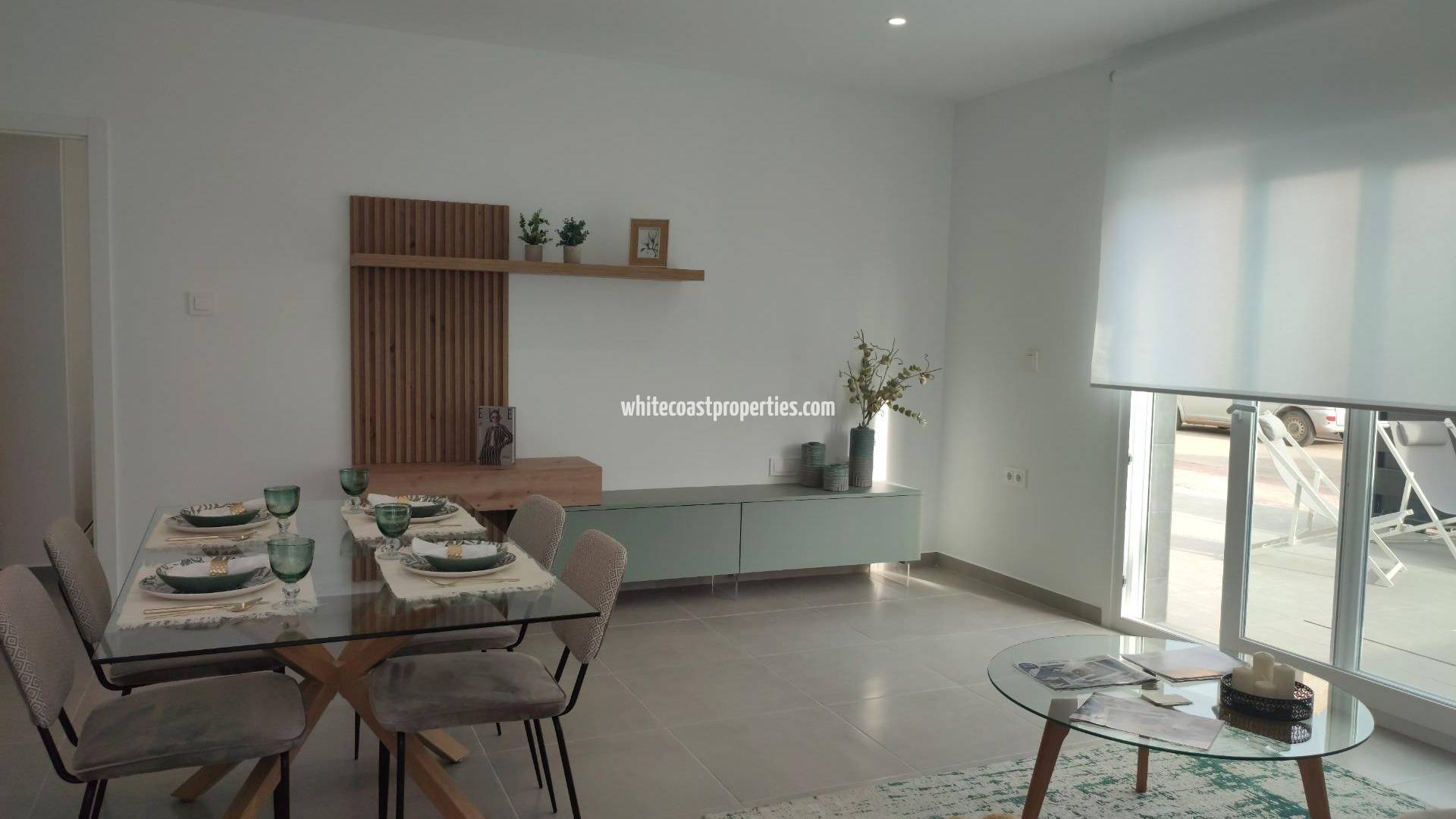 VILLAS DE OBRA NUEVA EN BALSICAS, MURCIA El residencial de nueva construcción dispone de 6 villas unifamiliares de una sola planta, con zona de terrazas, piscina privada, aparcamiento en la parcela y solarium con cocina de verano, para disfrutar de todas las horas de sol todos los días del año. Cada vivienda dispone de 3 dormitorios y 2 baños completos. La propiedad ha sido diseñada con un estilo contemporáneo y un concepto abierto, con una cocina totalmente equipada y un salón-comedor. La propiedad cumplirá con los más altos estándares y estará equipada con: Cocina completamente amueblada y equipada con horno, frigorífico y lavavajillas integrados, placa de cocción y campana extractora. Isla de trabajo en la cocina. Iluminación: en el interior de la vivienda (comedor, cocina, pasillos y baños), así como en las zonas exteriores. Armarios forrados con cajones. Cuartos de baño totalmente equipados con inodoro, mueble de baño, espejo y ducha con mamparas. Preinstalación de aire acondicionado por conductos. Solarium con cocina de verano, con preinstalación de electrodomésticos y puertas correderas. Piscina privada con ducha exterior. Plaza de aparcamiento en la parcela. Balsicas es un lugar perfecto para los amantes del golf y también para todo aquel que disfrute de los espacios verdes como lugares de ocio, belleza y tranquilidad. Su estratégica ubicación hace que la familia que decida vivir en este complejo tenga a su alcance todo lo que cualquier persona puede desear: un clima donde el sol brilla casi todo el año, playas cercanas, el Mar Menor y sus lodos naturales. con poderes curativos demostrados. Complejo situado a 20 minutos del aeropuerto de Murcia - Corvera y a 1 hora del aeropuerto de Alicante.