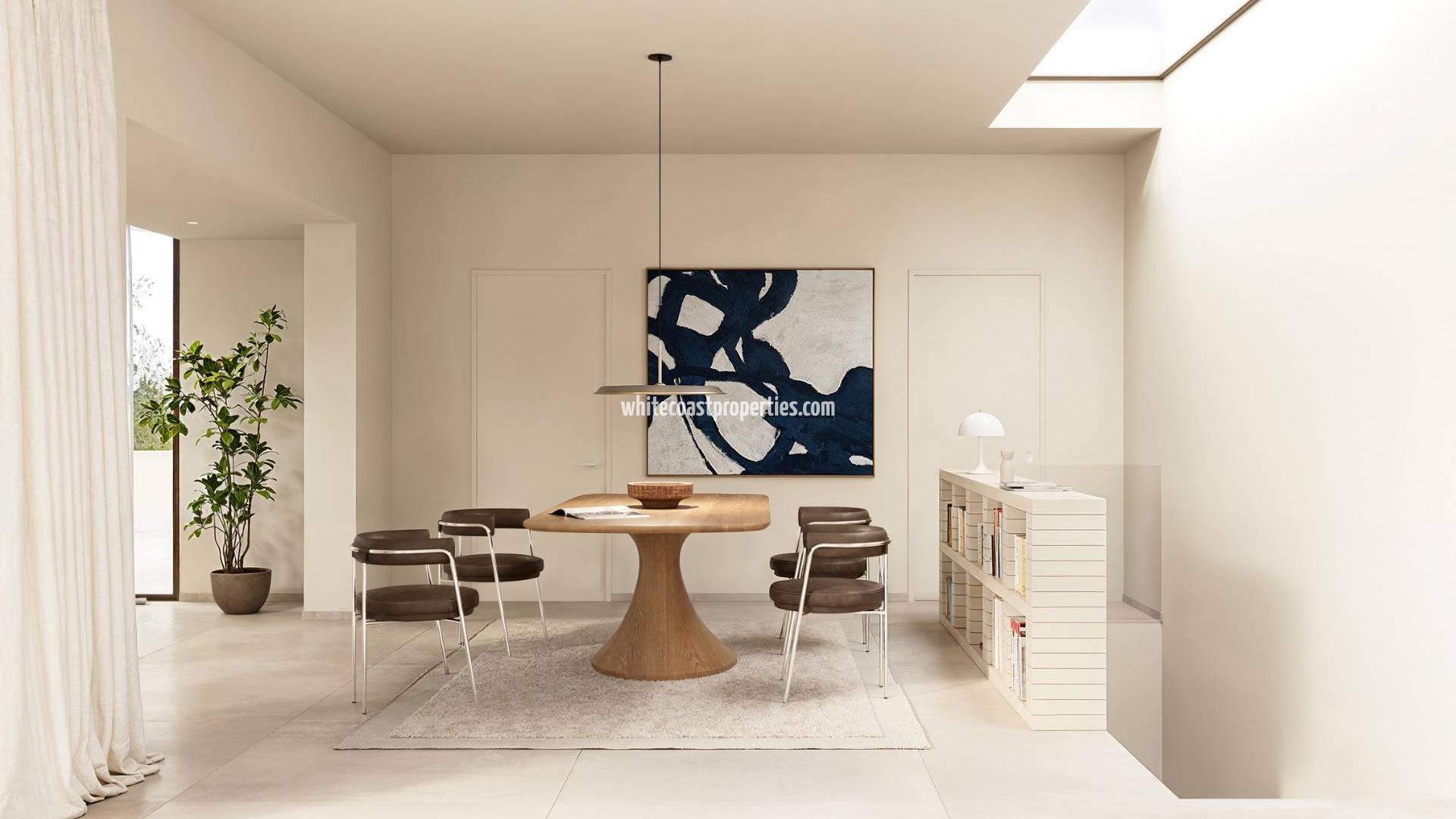 Villas de nueva construcción en La Finca Golf, Algorfa: lujo moderno en el corazón de la Costa Blanca Exclusiva promoción de 6 villas independientes Esta exclusiva colección de seis villas de nueva construcción en La Finca Golf, Algorfa, ofrece una oportunidad excepcional para disfrutar del lujo, el confort y la vida mediterránea en uno de los complejos de golf más prestigiosos de la Costa Blanca Sur. Diseñadas pensando en la elegancia y la funcionalidad, estas viviendas contemporáneas cuentan con interiores espaciosos, jardines privados y acabados de primera calidad. Diseño elegante y distribución espaciosa Cada villa se distribuye entre la planta baja y el sótano, ofreciendo más de 300 m² de superficie habitable. La distribución incluye 4 dormitorios, todos con baño en suite, un aseo adicional para invitados y una luminosa cocina y salón diáfanos con acceso directo a la terraza y la zona de la piscina. El sótano cuenta con garaje, lavadero y trastero, lo que garantiza la practicidad y la comodidad. Los grandes ventanales inundan el interior de luz natural y crean una conexión perfecta entre los espacios interiores y exteriores, ideal para disfrutar del suave clima mediterráneo durante todo el año. Características premium y eficiencia energética Todas las villas están construidas con los más altos estándares, incorporando materiales de primera calidad y sistemas avanzados de eficiencia energética: Cocina totalmente amueblada y equipada con electrodomésticos. Baños con calefacción por suelo radiante, muebles empotrados con espejos y mamparas de ducha. Sistema de agua caliente aerotérmico. Aire acondicionado por conductos con control Airzone. Paneles solares fotovoltaicos de 4 kW para ahorrar energía. Persianas motorizadas en los dormitorios. Iluminación LED en todo el interior y el exterior. Piscina privada y jardín paisajístico. Estas características garantizan el máximo confort, la sostenibilidad y un bajo impacto medioambiental. Ubicación privilegiada en La Finca Golf Resort Situadas en La Finca Golf Resort, en Algorfa, estas villas disfrutan de un entorno tranquilo y exclusivo, rodeadas de naturaleza y campos de golf. Los residentes se benefician de la proximidad de restaurantes, un hotel de 5 estrellas con instalaciones de spa y una gran variedad de opciones de ocio. Distancias a los principales puntos de interés: Campo de golf La Finca: 1200 m Playa de Guardamar del Segura: 13 km (15 minutos) Aeropuerto Internacional de Alicante: 35 minutos Almoradí, Benijófar, Ciudad Quesada: 5-10 km Torrevieja y Orihuela Costa: 15 minutos Viva el estilo de vida mediterráneo del golf Combinando una arquitectura moderna, acabados de alta calidad y una ubicación inmejorable, estas villas de nueva construcción en La Finca Golf, Algorfa, representan el hogar perfecto para los amantes del golf y para aquellos que buscan tranquilidad cerca de la costa. Póngase en contacto con nosotros hoy mismo para concertar una visita y descubrir su nueva vida en la Costa Blanca.