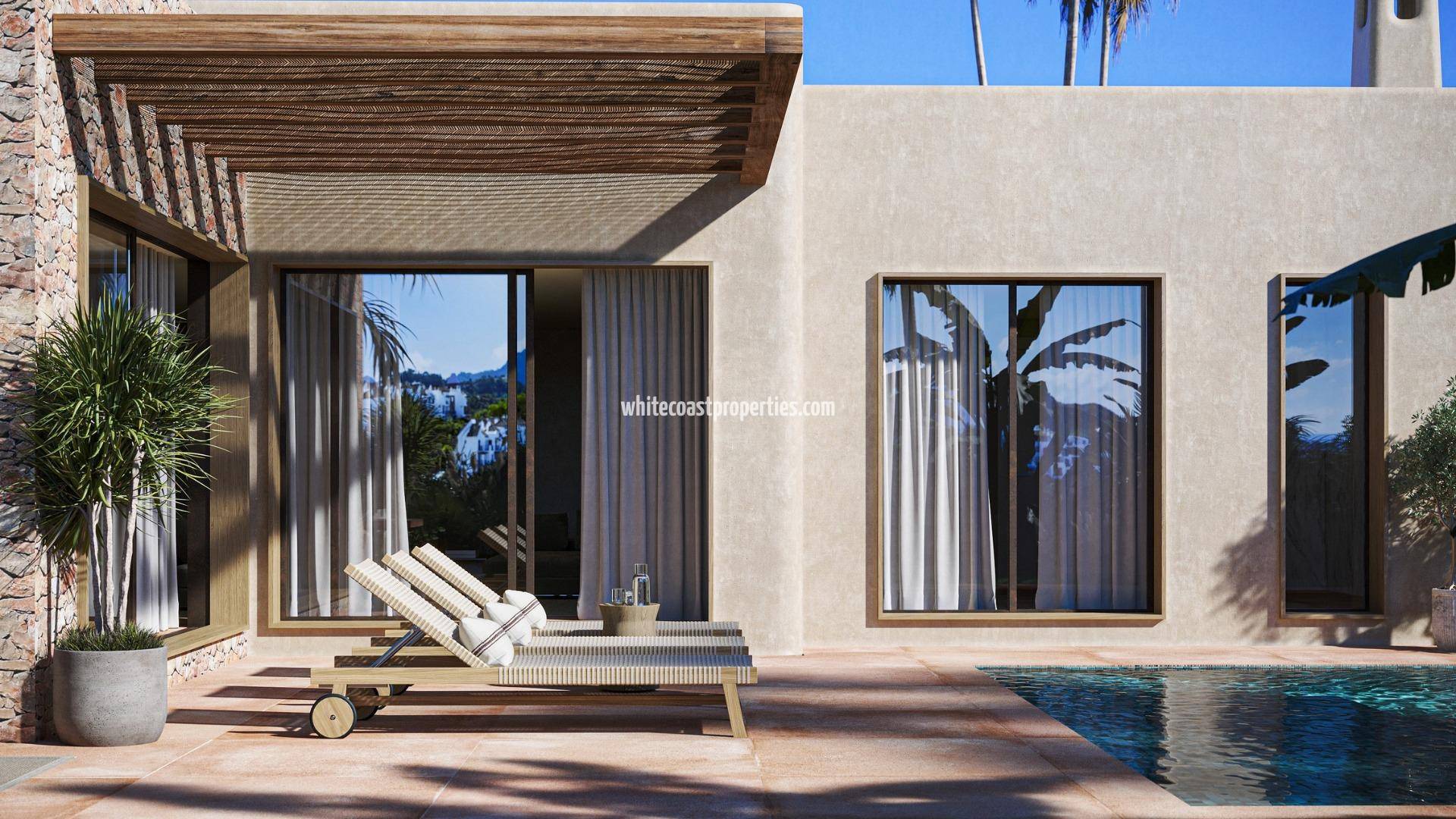 Villa de nueva construcción estilo Ibiza con características de lujo en Jávea Exclusivo diseño mediterráneo cerca de la playa de El Arenal Esta impresionante villa de nueva construcción estilo Ibiza en Jávea se encuentra a solo 3 km de la famosa playa de El Arenal, una de las zonas más animadas y atractivas de la Costa Blanca Norte. Situada en una zona residencial tranquila y bien comunicada, la propiedad ofrece una combinación excepcional de elegancia, comodidad y arquitectura mediterránea moderna. Jávea es conocida por sus aguas cristalinas, sus pintorescas calas, sus parques naturales, sus puertos deportivos y sus excelentes opciones gastronómicas, lo que la convierte en un destino muy deseable tanto para vivir como para invertir. Elegante distribución interior en dos niveles La villa ha sido cuidadosamente diseñada para maximizar el confort y el estilo. En la planta baja, un amplio salón-comedor conecta a la perfección con una cocina totalmente equipada, creando un espacio diáfano, luminoso y acogedor. Esta planta también incluye un ascensor para mayor comodidad, un aseo de invitados y un pasillo central que conecta todas las zonas. Hay dos dormitorios dobles con baños en suite, además de un impresionante dormitorio principal que cuenta con una amplia distribución, un baño en suite y un vestidor integrado. Vida al aire libre diseñada para el estilo de vida mediterráneo Los espacios exteriores han sido creados para disfrutar del cálido clima de Jávea durante todo el año. La propiedad incluye dos elegantes pérgolas, una en la entrada y otra que se extiende desde la sala de estar y la cocina hacia la terraza abierta que rodea la piscina privada de 38 m2. Junto a la cocina, una terraza adicional con zona de barbacoa ofrece el escenario perfecto para cenas al aire libre y reuniones sociales. Sótano de primera calidad con comodidades excepcionales El sótano combina funcionalidad y lujo, con un garaje abierto, ascensor, lavadero, gimnasio, patio cubierto, cuarto de baño y una amplia zona de almacenamiento. Esta planta ha sido diseñada para adaptarse a las necesidades de la vida moderna y ofrecer la máxima comodidad. Ubicación privilegiada en Jávea Jávea ofrece una combinación única de belleza natural, opciones de ocio y servicios de alta calidad. Distancias clave desde la villa: Playa del Arenal 3 km Puerto y marina de Jávea a 7 km Club de golf de Jávea a 3 km Aeropuerto de Alicante a 100 km Aeropuerto de Valencia a 125 km Su hogar mediterráneo le espera Tanto si busca una residencia permanente, una casa de vacaciones de lujo o una oportunidad de inversión de primera clase, esta villa ofrece una calidad excepcional y una ubicación inmejorable. Póngase en contacto con nosotros hoy mismo para concertar una visita y descubrir su nuevo hogar en Jávea.