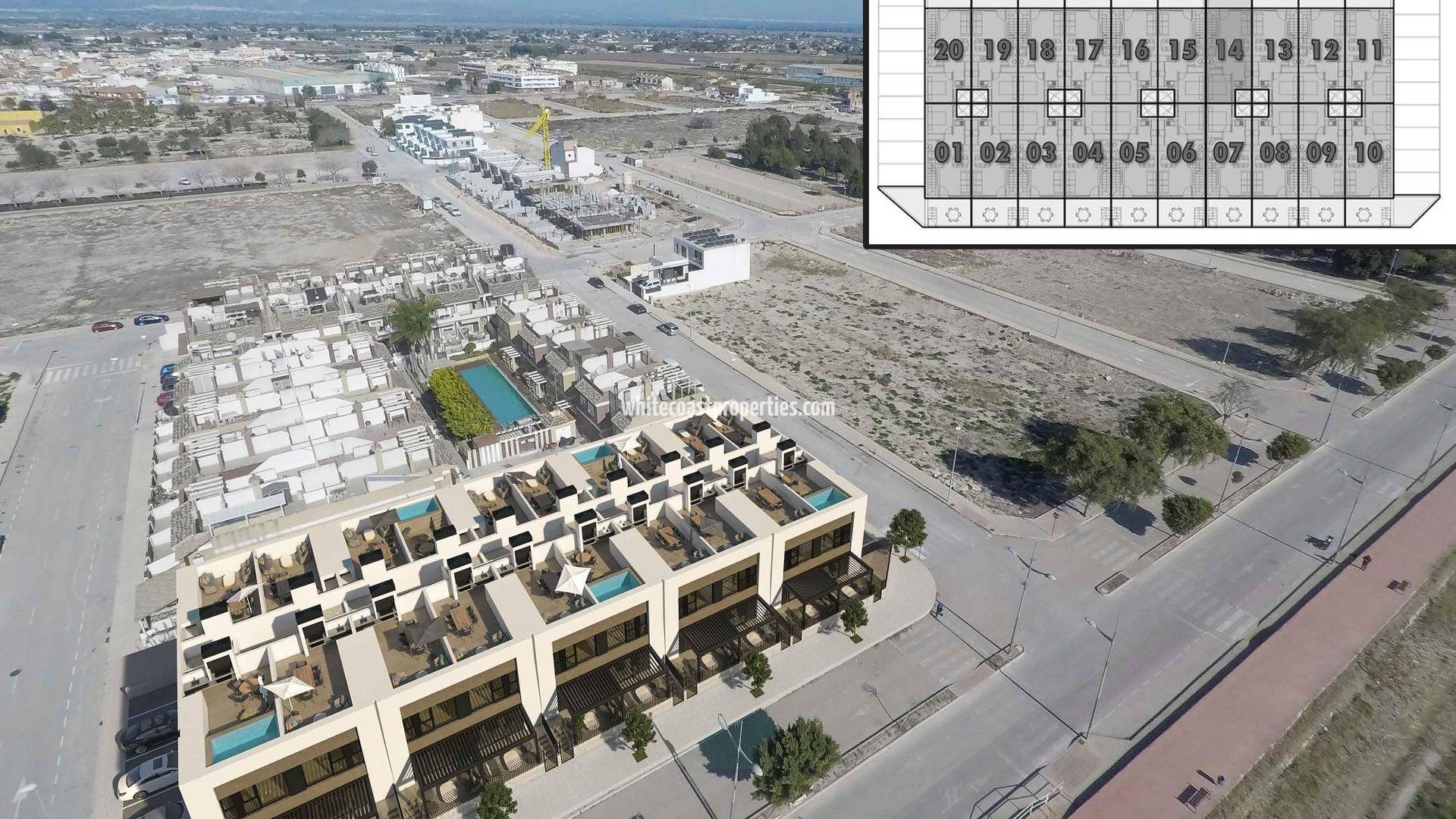 Adosados modernos en Dolores con piscina comunitaria Casas contemporáneas diseñadas para la comodidad y el estilo Descubra este exclusivo complejo residencial de 20 modernos adosados en Dolores, que ofrece una combinación perfecta de espacio, estilo y acabados de alta calidad. Con hasta 133 m² de espacio habitable, incluyendo amplias terrazas, estas casas están disponibles en dos o tres dormitorios, lo que le permite elegir el diseño que mejor se adapte a su estilo de vida. Cada vivienda se distribuye en tres plantas, incluido un solárium privado, que ofrece impresionantes vistas abiertas y un espacio ideal para relajarse. Los interiores cuentan con iluminación LED integrada, acabados contemporáneos y una distribución de concepto abierto que potencia la luz natural. Características premium y mejoras opcionales Interiores amplios y luminosos con acabados de alta calidad Tres plantas, incluido un solárium en la azotea Piscina comunitaria, perfecta para relajarse Jacuzzi privado o piscina en la azotea opcionales (con coste adicional) Plaza de aparcamiento privada para cada vivienda Modernas cocinas y baños diseñados para la funcionalidad y la elegancia Ubicación privilegiada - Un entorno tranquilo con excelente conectividad Situada en Dolores, una encantadora localidad de la comarca alicantina de la Vega Baja, esta promoción ofrece el equilibrio perfecto entre una vida tranquila y un fácil acceso a los servicios esenciales. La zona es conocida por su bello entorno natural, sus paisajes agrícolas y su ambiente relajado. Distancias a puntos clave de interés: Playas de La Marina y Guardamar del Segura - 10 km (10 minutos) Aeropuerto de Alicante - 30 km (25 minutos) Aeropuerto de Murcia-Corvera - 60 km (45 minutos) Campos de Golf - 10 km (10 minutos) Centros comerciales (La Zenia Boulevard, Habaneras) - 12 km (15 minutos) Un hogar perfecto en la Costa Blanca Estos modernos adosados en Dolores ofrecen la combinación ideal de tranquilidad, vida moderna y proximidad a destinos clave. Tanto si busca una casa de vacaciones como una residencia permanente, esta urbanización le ofrece un estilo de vida cómodo y elegante en una ubicación privilegiada. ¡No se lo pierda! Póngase en contacto con nosotros hoy mismo para obtener más información o concertar una visita.