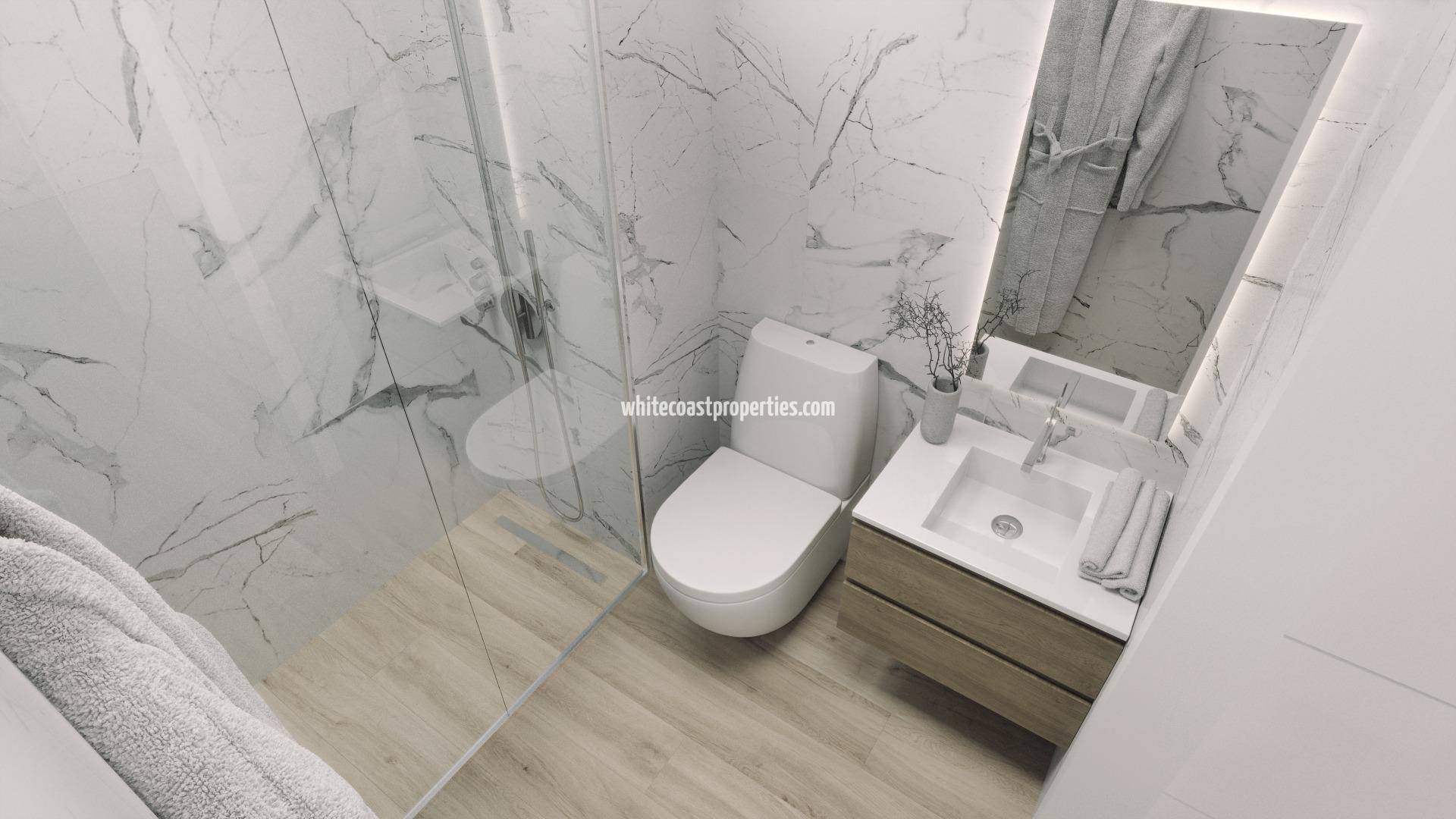 Apartamentos de nueva construcción en Torrevieja a solo 600 m de la Playa del Cura Ubicación privilegiada en el corazón de Torrevieja Descubra estos apartamentos y áticos a estrenar en una de las zonas más cotizadas de Torrevieja, a solo 600 m de la Playa del Cura y a 400 m del paseo marítimo. Situado en el centro de la ciudad, este animado barrio ofrece todos los servicios esenciales a poca distancia, incluyendo supermercados, tiendas, restaurantes, cafeterías y transporte público. Torrevieja es una conocida ciudad costera de la Costa Blanca, famosa por su clima mediterráneo templado, su animado ambiente y su estilo de vida junto al mar durante todo el año. Apartamentos modernos con distribuciones espaciosas Esta exclusiva promoción nueva consta de solo 14 apartamentos y áticos entre estudios, 1 o 2 dormitorios, diseñados para ofrecer comodidad, funcionalidad y estilo contemporáneo. Todas las viviendas incluyen una cocina abierta conectada con el salón-comedor, equipada con electrodomésticos, lo que crea interiores luminosos y acogedores. Los dormitorios cuentan con armarios empotrados y los baños están totalmente equipados con muebles, espejos, suelo radiante y mamparas de ducha. Acabados de calidad y características de eficiencia energética Los apartamentos están construidos con materiales de alta calidad y un fuerte enfoque en la eficiencia energética. La carpintería exterior de aluminio incluye tecnología de rotura de puente térmico y doble acristalamiento para el aislamiento térmico y acústico. Las persianas motorizadas añaden comodidad y seguridad. Cada vivienda cuenta con preinstalación de aire acondicionado y calefacción por conductos, puertas de entrada reforzadas, pack de iluminación y puertas interiores lacadas en blanco. El agua caliente se produce mediante un sistema aerotérmico, lo que reduce el consumo de energía y mejora la sostenibilidad. Solárium en la azotea con piscina comunitaria Los residentes pueden disfrutar de un solárium exclusivo en la azotea con piscina comunitaria, barbacoa, sauna y zona de solarium con tumbonas, accesible por ascensor o escaleras. Esta zona privada es perfecta para relajarse, tomar el sol y disfrutar de las vistas panorámicas de la ciudad. Ofrece un refugio tranquilo sobre las animadas calles de Torrevieja y añade un valor significativo a la promoción. Estilo de vida y alrededores de Torrevieja Torrevieja es conocida por su extenso litoral, sus playas de arena y sus emblemáticas salinas. El Parque Natural de las Lagunas de La Mata y Torrevieja se encuentra a unos 5 km y ofrece rutas de senderismo y paisajes únicos. Varios campos de golf, como Villamartin Golf y Las Colinas Golf, se encuentran a entre 12 y 18 km. El puerto deportivo y el puerto de Torrevieja están a aproximadamente 1 km. El aeropuerto de Alicante está a unos 45 km y el aeropuerto internacional de Murcia a unos 65 km, ambos con excelentes conexiones europeas. Su hogar en la costa le espera No pierda esta oportunidad de adquirir un moderno apartamento de nueva construcción cerca de la playa en Torrevieja. Póngase en contacto con nosotros hoy mismo para obtener más información o concertar una visita privada.