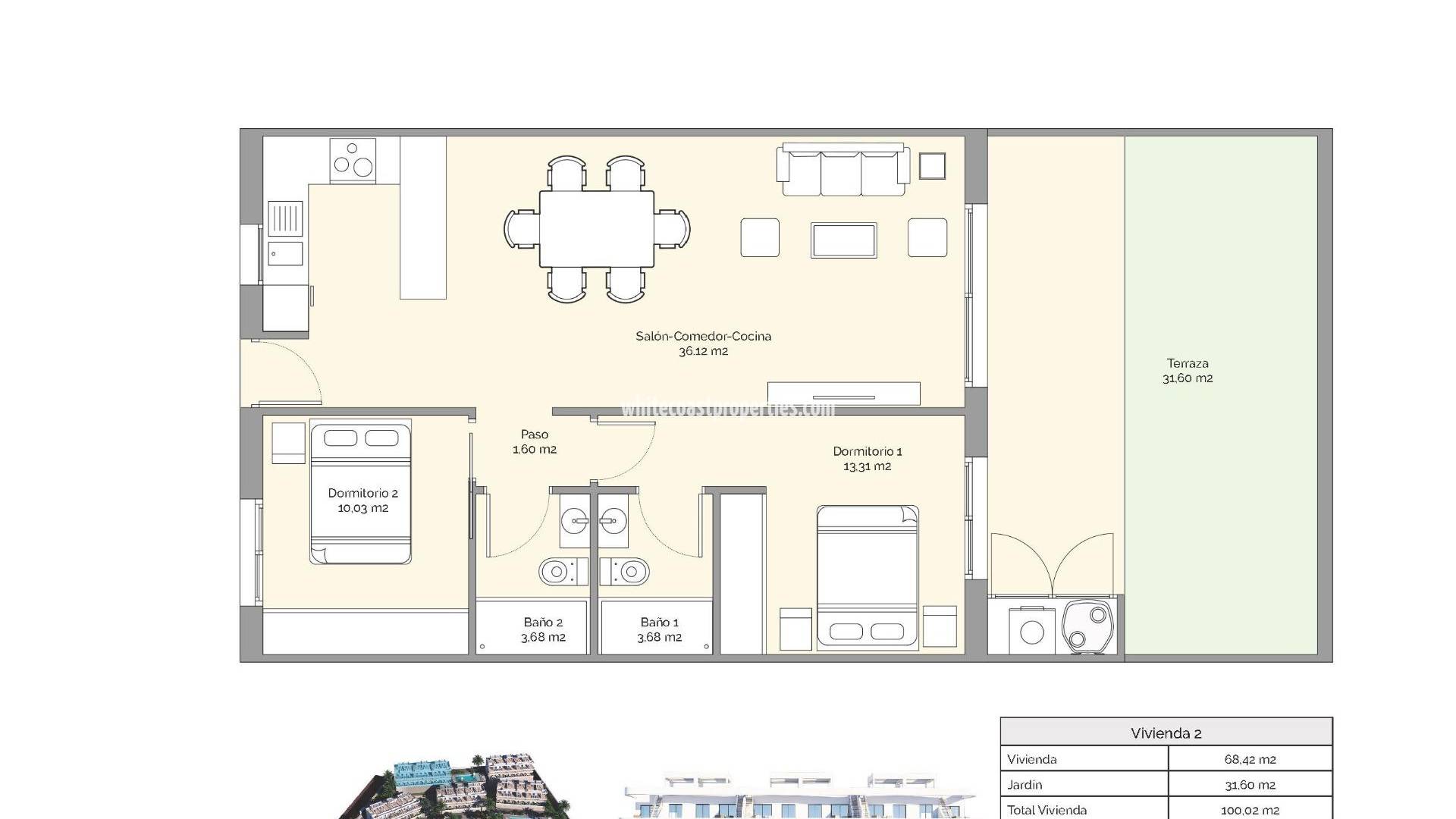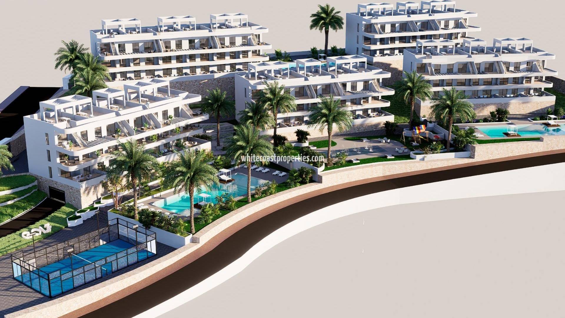 COMPLEJO RESIDENCIAL DE OBRA NUEVA EN FINESTRAT Complejo residencial de obra nueva en Balcon de Finestrat. Este complejo de apartamentos modernos con 2 dormitorios, 2 baños, cocina americana con la sala de estar. Algunos de los apartamentos tienen vistas al mar. Apartamento de planta baja con un jardín, apartamentos de planta media con las terrazas y apartamentos de planta alta tiene una terraza y solarium privado. Cada propiedad tiene plaza de aparcamiento subterráneo privado. Las viviendas tienen acceso a la zona comunitaria con 3 piscinas, parking, paddle, parque infantil, calistenia. Es una gran oportunidad y privilegio poder vivir con este entorno de golf y playa, cerca de todas las comodidades de todos los servicios considerado uno de los mejores lugares para invertir. Finestrat situado en la comarca de la Marina Baixa de la Costa Blanca. Benidorm está a sólo cinco minutos en coche de las propiedades y ofrece todos los servicios que pueda necesitar, incluyendo tiendas, bares, restaurantes, supermercados, bancos, farmacias y varias escuelas privadas internacionales. Cerca de las playas de Levante, Poniente y Cala de Finestrat, con más de 6km de longitud que se encuentran entre las mejores de Europa galardonadas por la Unión Europea con Banderas Azules. Todos los servicios de ocio como los parques temáticos de Aqua Natura, Terra Mítica, Terra Natura, Aqualandia y Mundomar, los campos de Golf Sierra Cortina y Villaitana, senderismo y escalada en el Puig Campana un marco natural incomparable o disfrutar de los deportes náuticos. Distancia al mar 4 km, al aeropuerto 26 km y al golf 1km.