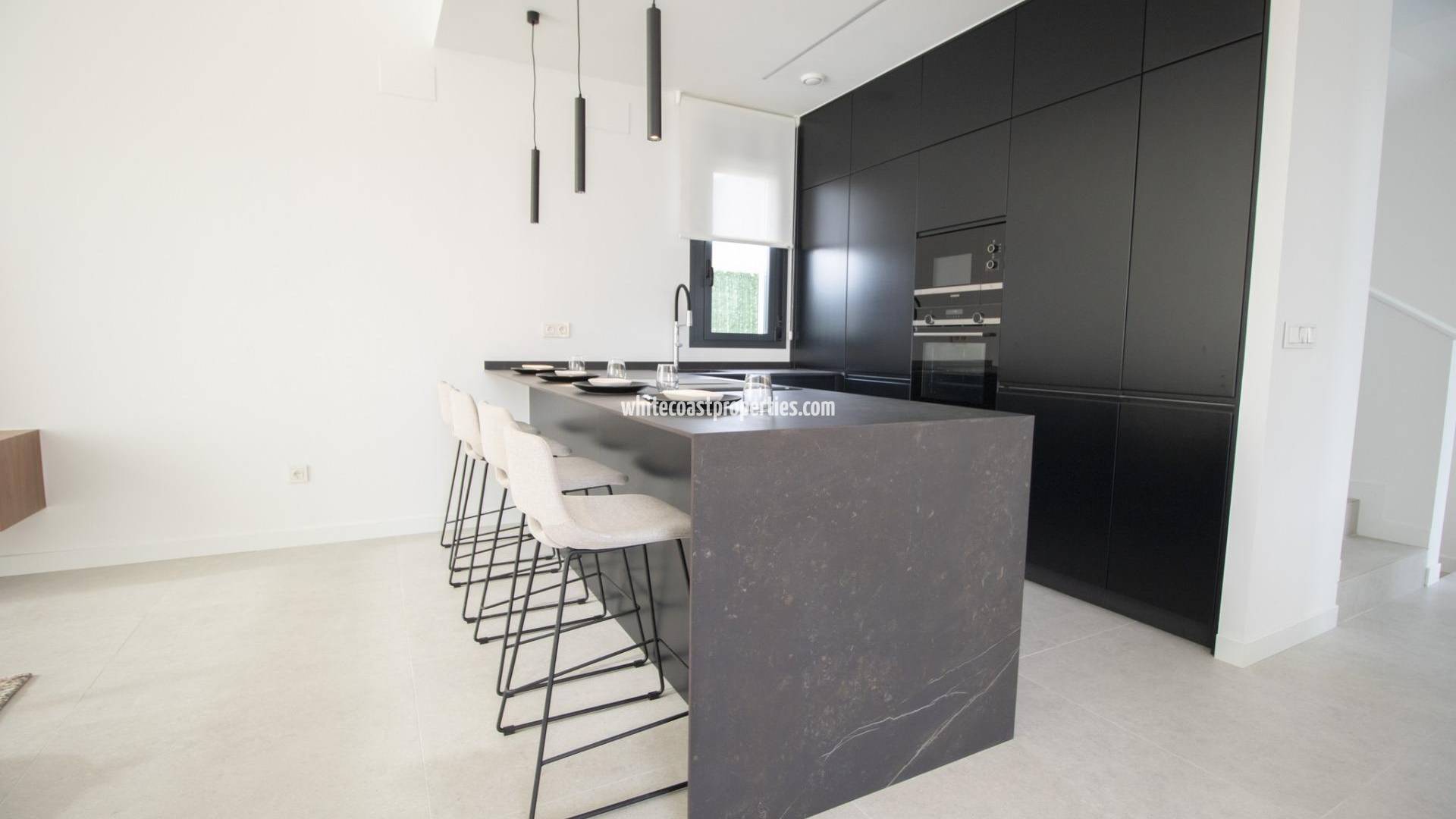 VILLAS DE OBRA NUEVA EN FINESTRAT Residencial de obra nueva de 22 villas situado en Finestrat. Despiértese cada mañana contemplando las vistas al mar y a las verdes colinas del campo de golf situado junto a él. Disfrute de la luz natural que le proporcionan sus grandes ventanales y su excelente orientación (fachada larga orientada al sur). Las modernas villas disponen de 3 dormitorios, 3 baños, cocina americana con amplio salón, armarios empotrados, terraza, solarium, jardín privado con la piscina y plaza de aparcamiento. Su casa a medida Villas se basa en la idea de ofrecerle un hogar a su medida, por eso cada casa se puede personalizar al 100%. Nuestro equipo de arquitectos e interioristas creará cada espacio a su gusto para hacer realidad sus sueños. Modificar la distribución interior de la vivienda (dentro de las opciones de construcción permitidas). Añada equipamiento a sus vestidores y aumente la capacidad de almacenaje y el orden. Completa el equipamiento de tu jardín para que se adapte mejor a tus necesidades (piscina y acabados exteriores). Elija entre diferentes tipos de ambientes y acabados según sus gustos. ¡Finestrat es un destino de ensueño! Esta tierra está rodeada por el mar, justo bajo la majestuosa silueta de la montaña Puig Campana, junto al encantador casco histórico. Es el destino perfecto para aquellos que buscan un lugar relajado para vivir sin tener que renunciar a las comodidades de tener todos los servicios al alcance de la mano. Finestrat cuenta con numerosas alternativas de transporte para moverse con libertad. Autobús: Las líneas 14, 15 y 16 están disponibles para viajar entre Finestrat, Benidorm y Villajoyosa. Tranvía: En la línea que une Alicante con Benidorm encontrarás la parada del centro comercial La Marina - Finestrat y te llevará al centro de Alicante en tan sólo 1 hora. Aeropuerto de El Altet (40 min): Este aeropuerto se encuentra a 40 minutos de Finestrat y hay vuelos a Reino Unido, Bélgica, Holanda, Milán, Zúrich entre otros muchos destinos e innumerables compañías aéreas con las que volar. En Finestrat estarás rodeado de parques temáticos, donde podrás disfrutar de las mejores actividades de ocio a tu alcance. Donde niños y mayores aprenderán sobre medio ambiente, naturaleza e historia a través de la aventura. Terra Mítica (10 min): Terra Natura (10 min) Acuanatura (10 min): El clima cálido de Levante permite disfrutar de la naturaleza y los deportes al aire libre la mayor parte del año. Los paisajes naturales y las instalaciones deportivas disponibles en Finestrat abren un amplio abanico de posibilidades para disfrutar del entorno. Golf Puig Campana (1min): Una de las instalaciones deportivas más nuevas y mejor equipadas de la zona. Sus 9 hoyos le permitirán ejercitarse y disfrutar del mejor ambiente deportivo en sus numerosos torneos. Parque Natural Puig Campana (10min): Hacer senderismo desde la Font del Molí por el kilómetro vertical hasta el vértice geodésico del Puig Campana es una experiencia inolvidable.