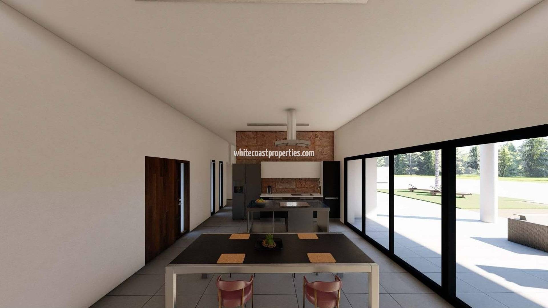 Moderna villa de nueva construcción en una gran parcela rústica cerca de Pinoso Vida contemporánea en un entorno rural tranquilo Descubra esta elegante villa de nueva construcción situada en una amplia parcela rústica de más de 10.000 m2 (de los cuales se vallarán unos 3.000 m2) a las afueras de Pinoso, Alicante. Diseñada para aquellos que buscan privacidad, tranquilidad y una estrecha conexión con la naturaleza, esta moderna vivienda combina la arquitectura contemporánea con el encanto del campo español. Rodeada de viñedos, almendros y olivares, la propiedad ofrece un estilo de vida sereno a poca distancia en coche de todos los servicios locales. Amplia villa de una sola planta con piscina privada La villa se distribuye en una sola planta y cuenta con 3 dormitorios y 2 baños, uno de ellos en suite. En el exterior, podrá disfrutar de 2 terrazas cubiertas (una de 20m2 y otra de 40m2) y una piscina de 8x4, perfectas para relajarse y divertirse bajo el sol del Mediterráneo. La propiedad también incluye una zona de aparcamiento, depósito de agua de 10.000 litros y acceso de vehículos mediante puerta motorizada, todo ello dentro de una gran parcela rústica que ofrece infinitas posibilidades para la jardinería, las zonas de ocio o simplemente para disfrutar de las vistas de los alrededores. Características modernas y acabados de calidad Esta villa de nueva construcción está equipada con pre instalación de aire acondicionado por conductos. La cocina está totalmente equipada con electrodomésticos, lo que ofrece un espacio funcional y elegante para la vida diaria. El diseño moderno, combinado con materiales de calidad, garantiza una vivienda cómoda y de bajo mantenimiento, ideal para vivir de forma permanente o como refugio en el campo. Ubicación cerca de la ciudad de Pinoso La propiedad se encuentra a las afueras de la ciudad de Pinoso, un encantador pueblo del interior con menos de 8000 habitantes. Conocido por su ritmo de vida relajado y su auténtico ambiente español, Pinoso ofrece una amplia gama de servicios, como bares, restaurantes, tiendas, un centro médico abierto las 24 horas, dentistas, colegios de primaria y secundaria, un teatro y un moderno complejo deportivo con piscinas al aire libre, pistas de tenis, campos de fútbol y un gimnasio. El centro de la ciudad de Pinoso está a unos 3 km. La ciudad de Alicante está a unos 55 km, mientras que las playas de arena blanca de la Costa Blanca se encuentran a unos 50 km. El aeropuerto internacional de Alicante está a unos 60 km de la propiedad. La región también está cerca de la frontera con Murcia, lo que añade más opciones de conectividad y estilo de vida. Un auténtico estilo de vida español rodeado de naturaleza Vivir en Pinoso significa disfrutar de un estilo de vida rural tradicional, sin apenas tráfico, con paisajes abiertos y un fuerte sentido de comunidad. En febrero, el campo circundante cobra vida con los almendros en flor, creando un espectacular espectáculo natural. La casa de sus sueños en el campo le espera Esta moderna villa de nueva construcción en Pinoso ofrece el equilibrio perfecto entre el confort contemporáneo y la tranquilidad de la vida rural. Póngase en contacto con nosotros hoy mismo para obtener más información o concertar una visita y dar el primer paso hacia su nueva casa en la campiña española.