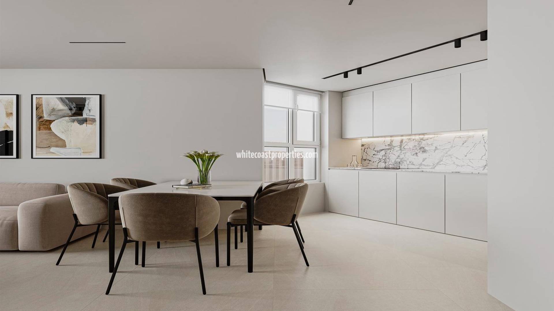 Apartamentos de lujo de nueva construcción en venta en Calpe, cerca de la playa Excelente ubicación costera en Calpe, Costa Blanca Descubra una exclusiva promoción residencial de apartamentos de lujo situada en una de las zonas más cotizadas de Calpe, en la Costa Blanca. Con una ubicación ideal entre las dos principales playas de arena de la localidad, este moderno edificio ofrece una ubicación privilegiada a solo 100 metros del mar y a poca distancia a pie del puerto deportivo, el centro de la ciudad y todos los servicios esenciales. Calpe es uno de los destinos más populares del norte de la Costa Blanca gracias a sus hermosas playas, su clima mediterráneo y su animado estilo de vida costero. La localidad es famosa por el emblemático Parque Natural del Peñón de Ifach, una impresionante roca caliza que se eleva de forma espectacular desde el mar y que sirve como símbolo de la zona. Los residentes disfrutan de un animado paseo marítimo, excelentes restaurantes especializados en marisco fresco y una amplia gama de actividades de ocio y náuticas. Los alrededores también cuentan con las pintorescas salinas de Calpe, donde a menudo se pueden ver flamencos y otras especies de aves, creando un paisaje natural único cerca del centro de la ciudad. Edificio moderno con vistas al mar y amplios apartamentos La promoción consiste en un edificio contemporáneo de 16 plantas con un total de 17 apartamentos diseñados para una cómoda vida mediterránea. El proyecto ofrece varios tipos de apartamentos, incluyendo viviendas de un dormitorio, apartamentos de tres dormitorios y un exclusivo ático dúplex con una zona chill out privada en la azotea. Todas las viviendas cuentan con amplias terrazas orientadas al sur que ofrecen hermosas vistas al mar y abundante luz natural durante todo el día. El ático ofrece espacio exterior adicional con su propio solárium privado, creando una zona ideal para relajarse y recibir invitados mientras se disfruta de vistas panorámicas de la costa. El edificio también incluye ascensor, piscina comunitaria y un garaje subterráneo con plazas de aparcamiento y trasteros opcionales disponibles. Construcción de alta calidad y prestaciones modernas Estos apartamentos están construidos con materiales de alta calidad y acabados contemporáneos diseñados para ofrecer comodidad y estilo. Sistema de aire acondicionado por conductos totalmente instalado con control Airzone Cocina moderna con electrodomésticos Balay integrados Iluminación interior incluida en toda la vivienda Baños con muebles de tocador, espejos retroiluminados y mamparas de ducha Amplias terrazas diseñadas para maximizar la luz natural y las vistas al mar El cuidado diseño y las especificaciones de calidad hacen que estas viviendas sean ideales tanto como residencias permanentes como propiedades vacacionales en la Costa Blanca. Excelente ubicación cerca de playas y servicios Playa de Cantal Roig a 0,2 km Playa de La Fossa a 0,8 km Parque Natural del Peñón de Ifach a 1 km Puerto deportivo y puerto de Calpe a 1 km Club de Golf Ifach a 9 km Aeropuerto de Alicante-Elche a 75 km Supermercados, restaurantes, tiendas y transporte público se encuentran a poca distancia a pie, lo que permite a los residentes disfrutar de un estilo de vida relajado sin depender del coche. Reserve hoy mismo su apartamento en Calpe Estos apartamentos de nueva construcción combinan una ubicación privilegiada en la costa, un diseño moderno y unas impresionantes vistas al mar en una de las zonas más atractivas de la Costa Blanca. Póngase en contacto con nosotros hoy mismo para recibir más información o concertar una visita y asegurarse su nuevo hogar en Calpe. 234