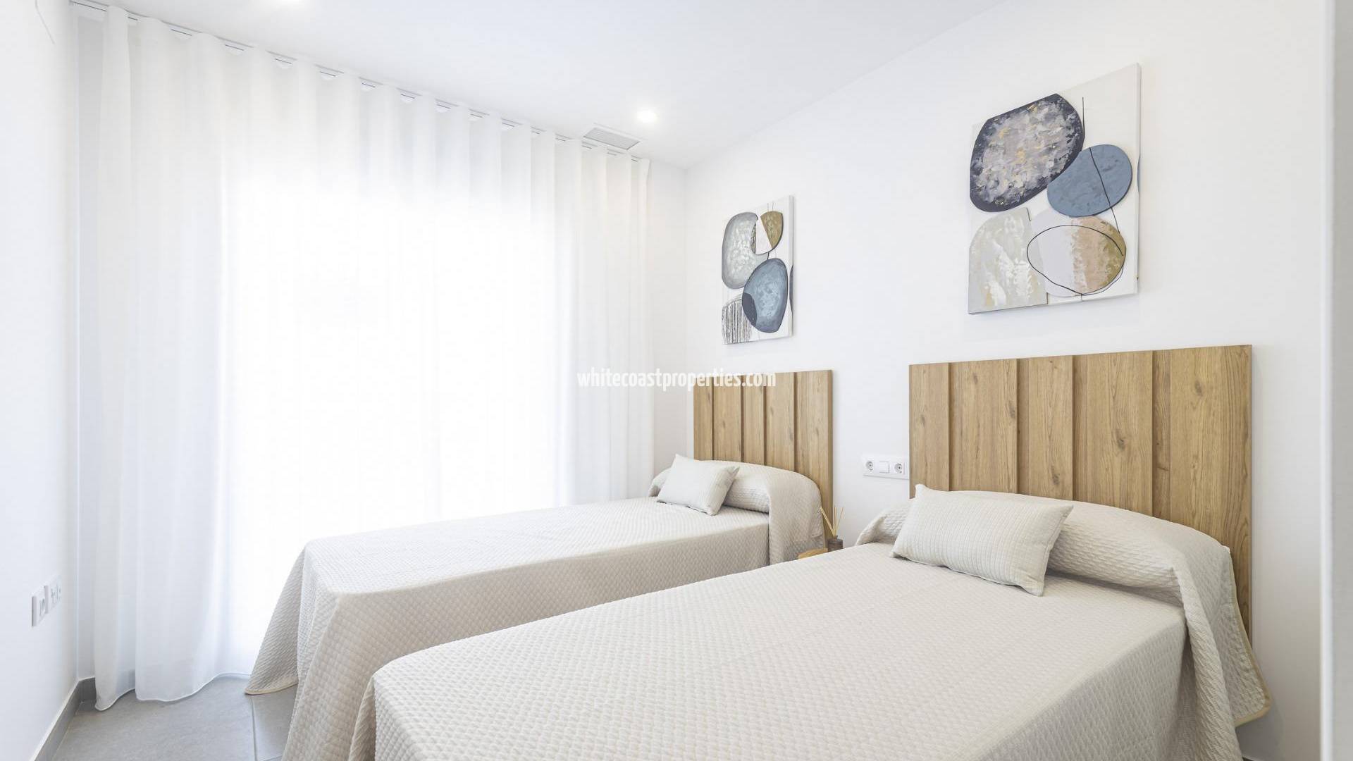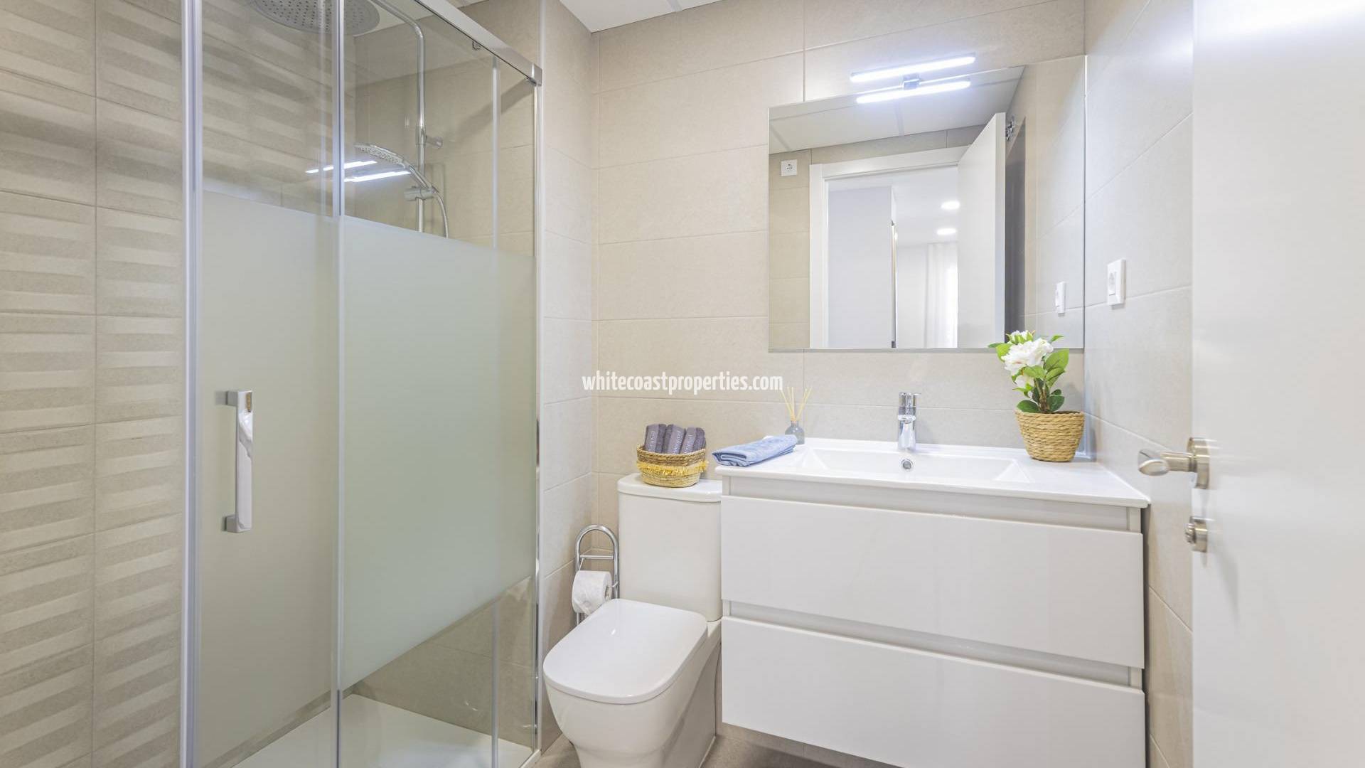 BEAUTIFUL SEA VIEW APARTMENTS IN LA MANGA This urbanization is located in the largest expansion area of ​​La Manga. In this new urbanization the homes have been designed to take advantage of every corner of the house, as well as the care in choosing the materials and their design. Apartments with armored entrance door and doors lacquered in white with stainless steel fittings. White, monobloc blinds and double glazing with air chamber. In the master bedroom built-in wardrobe with sliding doors, with a separating shelf in the mezzanine, a bar and a chest of three drawers. Kitchen with high and low furniture, in white, gola-type handle, single sink with drainer, ceramic hob, electric oven and extractor hood. Pre-installation of air conditioning (cold and heat) through conduits with provision of zoning of rooms. La Manga del Mar Menor is a natural strip of land surrounded by two seas, the Mar Menor and the Mediterranean Sea. To this rarity you can add the multiple leisure and free time options, restaurants, supermarkets, medical centers, pharmacies, nautical sports centers, golf courses. La Manga is located on the north coast of the Costa Calida and is a popular holiday destination for tourists. The narrow land strip separating the warm lagoon and the colder sea has a unique microclimate. It’s one of the most exotic areas in Spain. Corvera airport is about 1 hour drive away and Alicante airport about 2 hours away.