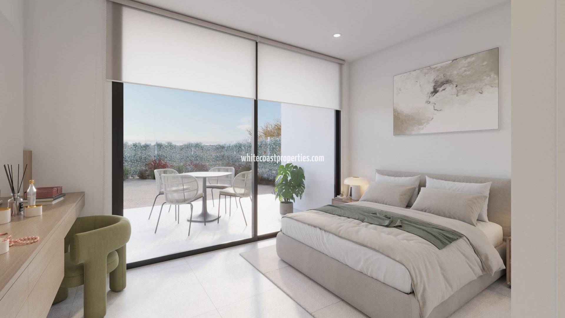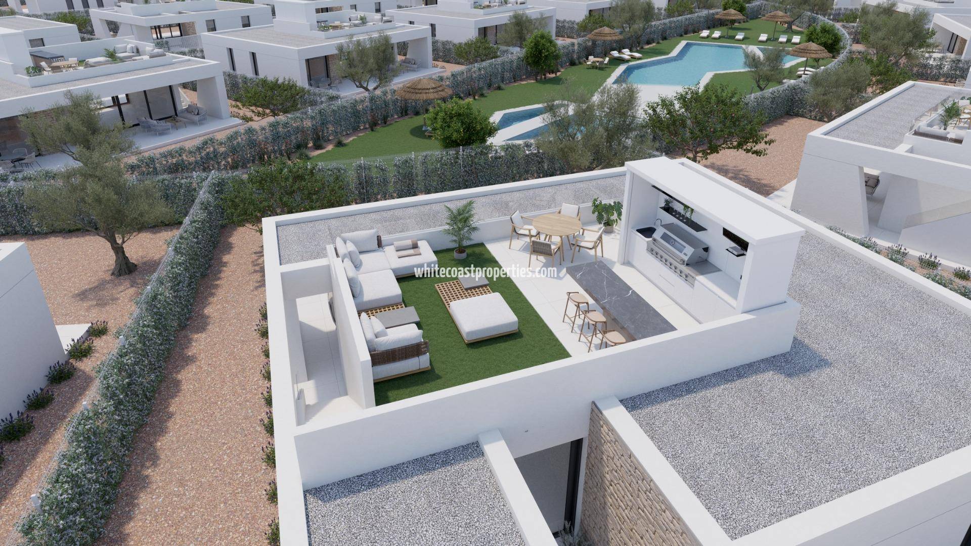 Exclusive villas at Hacienda del Álamo Golf Resort, Costa Cálida Modern villas in one of Spain's finest golf resorts Discover a unique opportunity to purchase a newly built villa at an exceptional price in the Hacienda del Álamo Golf Resort, located between the historic cities of Cartagena and Murcia, in the heart of the Costa Cálida. These contemporary villas are designed to offer comfort, privacy and elegance, and are set in an exceptional environment dedicated to golf and leisure. Each property offers a spacious layout with 3 bedrooms and 2 bathrooms on one floor. Private rooftop solarium. With plots starting at 378 square metres and a built area of 111 square metres, these homes offer ample space for indoor and outdoor living. High-quality features and finishes These villas are equipped with all modern amenities to ensure maximum comfort and style, including: Garden with drip irrigation system Fully equipped kitchen with cupboards and appliances included Pre-installation of ducted air conditioning Bathrooms with furniture, mirrors and shower screens Aluminium windows with thermal break and double glazing Access to a large communal swimming pool with natural grass and children's play area Possibility of adding a private swimming pool at an extra cost Luxury living at Hacienda del Álamo Golf Resort Hacienda del Álamo is renowned as one of Spain's finest golf resorts, offering its residents a relaxed, sporty and comfortable lifestyle. 18-hole golf course and academy Sports facilities including tennis, paddle tennis, gym and fitness classes Main clubhouse with panoramic views, a Mediterranean restaurant and sunny terraces 4-star hotel and spa for relaxation and well-being Spaces for the whole family, with children's play areas, swimming pools and bike lanes. Traditional Spanish village with shops, cafés and new restaurants opening soon. Strategic location with excellent connections Corvera Airport (Murcia): 18 km (approx. 15 minutes) Cartagena: 36 km Murcia city centre: 40 km Mar Menor beaches: 28 km Shopping centres (Dos Mares, Espacio Mediterráneo): less than 30 km Your dream home next to the golf course awaits you Whether you are looking for a permanent residence, a holiday retreat or a smart investment on the Costa Cálida, these golf course villas at Hacienda del Álamo are the perfect choice. Contact us today for more information or to arrange a personalised viewing.