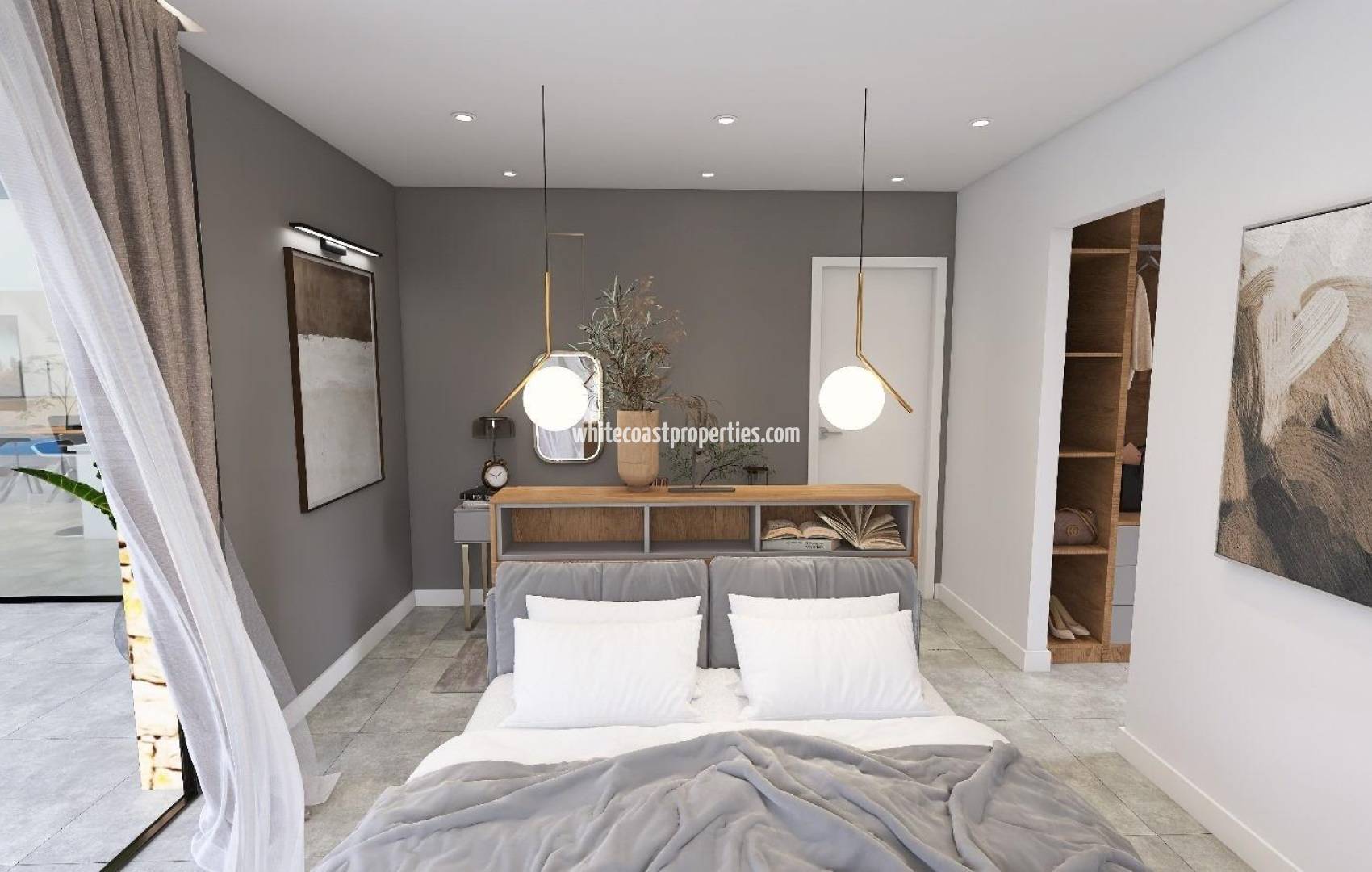 Newly built villas located in the municipality of Aspe. Newly built villas with several models to choose from, with 2, 3 or 4 bedrooms, on one or two floors and built with slabs or with a structure: depending on the model and the plot chosen, the exact price will be calculated. All the villas are built on rustic plots of over 10,000 m2, of which around 2,500 m2 will be fenced off. The villas have an open-plan kitchen with living room, built-in wardrobes, private swimming pool, porch, storage room and outdoor parking space. There are several plots to choose from. The price is based on a plot priced at £77,500 (if another plot is chosen, the difference will be paid or credited according to the price of the plot). Self-build project, delivery in approximately 12 months from the granting of the licence. If you are looking for a quiet environment, close to typical Spanish villages away from tourist crowds, surrounded by mountains, with a very large plot and about 30 minutes from the sea, this is your home. Aspe is a typical Spanish village with all the amenities for everyday life, surrounded by mountains and with several natural areas nearby where you can go hiking or mountain biking. Located 25 km from the beach, 9 km from Elche and about 20 km from Alicante airport.