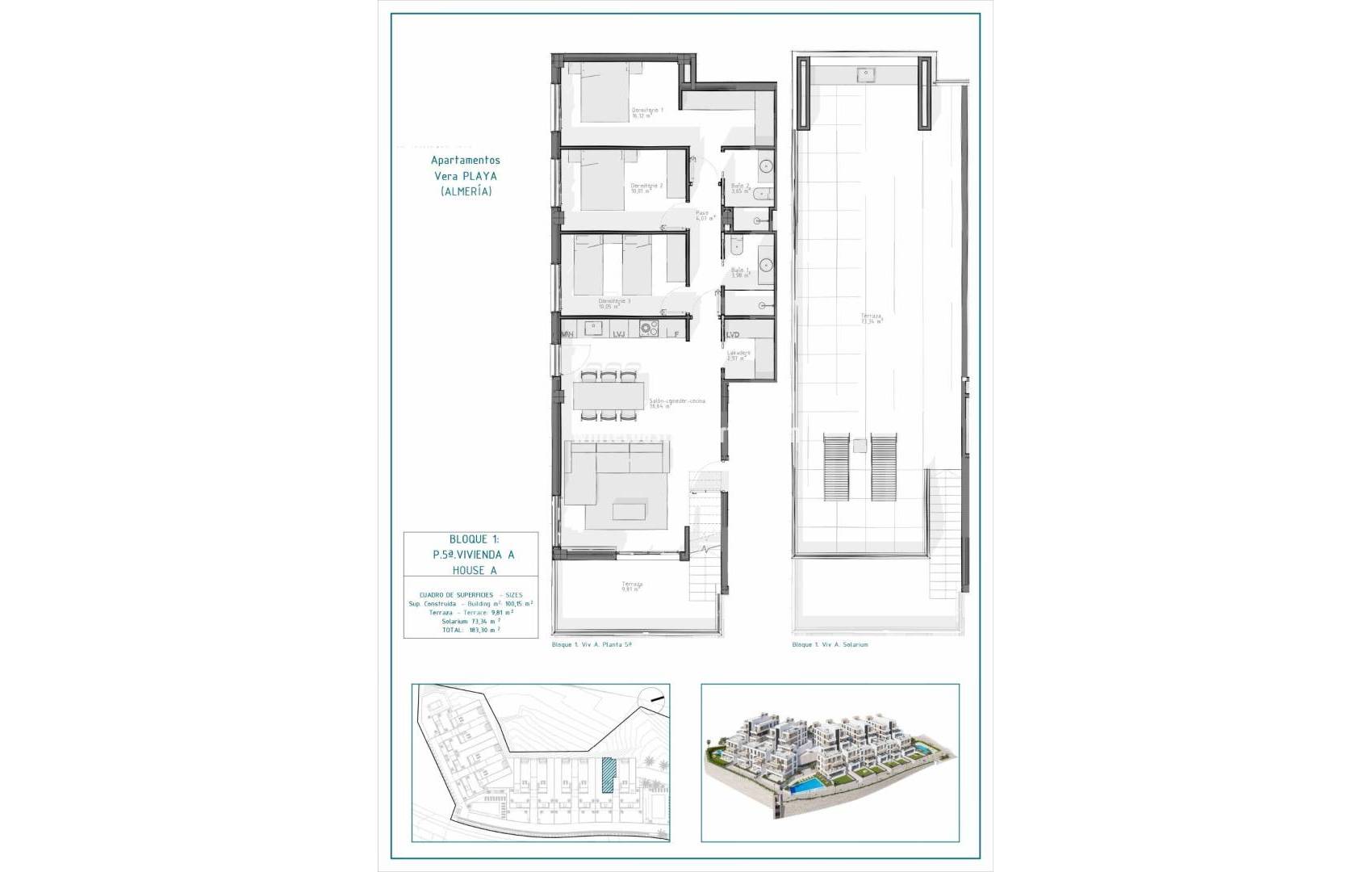 New Build Apartments in Vera Playa, Almería – Modern Homes Near the Sea Contemporary Living in Pueblo Salinas, Just 2 km from the Beach Introducing a stunning new residential development located in the sought-after area of Vera Playa, within the exclusive Pueblo Salinas urbanization. This modern complex offers a privileged lifestyle just 2 km from the beaches of Vera (Almería), boasting spectacular sea views and a peaceful Mediterranean environment ideal for year-round living or holiday enjoyment. Elegant Homes with Modern Comfort and Style This new development consists of 60 high-quality apartments distributed across 5 low-density blocks, with only two properties per floor. Choose between 2 or 3-bedroom layouts designed with functionality, comfort, and style in mind. Options include: Ground floors with private gardens Middle-floor units with spacious terraces Top-floor penthouses with large solariums including summer kitchen and pergola with solar panels. All properties feature: Open-plan fully equipped kitchens with integrated fridge, dishwasher, induction hob, oven, microwave, and extractor fan Bright living spaces and LED lighting throughout (except bedrooms) Motorized aluminum shutters in bedrooms Bathrooms with modern finishes, including towel heaters, shower trays with glass screens and built-in furniture Pre-installation of ducted air conditioning Aerothermal system for efficient hot water production Security entrance door Exceptional Community Amenities Residents will enjoy access to a wide range of amenities designed to enhance comfort and leisure, including: Two outdoor swimming pools perfect for the summer months One indoor heated pool for year-round use Private parking space and storage unit included with every property Pre-installation for electric vehicle charging at parking areas Prime Location with Excellent Connections Vera Playa is a popular coastal destination known for its wide sandy beaches and relaxed lifestyle. The development’s location provides easy access to essential services and attractions: Beach: 2 km Desert Springs Golf Resort: 8 km Vera town center: 5 km Garrucha marina and restaurants: 6 km Parque Comercial Mojácar: 10 km Almería Airport: 85 km (1 hour by car) Make Vera Playa Your New Home Whether you're looking for a permanent residence, a holiday retreat, or a smart investment, these new build apartments offer unmatched value in one of the most desirable areas of the Costa de Almería. Contact us today for more information and to schedule your visit.