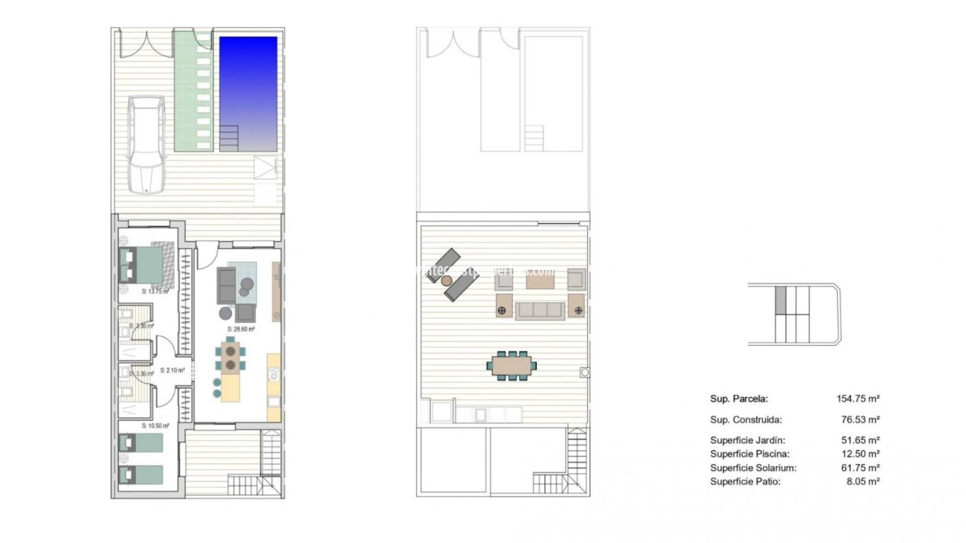NEW BUILD TOWNHOUSES IN SAN JAVIER New Build luxury complex of 24 one level villas or on 2 floors with private pool, terraced area and solarium with Summer kitchen that allows you to enjoy all hours of sunshine, every day of the year. Each villa has 2 or 3 bedrooms and 2 fitted bathrooms on one level or 3 bedrooms and 3 fitted bathrooms on two levels. Designed with a contemporary style and open planned concept, comprising a fully-fitted kitchen and lounge-dining room. The development is located in San Javier (Murcia), near the beach, surrounded by services, parks, sports facilities and several Golf Courses. The property will meet the highest standards and will be equipped with: Private swimming pool with shower. Kitchen completely furnished and equipped with oven, microwave, fridge, integrated dishwasher, hob and extractor fan. Lighting: inside the property (dining room, kitchen, corridors and bathrooms) as well as in outdoor areas. Lined wardrobes with drawers. Fully fitted bathrooms with toilet, vanity unit, mirror and shower with screen panels. Pre-installation for ducted air conditioning. Solarium with Summer kitchen. Parking space on the plot. San Javier is close to all amenities with easy access to the beach, water sports, shops and the transport network. Here you can enjoy all of the facilities that San Javier has to offer such as the local shops, bars and restaurants as well as being near to shopping centres, the airport of Murcia and all of the beautiful places to be found along the Mar Menor. Corvera/Murcia airport is 30 minutes away and Alicante airport is 45 minutes away.