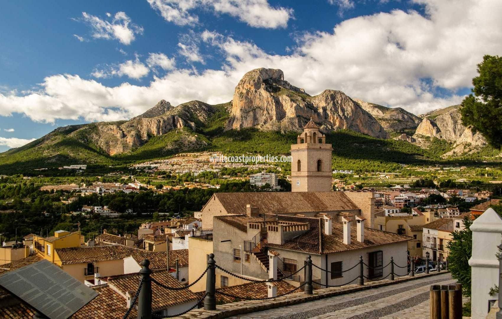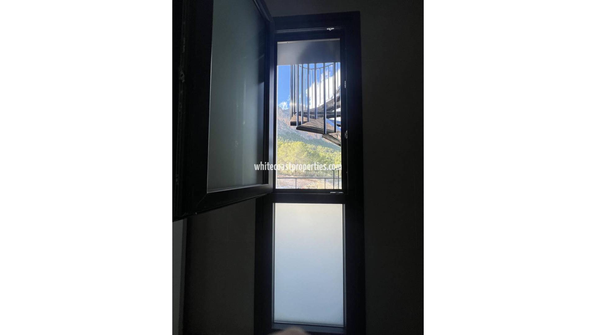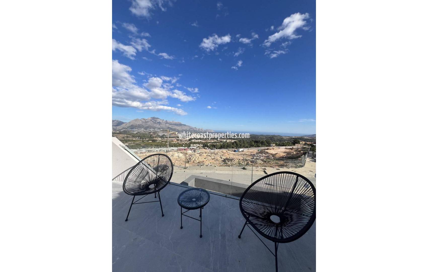 NEW BUILD SEMI-DETACHED VILLAS IN POLOP New Build modern semi-detached villas with several terraces and solarium, totally fenced, with parking area for vehicles and private swimming pool in Polop. Modern properties with 3 spacious bedrooms with built-in wardrobes (the main one on the ground floor, with bathroom and dressing room en suite), 2 spacious bathrooms, large living-dining room with open kitchen, spacious terraces. Kitchen equipped with base units and silestone worktops, with ceramic hob, oven, extractor hood, fridge, washing machine, dishwasher, and aerothermal heater. First qualities: interior carpentry in wood and white lacquered laminates, exterior carpentry in anthracite grey pvc with double glazing and thermal bridge break, and automatic blinds with aluminium slats, ceramic floors of 1st quality non-slip, smooth walls, security door with 5 anchor points, large built-in wardrobes. The city of Polop offers an amazing range of options for lovers of the great outdoors surrounded by nature and unparalleled peace. The municipality enjoys a Mediterranean climate with cooler temperatures and cleaner air, located less than 10 kilometres from Benidorm, Altea and their beaches. It stretches from the rivers Guadalest and Algar to the town of Villajoyosa, including the beaches of Albir and Benidorm; inland it borders Callosa and Guadalest.