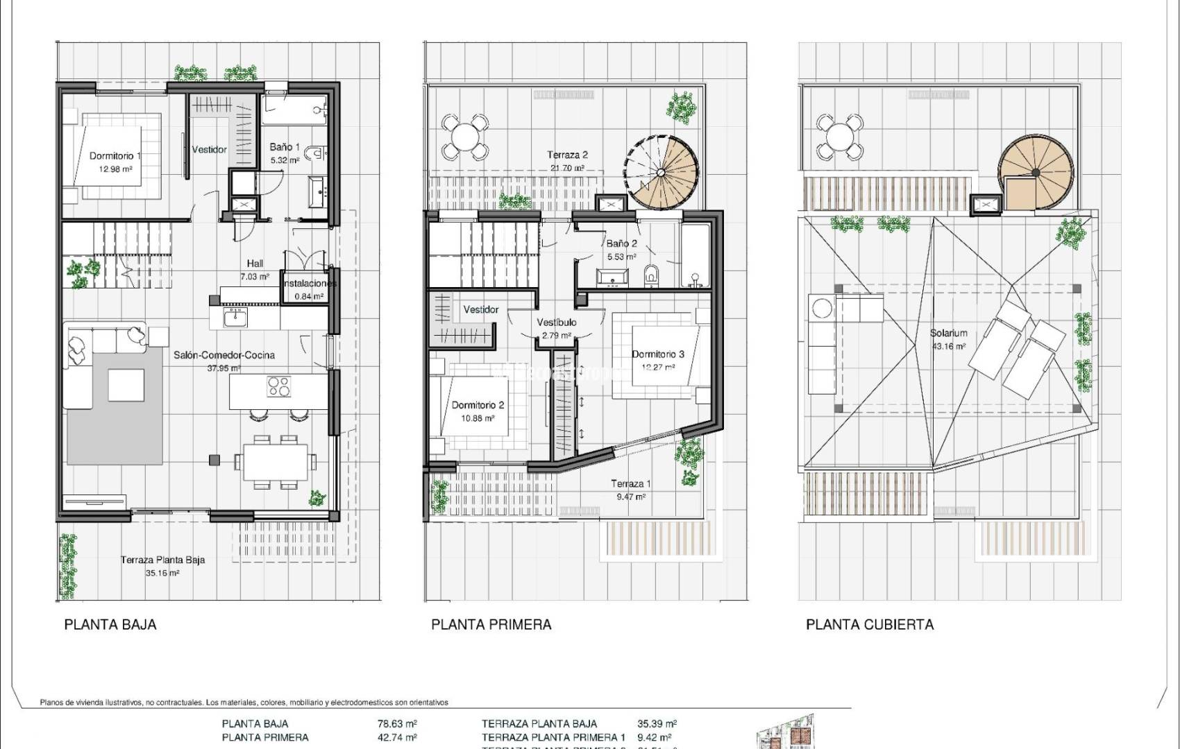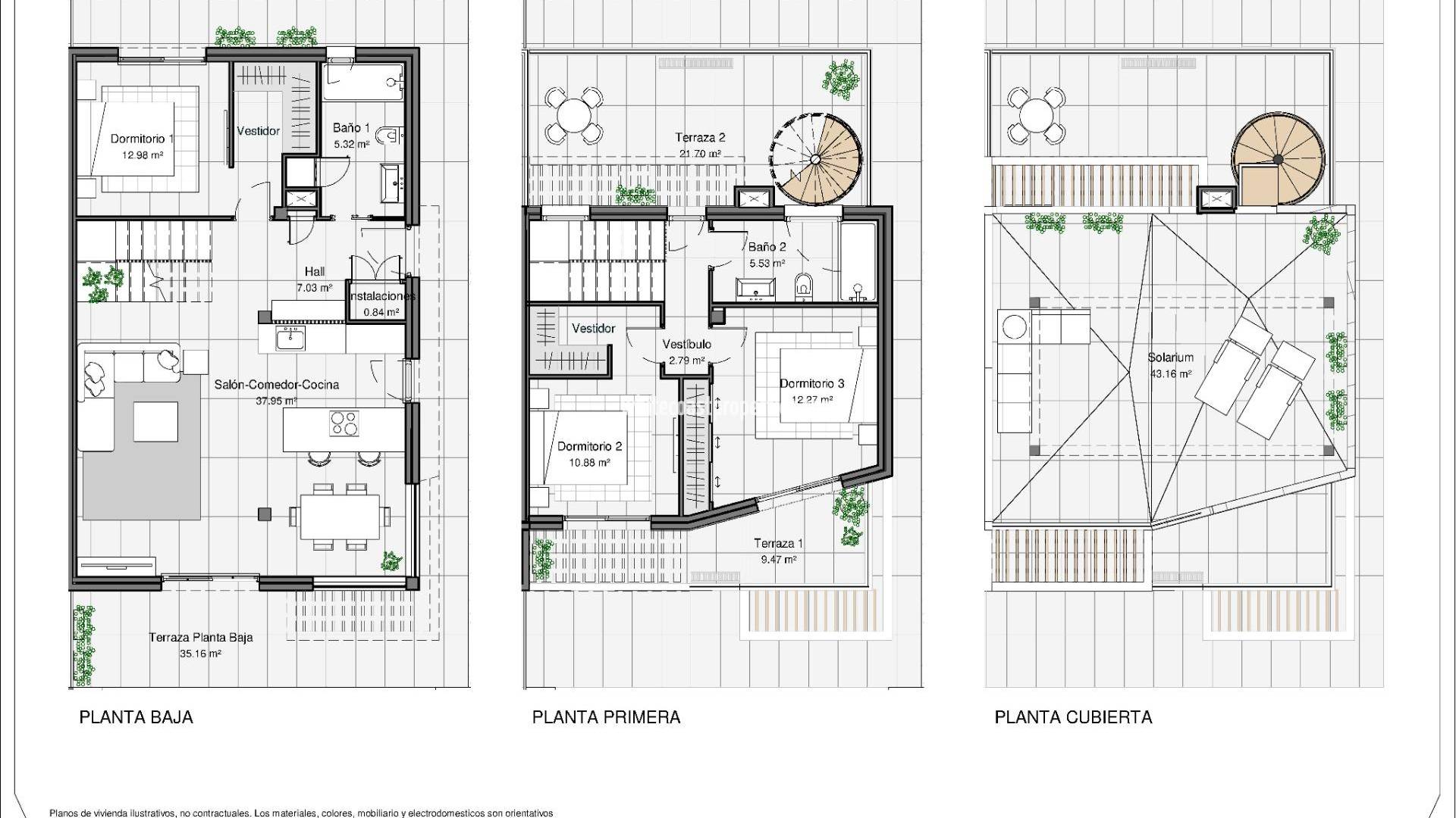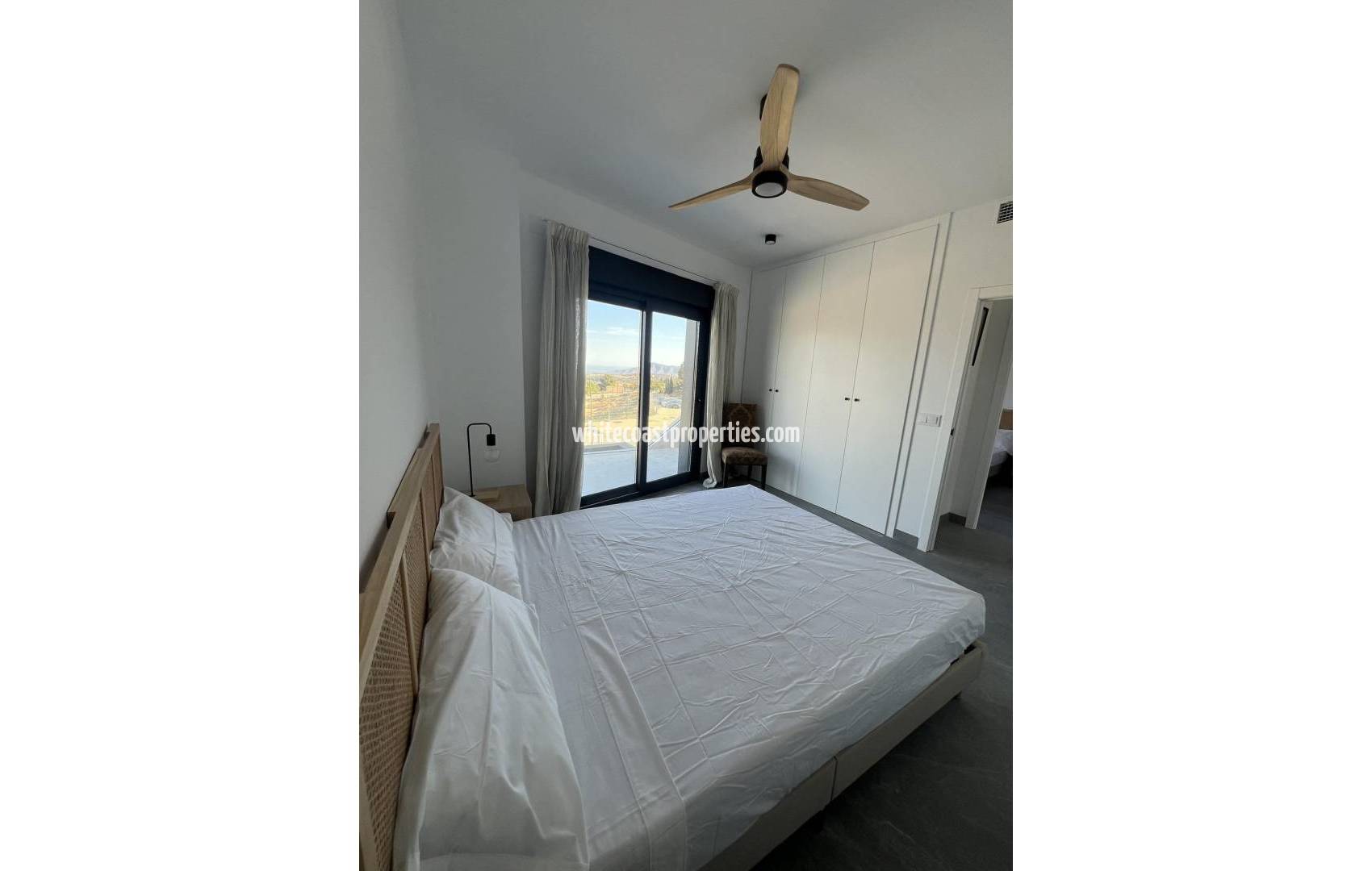 NEW BUILD SEMI-DETACHED VILLAS IN POLOP New Build modern semi-detached villas with several terraces and solarium, totally fenced, with parking area for vehicles and private swimming pool in Polop. Modern properties with 3 spacious bedrooms with built-in wardrobes (the main one on the ground floor, with bathroom and dressing room en suite), 2 spacious bathrooms, large living-dining room with open kitchen, spacious terraces. Kitchen equipped with base units and silestone worktops, with ceramic hob, oven, extractor hood, fridge, washing machine, dishwasher, and aerothermal heater. First qualities: interior carpentry in wood and white lacquered laminates, exterior carpentry in anthracite grey pvc with double glazing and thermal bridge break, and automatic blinds with aluminium slats, ceramic floors of 1st quality non-slip, smooth walls, security door with 5 anchor points, large built-in wardrobes. The city of Polop offers an amazing range of options for lovers of the great outdoors surrounded by nature and unparalleled peace. The municipality enjoys a Mediterranean climate with cooler temperatures and cleaner air, located less than 10 kilometres from Benidorm, Altea and their beaches. It stretches from the rivers Guadalest and Algar to the town of Villajoyosa, including the beaches of Albir and Benidorm; inland it borders Callosa and Guadalest.