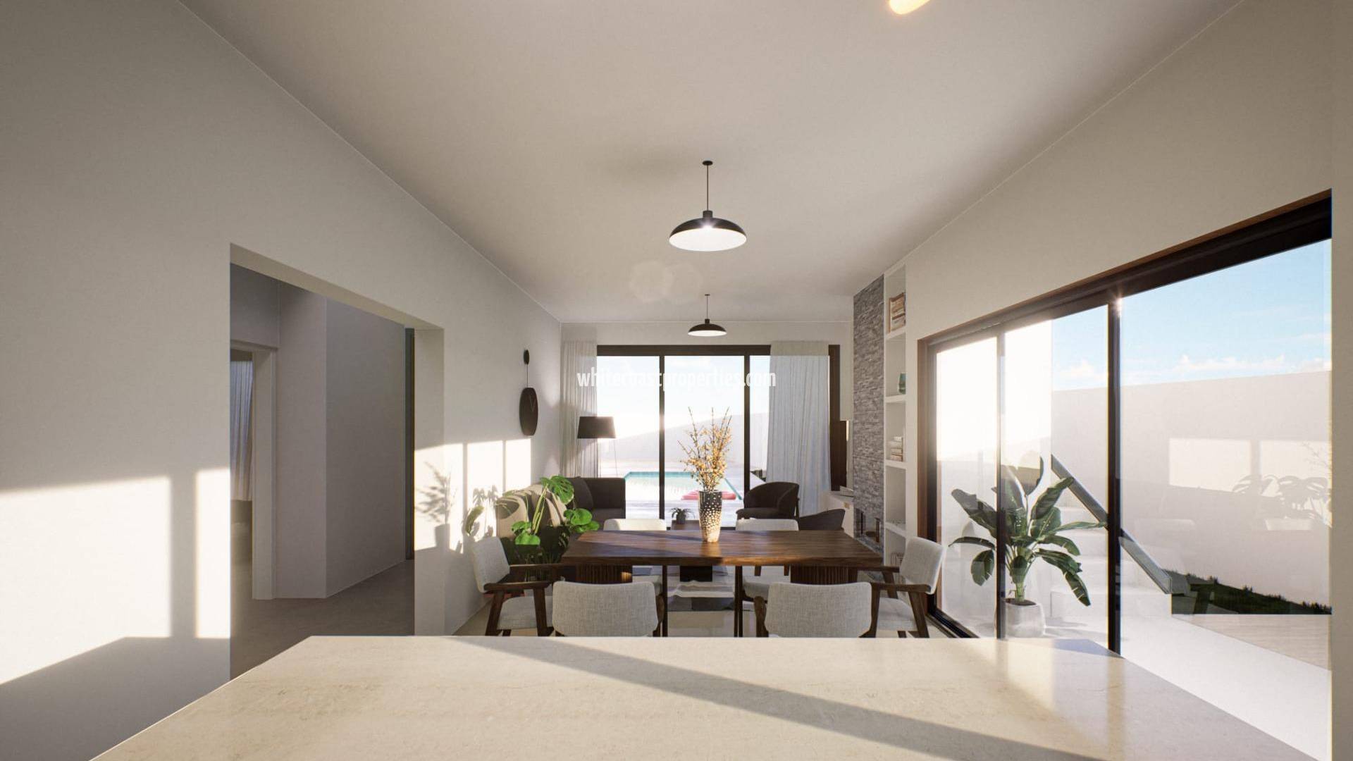 Ibizan-Style Villa in a Tranquil Spanish Village Exclusive New-Build Villa on a Spacious Plot Discover this stunning Ibizan-style villa, a single-story new-build home set on a generous 750 m² plot in Las Casicas, a charming hamlet of Fortuna, Murcia. Designed for privacy and relaxation, this property features a private swimming pool, solarium, and a fully equipped kitchen with modern appliances and stylish cabinetry. A Peaceful Retreat Surrounded by Nature Las Casicas is a peaceful and well-maintained rural area, offering a serene mountain setting with lush vegetation and local wildlife. Despite its tranquil atmosphere, it is not isolated, as it is part of a small, inhabited community that preserves its traditional Spanish charm. The nearby town of Fortuna, just 10 minutes away by car, provides all essential services, including supermarkets, shops, schools, and healthcare facilities. Additionally, the city of Murcia is only 30 minutes away, offering a vibrant cultural scene, shopping centers, fine dining, and entertainment options. Prime Location with Easy Access to Key Attractions This villa is ideally located to enjoy both rural tranquility and urban convenience: Fortuna town center – 10 km (10 minutes) Murcia city – 45 km (30 minutes) Balneario de Leana (spa resort) – A short drive away, surrounded by hotels and restaurants Alicante Airport – 80 km (50 minutes) Beaches of the Costa Blanca – Approx. 1 hour by car Perfect for Relaxation and Outdoor Living This elegant villa is designed to offer a comfortable Mediterranean lifestyle, with a private pool and spacious solarium ideal for enjoying Murcia’s 320+ days of sunshine per year. Its natural surroundings and peaceful ambiance make it an excellent choice for those seeking a holiday home, investment property, or year-round residence. Your Dream Home Awaits! Enjoy the perfect balance between nature and modern comfort in this exclusive villa in Las Casicas, Fortuna. Contact us today for more information or to arrange a visit!