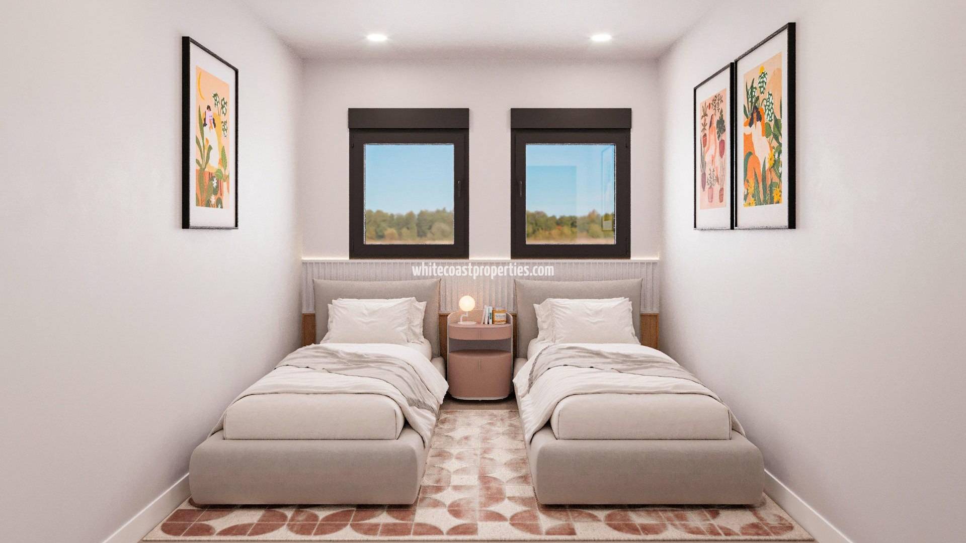 Newly built residential development of villas and townhouses in Fuente Álamo, Murcia. This location offers an exceptional natural environment, far from the hustle and bustle of big cities and the tourist pressure of the coast. Furthermore, we are committed to working from a sustainable development perspective, minimising our environmental impact and maximising integration with the local community. Here, your dreams of a peaceful and sustainable lifestyle become a reality. Imagine waking up every morning in a stunning natural setting, surrounded by peaceful landscapes and the unique beauty of the Murcian countryside. This development prioritises energy efficiency, the use of environmentally friendly materials and harmonious integration with the rural environment. From the design of the property to the planning of the development, we strive to reduce our carbon footprint and promote responsible practices in all our operations. Full ducted air conditioning, hot/cold. Video intercom system. Colour-lacquered security access door with lock and anti-vandal security fittings. Cupboards with storage space, lined inside, lacquered in white. Kitchen furniture with appliances included. Hot water by aerothermal energy. Electric blinds. Pergolas in solariums. Private 2.5x4.5m swimming pool with underwater night lighting and salt chlorination system. Pre-installation for outdoor kitchen/jacuzzi in solarium. Fuente Álamo de Murcia is a town and municipality in the Region of Murcia, in southern Spain. It is located 22 km northwest of Cartagena and 35 km southwest of Murcia. The town is located in the Mar Menor basin, surrounded by the Algarrobo, Los Gómez, Los Victorias and Carrascoy mountain ranges. The water from these mountains flows down into the Rambla de Fuente Álamo and then into the Mar Menor. Fuente Álamo is 30 minutes from Murcia - Corvera airport. Nearest shops 6 km away.