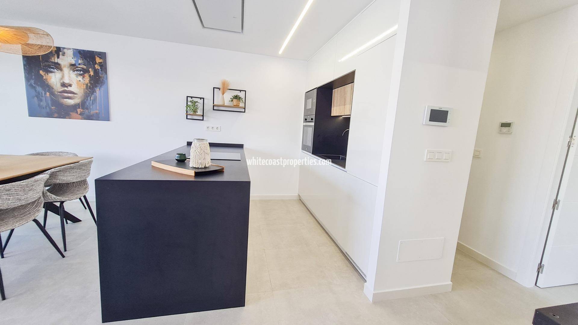Modern New Build Villas in San Pedro del Pinatar with Private Pool Elegant Design and Premium Quality Welcome to the second phase of an exclusive development in San Pedro del Pinatar, where modernity meets functionality. These 12 semi-detached villas are crafted with a minimalist design and high-quality finishes, offering a sophisticated and stylish living experience. Each villa features 3 spacious bedrooms, 3 bathrooms, and a private pool, along with terraces and a private garden. This is the perfect sanctuary for those seeking tranquility, privacy, and unparalleled comfort. Thoughtfully Designed Homes for Modern Living These new-build villas boast an open-plan kitchen connected to a bright living area, creating a seamless space for family living and entertaining. Key features include: 3 bedrooms with built-in wardrobes. 3 bathrooms with transparent glass shower screens for a sleek look. Private pool and garden, perfect for relaxing outdoors. First-floor terraces and an optional rooftop solarium for sunbathing. Parking space on the plot. Large windows in the living room provide direct access to the pool area, flooding the interior with natural light. Energy-efficient additions like solar panels and pre-installed ducted air conditioning ensure modern comfort and sustainability. Included appliances by Balay (induction hob, oven, microwave, extractor, refrigerator, integrated dishwasher, and washing machine) make moving in effortless. Prime Location in San Pedro del Pinatar Located on the beautiful Mar Menor and Mediterranean coast, San Pedro del Pinatar is a dream destination for water sports enthusiasts and beach lovers. The area is renowned for its serene beaches, natural mud baths, and vibrant marina, offering year-round activities in a mild climate. Points of interest near these villas include: Dos Mares Shopping Center: 5 km (5 minutes by car). Murcia-Corvera Airport: 30 km (30 minutes by car). Alicante Airport: 80 km (1 hour by car). Local golf courses: Various options within 10–15 km. Lo Pagán beaches: Just a short 3 km drive away. The neighborhood is well-served by schools, sports facilities, shops, and public transport, making it ideal for families and retirees alike. Discover Your Dream Home Today Don’t miss the chance to own one of these exclusive villas in a thriving community. Experience the best of coastal living and make San Pedro del Pinatar your new home. Contact us now to schedule a viewing and secure your piece of paradise!