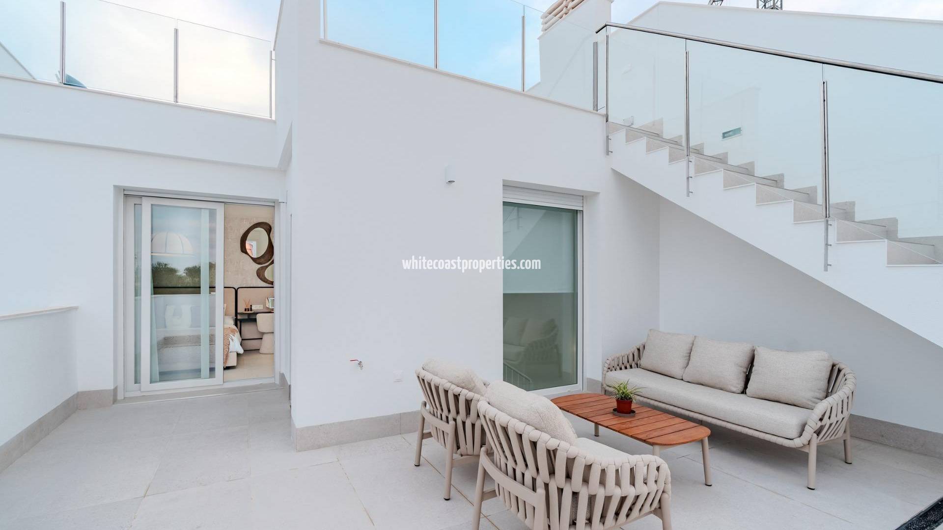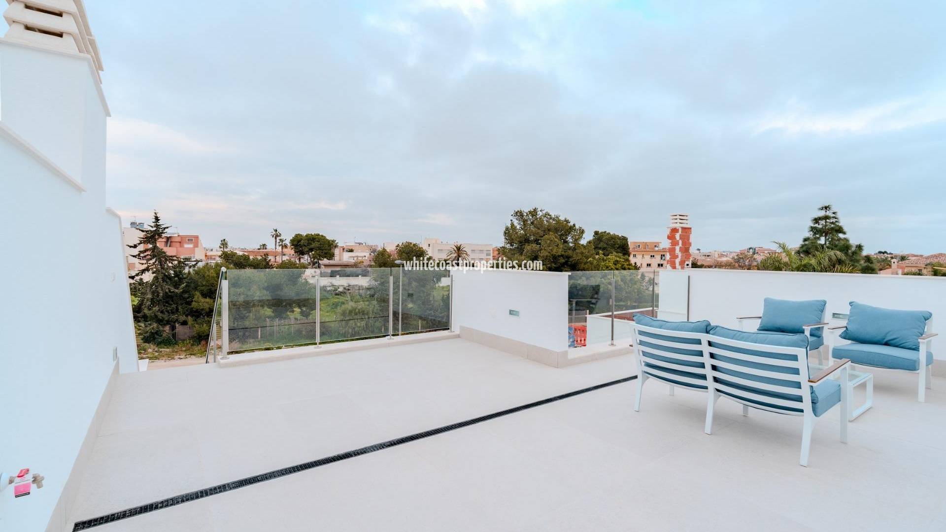 New Build Villas Near La Serena Golf and the Beach in Los Alcázares Discover the exclusive New Build Villas in the prestigious Torre del Rame area of Los Alcázares, Murcia. Known for its Mediterranean climate, this location offers easy access to both La Serena Golf and the beautiful beaches of the Mar Menor, making it an ideal place for leisure and relaxation. Property Options and Features Choose between two stunning villa models: a detached or semi-detached option. Both offer 3 bedrooms, 3 bathrooms, a basement with a garage, a private pool, and a spacious solarium. These modern, elegant designs feature bright, open spaces filled with natural light, high-quality finishes, ducted air conditioning, and underfloor heating in the bathrooms. Each villa also includes a landscaped garden and fully equipped kitchen. Prime Location and Easy Access Conveniently located near the AP7 motorway, the villas are well-connected to the Mediterranean coastline, allowing you to explore the diverse beauty of the region. The area offers a wide range of nearby amenities including supermarkets, shops, sports centers, schools, and pharmacies, ensuring a comfortable, convenient lifestyle in a peaceful residential setting. Nearby Points of Interest La Serena Golf: 1 km Mar Menor Beach: 1 km Murcia Airport: 35 km Cartagena Port: 22 km Local Shopping Center: 3 km