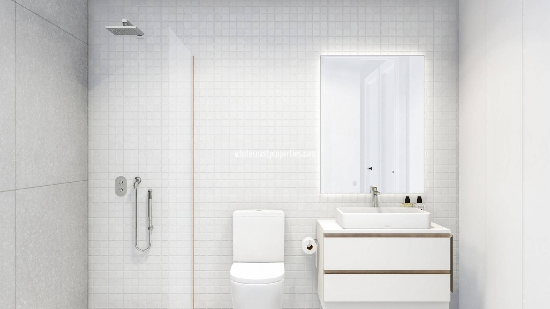 NEW BUILD BUNGALOWS IN RODA GOLF New Build residential complex located on a south-facing plot inside the prestigious Roda Golf & Beach Resort, bordering the course with its manicured fairways and feature lakes. This beautiful complex comprises 37 spacious homes surrounding a stunning pool and communal gardens. This modern residential offers a range of property types, views and orientations, according to your requirements. All bungalow apartments boast 3 double bedrooms, 2 bathrooms, a light and spacious open-plan living-dining room with American kitchen and fantastic outside space. All include off-road parking and a private storeroom. The 18 ground floor bungalows enjoy an interior terrace and garden which lead out to the communal gardens and pool area, as well as a large, gated rear terrace and garden. The 18 penthouses include a front balcony off the living room, as well as a fantastic, 90m2 private roof solarium with summer kitchen. Residential complex has been designed to maximise the use of space and light. Superbly built and including a wide range of extras, this exclusive promotion is a real oasis on Spain´s Costa Calida. At the heart of the development lies a stunning communal pool area, surrounded by Mediterranean vegetation. Enjoying sun all day long thanks to its south facing orientation, it is the perfect place to swim, relax and soak up the Murcian sunshine. As well as enjoying fantastic inside space, the ground floor properties boast a beautiful front terrace plus additional, private garden that leads out into the interior of the development with its stunning communal gardens and pool area. In addition, they offer a back terrace and enclosed garden for maximum privacy, with a gate that leads out to the exterior of the urbanisation. The duel orientation ensures that the homes enjoy sun and shade all day long. A beautifully maintained, Dave Thomas designed 18 hole course with lakes, strategically placed bunkers, undulating greens and lush Mediterranean vegetation. A private resort with 24 hour security, its own taxi rank, a stunning club house with a la carte restaurant, gym with lake views and sports area. And all this just a stroll or cycle ride away from the beaches and tranquil waters of the Mar Menor inland lagoon. This residential has a fantastic selection of golden sandy beaches on its doorstep, as well as a a wide range of watersports. Enjoy both the Mar Menor and the Mediterranean seas from this paradise on the Murcian coastline.