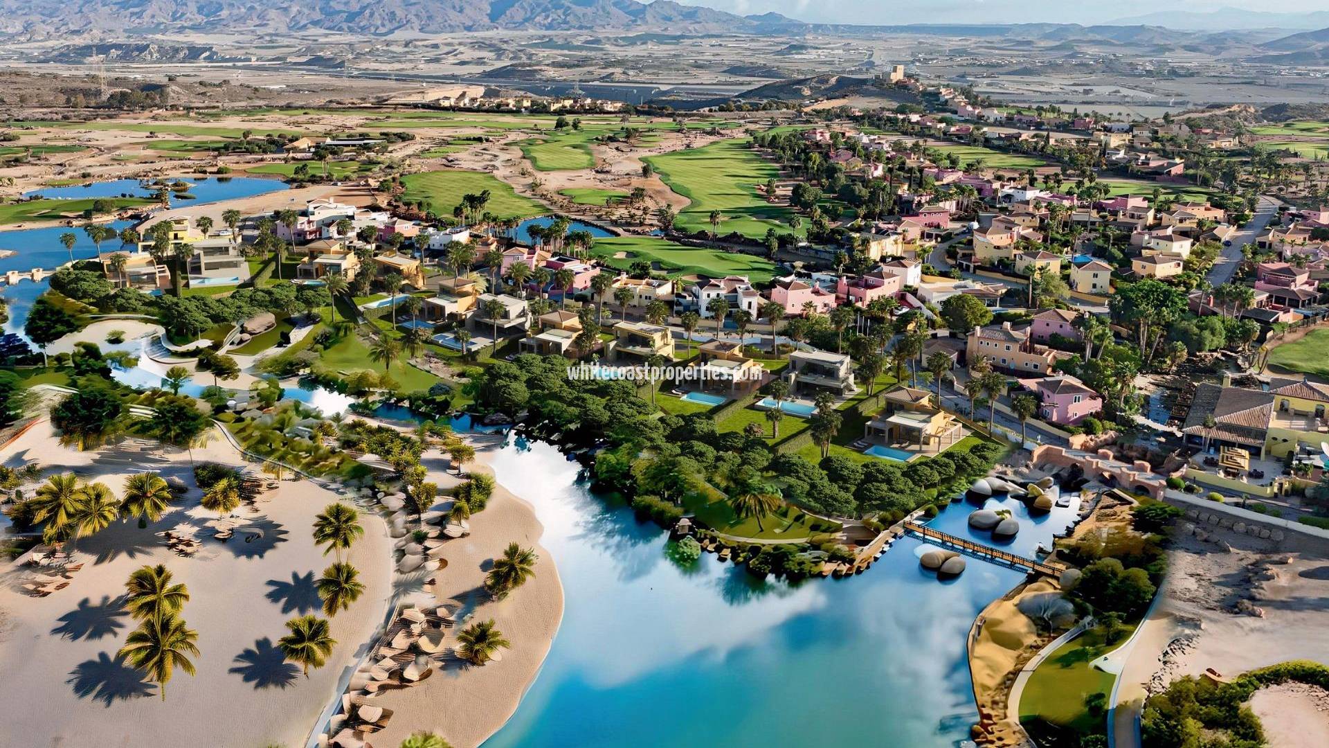 New Build Modern Villas with private pool in Desert Springs Resort Nestled in the prestigious Desert Springs Golf Resort, these villas epitomises contemporary luxury, blending sophisticated design with stunning natural surroundings. The 3 bedroom and 4 bedroom detached villas integrate sophisticated architecture affording space, privacy, and an exquisite retreat for refined living. The ground floor, thoughtfully designed for effortless indoor-outdoor living, features a spacious en suite double bedroom and private terrace, affording an elegant sanctuary. The open-plan living and dining areas flow seamlessly onto sun-drenched terraces-perfect for alfresco dining. The stylish kitchen, crafted with premium materials, enhances both function and elegance. Ascending to the first floor, you are welcomed into a private haven. The master suite, complete with a luxurious en suite bathroom, enjoys direct access to an expansive private terrace, offering a secluded retreat with panoramic views. Additional generously sized bedrooms provide versatile accommodation, ideal for family or guests. Set on generous plots ranging from 785m2 to 1,269m2, the villas offer an unparalleled vantage point overlooking a tranquil lake, with the dramatic backdrop of the Sierra Cabrera mountains. With space for parking 2 cars, a storage room, fully installed air conditioning system and furnished kitchens equipped with appliances. With its contemporary design, premium finishes, and exceptional location, these villas redefine luxury resort living, offering an unparalleled blend of sophistication, comfort, and natural beauty.