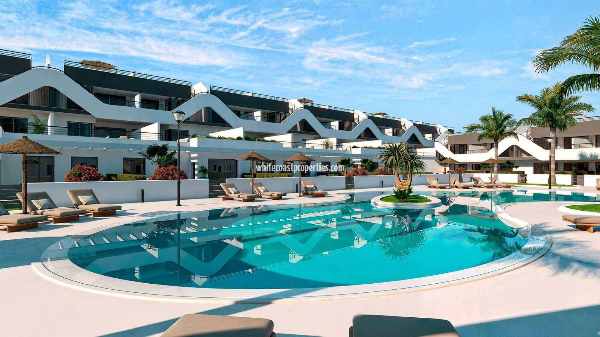 New Build Apartments with Open Views in Alfaz del Pi Exclusive Residential Living on the Costa Blanca Discover this exclusive residential complex in Alfaz del Pi, a charming town on the Costa Blanca surrounded by Mediterranean nature and close to all essential services. Designed for those who value tranquility, well-being, and modern comfort, this development offers 123 new build apartments with spacious layouts, large terraces, landscaped areas, and access to beautiful communal swimming pools. Just 4 km from the beaches of El Albir and Altea, it is the ideal location for enjoying the Mediterranean lifestyle all year round. Spacious and Bright Apartments Choose from 1, 2, or 3-bedroom apartments featuring open-plan living rooms with integrated kitchens, large windows, and direct access to south-facing terraces that fill each home with natural light. The master bedrooms are generously sized and finished with quality materials. Options include: Ground floors with private gardens Middle floors with wide terraces Penthouses with private solariums For an extra touch of exclusivity, there is the option to add a private pool or jacuzzi on the ground floors or solariums. All residences come with a garage space in either the underground level or surface parking. Premium Features and Community Amenities These homes are built with high-quality specifications to ensure comfort and style: Fully fitted kitchens with quartz countertops and storage cabinets Double-glazed windows with thermal break carpentry Electric shutters in bedrooms Armored front doors Complete ducted air conditioning installation The gated community includes two swimming pools with beach-style access, landscaped gardens, lifts with capacity for 8 people, and a concierge service. Alfaz del Pi: Nature, Sports, and Connectivity Located just 1.5 km from the town center, residents have easy access to shops, restaurants, and daily services. The Alfaz del Sol Sports Club, only a 2-minute walk away, offers tennis, padel, basketball, futsal, gym facilities, and a vibrant community atmosphere. Nature lovers will enjoy proximity to the Serra Gelada Natural Park and Puig Campana mountain, while cyclists can explore some of the most scenic road routes in Spain. Golf enthusiasts have nearby courses such as Don Cayo Golf (6 km), Villaitana Golf (9 km), and Puig Campana Golf (12 km). Alicante Airport is just 60 km away, making international travel simple. Secure Your New Mediterranean Home Today Whether you seek a permanent residence, a holiday retreat, or a smart investment, these new build apartments in Alfaz del Pi offer the perfect combination of modern living and natural surroundings. Contact us today to arrange a visit and reserve your dream home on the Costa Blanca.