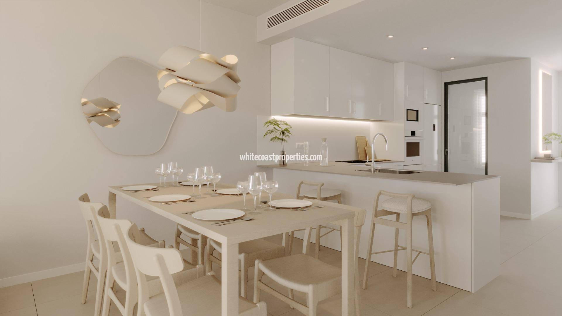 New-Build Residential Apartments in La Nucía with all facilities nearby Modern Homes in the Heart of La Nucía This exclusive residential development is located in La Nucía, one of the most sought-after towns on the Costa Blanca, just 7 km from the sandy beaches of Benidorm and Altea. Set within the new and vibrant Ciudad del Deporte district, the area offers a perfect blend of nature, comfort, and modern living. Nearby you will find state-of-the-art sports facilities, a newly planned shopping center, schools, and all essential services for day-to-day life. Alicante-Elche Airport is approximately 60 km away, ensuring excellent connectivity for both residents and visitors. Stylish Apartments Designed for Comfort The project offers 2 and 3-bedroom apartments, ground-floor units with private gardens, and penthouses with spacious solariums. Each home features open and bright living spaces designed to maximize natural light and seamlessly connect indoor and outdoor living. Large terraces provide the perfect setting to enjoy the mild Mediterranean climate all year round. Exclusive Community Amenities Residents will benefit from exceptional communal areas designed for relaxation and leisure. A large communal swimming pool with a separate children’s area offers the perfect spot to cool off on warm days, while the landscaped gardens and children’s playground provide spaces for the whole family to enjoy. For those who value fitness and wellness, a fully equipped gym and a modern social club are available within the complex, creating an inviting community environment. Premium Quality and Sustainable Design Each home is built with high-quality materials and finishes, including PVC or lacquered aluminum windows with thermal break and double glazing, armored entrance doors, and aerothermal systems for efficient hot water production and climate control. Kitchens come fully fitted with upper and lower cabinetry, induction hobs, ovens, extractor hoods, and microwaves, while bathrooms are delivered with furniture, mirrors, and shower screens. Each apartment also includes a private parking space and storage room in the basement. A Perfect Location Surrounded by Nature and Leisure La Nucía is known for its peaceful environment, surrounded by Mediterranean pine forests and mountain views, while still offering easy access to the lively coastal towns of Benidorm and Altea. Golf lovers will find several top courses within a 15 km radius, and the bustling shopping centers of Finestrat are just 10 km away. Secure your new home in La Nucía today and embrace the Mediterranean lifestyle on the Costa Blanca.