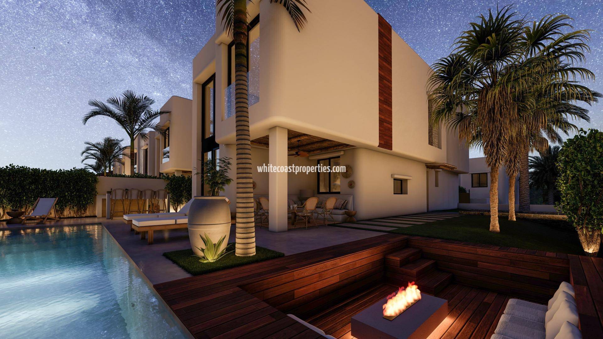 Exclusive New-Build Villas in El Albir – Mediterranean Lifestyle by Sierra Helada Premium Location Surrounded by Nature and Close to the Sea Discover 17 exclusive detached villas located in a peaceful residential area of El Albir, just 1.4 km from the beach and at the foot of the stunning Sierra Helada Natural Park. This unique setting offers a perfect balance between privacy, nature, and proximity to all amenities. The charming town of Altea is only 6 km away, Benidorm is 7 km away, and Alicante International Airport can be reached in approximately 60 km. Golf lovers will appreciate that the renowned Altea Club de Golf is just 5 km from the development, while shopping centers, marinas, and fine dining options are all nearby. Authentic Ibizan-Inspired Design with High-End Finishes These 17 villas have been thoughtfully designed to combine contemporary comfort with the timeless elegance of Ibizan architecture. White facades, natural woods such as pine and sabina, and stone elements capture the bright Mediterranean light. Each home comes with a private plot, landscaped garden, and a private swimming pool with an integrated jacuzzi. Spacious terraces, a barbecue area, and an outdoor bar create the ideal environment for enjoying the Mediterranean lifestyle year-round. Spacious Interiors and Modern Comfort The villas offer four generous bedrooms, three bathrooms, and a guest toilet distributed across two floors. The open-plan living and dining area features double-height ceilings that enhance natural light and create an airy, inviting atmosphere. Additional highlights include an interior garden with a skylight, a wine cellar, and a floating staircase that adds a touch of architectural elegance. Kitchens come fully furnished with upper and lower cabinets and high-quality appliances, while electric roller blinds in the bedrooms provide both comfort and convenience. Designed for Year-Round Enjoyment Perfectly equipped for both summer and winter living, these homes offer radiant floor heating for cooler months and multiple outdoor areas for dining and relaxation during the warmer seasons. Each property includes private parking, landscaped gardens, and extensive options for customization to suit individual tastes. Delivery is scheduled within 11 months from reservation, ensuring a personalized and seamless buying process. An Ideal Investment in El Albir El Albir is known for its cosmopolitan yet laid-back atmosphere, crystal-clear waters, and access to protected natural surroundings. This project offers the perfect opportunity for those seeking a permanent residence, a holiday home, or a high-potential investment in one of the most desirable areas of the Costa Blanca. Contact us today to arrange a viewing and make your dream of Mediterranean living a reality.