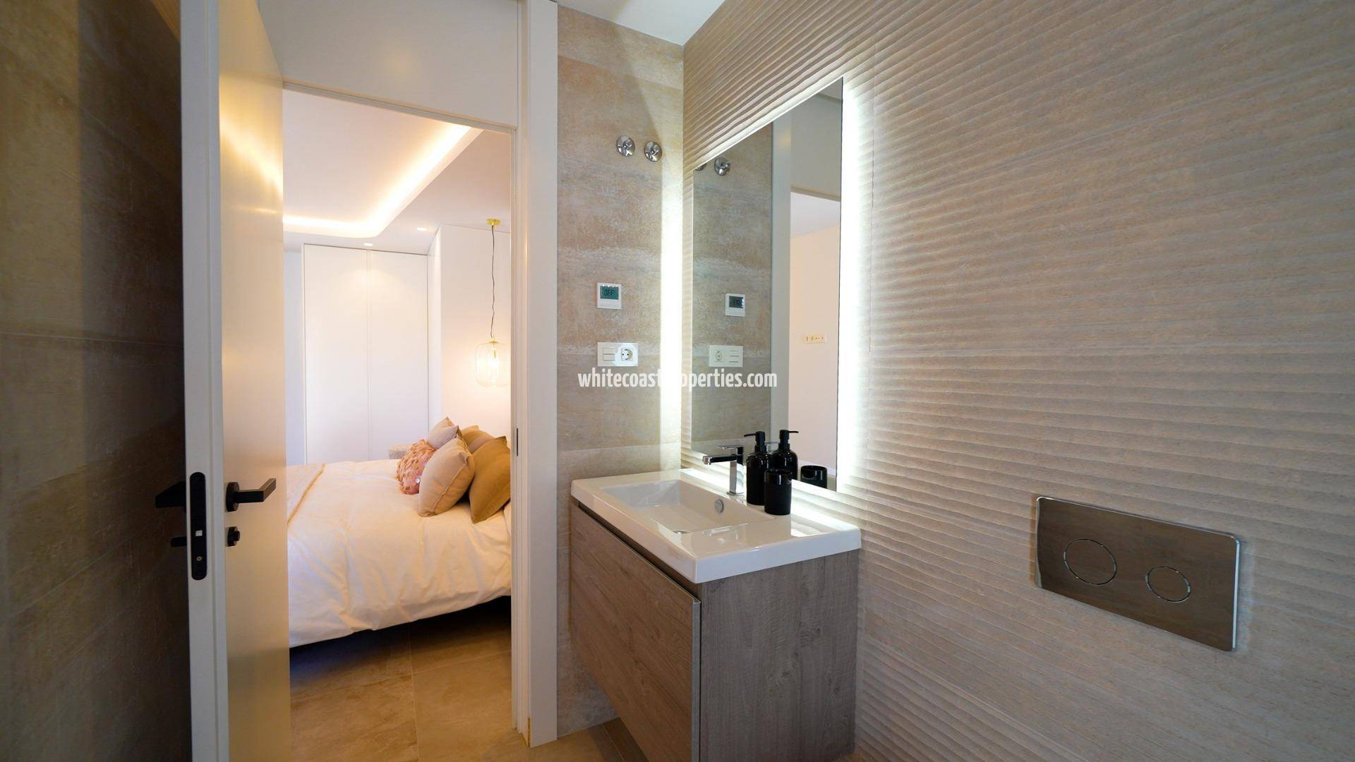 New Build Luxury Villas in Orihuela Costa – Less Than 4 km from the Beach Experience premium coastal living in this exclusive new development of 10 independent villas located in Los Altos, one of the most sought-after areas of Orihuela Costa, Alicante. Designed with comfort, style, and functionality in mind, these luxury villas offer the perfect blend of modern architecture and Mediterranean lifestyle, just minutes from the sea and essential services. Spacious Villas with Private Pools and Solariums Each villa is distributed across two floors plus a rooftop solarium and includes: 3 bedrooms, including 2 with ensuite bathrooms 3 fully equipped bathrooms Open-plan kitchen connected to the living room Large windows providing natural light and direct access to the terrace Private garden with a semi-covered terrace and swimming pool On-site private parking These homes are ideal for families, retirees, or investors seeking a high-quality residence near the beach on the Costa Blanca. Premium Finishes and Energy-Efficient Systems Built to high specifications, each villa features: Porcelanosa tiles throughout the property Aerothermal water heating system for energy efficiency Modern bathrooms with furniture and shower screens Motorized blinds in all bedrooms Spacious rooftop solarium perfect for sunbathing or relaxing outdoors All materials and finishes are carefully selected to offer a refined, durable, and eco-conscious home. Prime Location in Los Altos, Orihuela Costa Located less than 4 km from the beaches of Punta Prima and Playa Flamenca, this residential complex offers easy access to the best of Orihuela Costa. The area is known for its excellent infrastructure and services, including: Zenia Boulevard shopping center – 3 km Villamartín Golf – 5 km Las Ramblas Golf – 7 km Alicante Airport – 55 km Murcia-Corvera Airport – 60 km Torrevieja Marina – 6 km Los Altos is a peaceful yet vibrant neighborhood with supermarkets, schools, medical centers, and restaurants, making it an ideal location for year-round living or holidays. Your Luxury Villa Awaits on the Costa Blanca Don't miss the opportunity to own a stunning new villa in one of the most desirable coastal locations in Alicante. Contact us today for more information or to book a viewing.