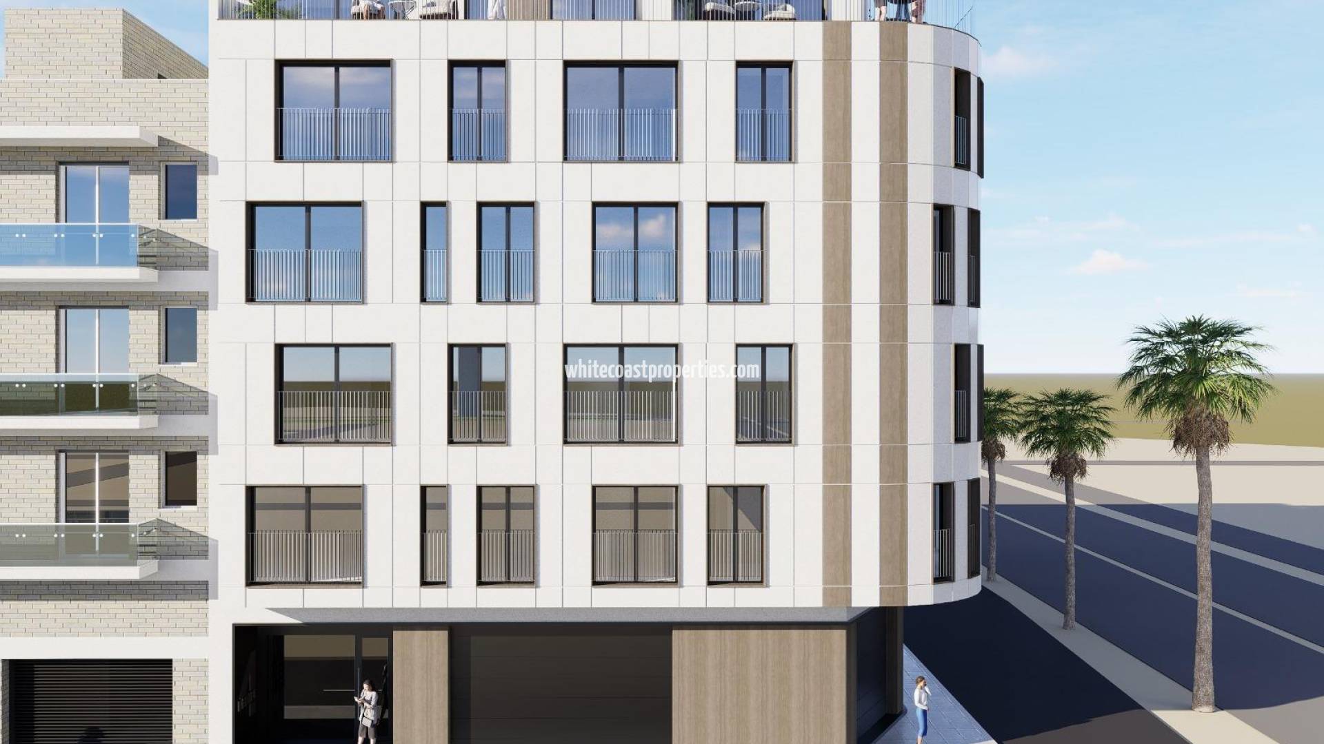 Stylish Residential Building 60 m away from El Acequion Beach at Torrevieja 23 Functional Homes with a selection of 1, 2 and 3 bedroom apartments, and penthouses with large private terraces. Optional parking spaces at underground for additional convenience. Enjoy life just steps from the Mediterranean. Surrounded by everything you need — supermarkets, schools, restaurants, parks, and beach bars — making it the perfect place to live year-round or enjoy as a second home. Each unit is thoughtfully designed to maximize natural light, space, and functionality — with some houses with private terraces or laundry rooms. On the rooftop, residents can enjoy a communal solarium with a relaxing lounge area and a swimming pool, perfect for soaking up the sun and sea breeze all year round. Distances to key points: Acequión Beach: 60 m Torrevieja town centre: 500 m Marina Salinas marina: 1.5 km Torrevieja University Hospital: 5.5 km Villamartín golf course: 10 km Habaneras Shopping Centre: 3 km Alicante Airport: 45 km High-end finishes in every home The homes have been built with top-quality materials and contemporary design: Exterior carpentry in aluminium with thermal break and double glazing Motorised blinds at bedrooms. Armoured entrance door Kitchen equipped with wall and base units Hot water produced by aerothermal system Air conditioning pre installation Baths with furnitures, mirrors and fixed glass at showers. Lift in the building Live a stone's throw from the sea and the town centre Torrevieja is one of the most dynamic and growing coastal towns on the Costa Blanca, famous for its climate, beaches, salt flats and cultural life. This development is ideal as a permanent residence, investment or second home for holidays. Contact us today for more information or to arrange a viewing and secure your home by the sea in Torrevieja.