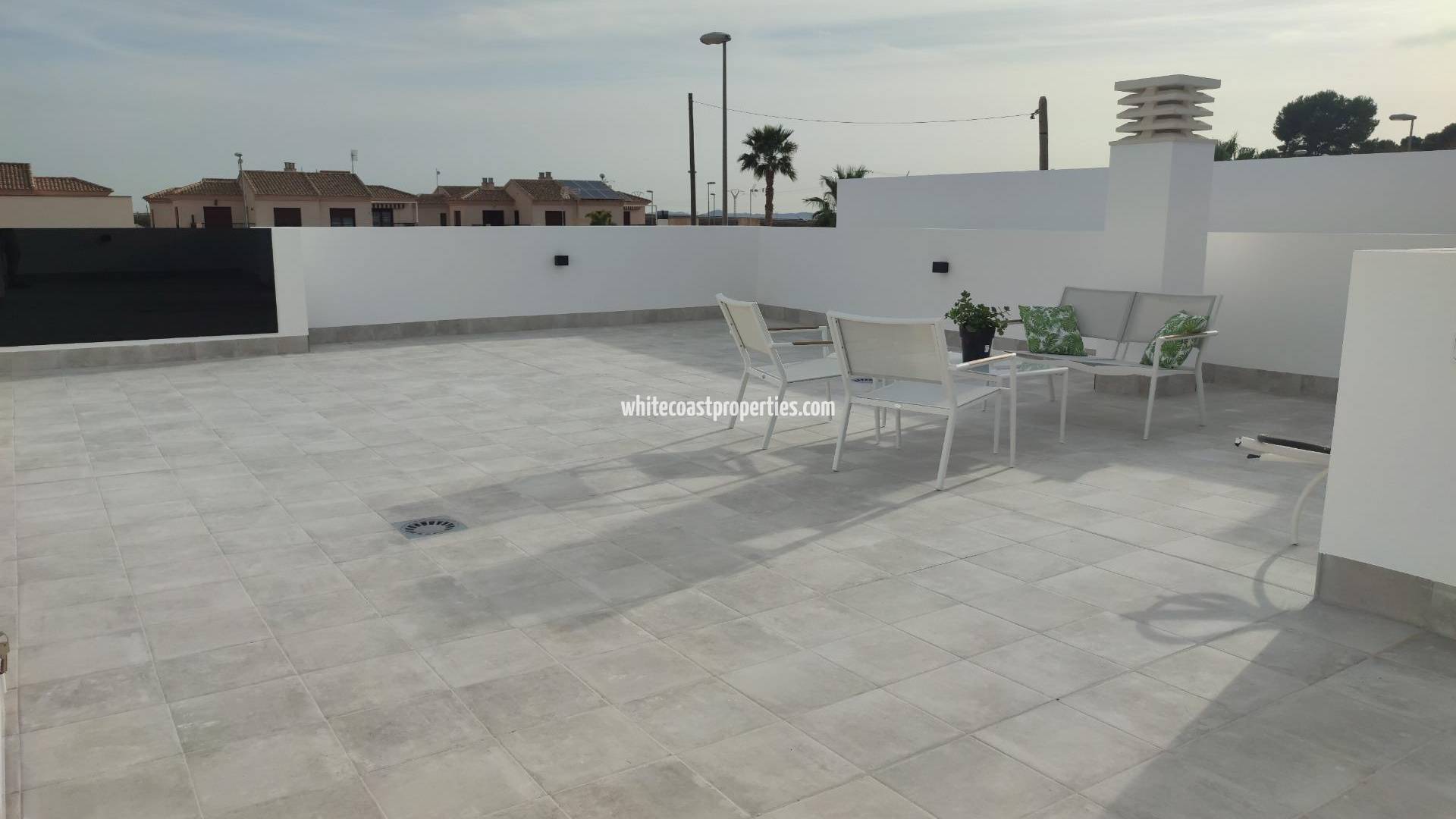 NEW BUILD ONE LEVEL VILLAS IN BALSICAS, MURCIA New Build residential has 6 one level detached villas, with terraced area, private pool, parking on the plot and solarium with Summer kitchen, to enjoy all hours of sunshine every day of the year. Each property has 3 bedrooms and 2 fitted bathrooms. The property has been designed with a contemporary style and an open planned concept, with a fully-fitted kitchen and lounge-dining room. The property will meet the highest standards and will be equipped with: Kitchen completely furnished and equipped with oven, integrated fridge and dishwasher, hob and extractor fan. Kitchen island work zone. Lighting: inside the property (dining room, kitchen, corridors and bathrooms), and as well as in outdoor areas. Lined wardrobes with drawers. Fully fitted bathrooms with toilet, vanity unit, mirror and shower with screen panels. Pre-installation for ducted air conditioning. Solarium with Summer kitchen, with pre-installation for appliances and sliding doors. Private pool with external shower. Parking space on the plot. Balsicas is a perfect place for golf lovers and also for anyone who enjoys green spaces as places of leisure, beauty and tranquillity. Its strategic location makes it possible for the family that decides to live in this complex to have at their fingertips everything that anyone could wish for: a climate where the sun shines almost all year round, nearby beaches, the Mar Menor and its natural muds. with proven healing powers. Complex located 20 minutes from Murcia - Corvera airport and 1 hour from Alicante airport.
