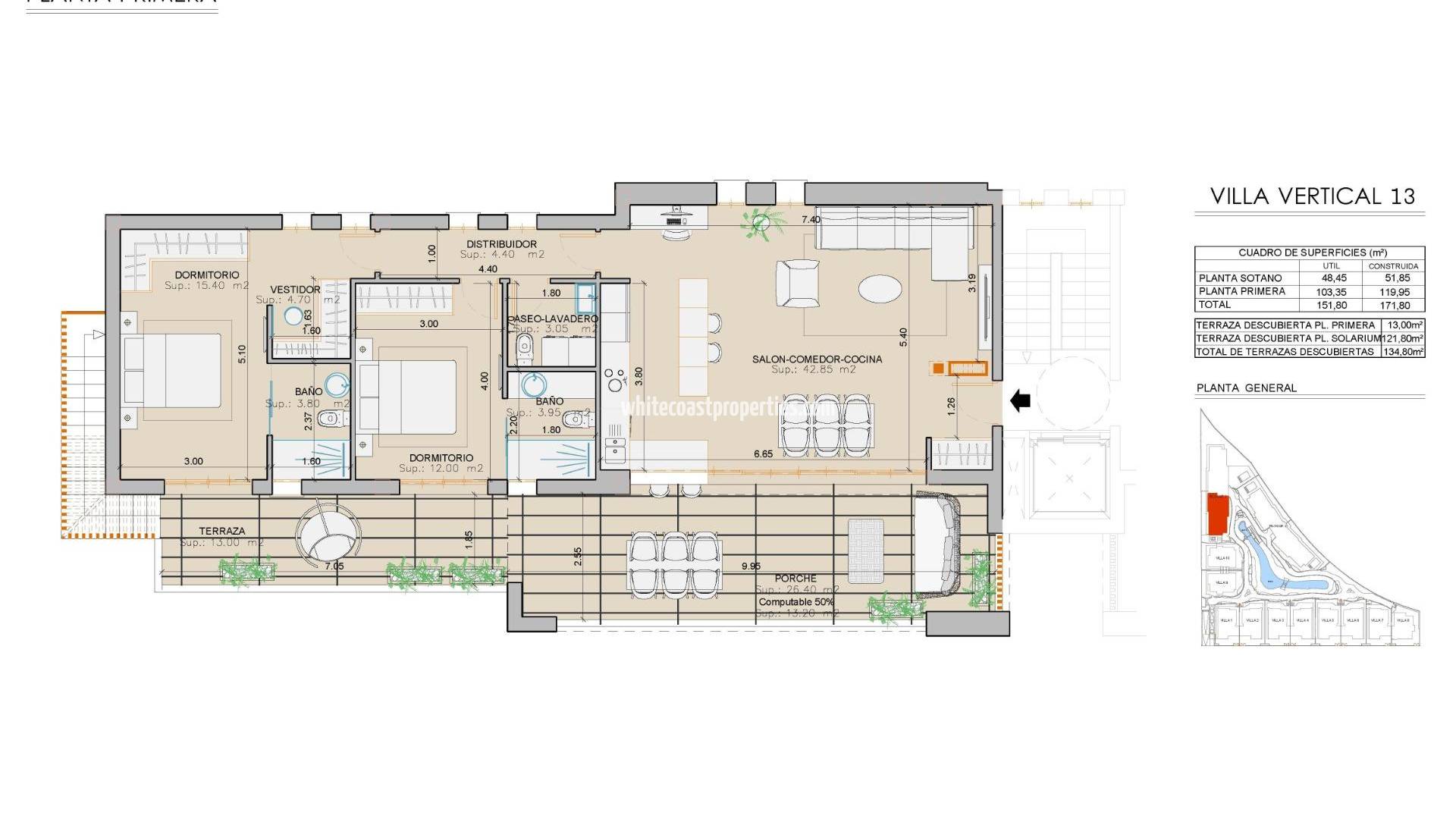 New Build Villas and Bungalows Just 250 Meters from the Beach in Mar de Pulpí Exclusive Residential Project with Villas and Bungalows Near the Sea Discover an exceptional new development located just 250 meters from La Entrevista beach in Mar de Pulpí, Almería. This exclusive residential complex offers two distinct living options: 10 independent villas and 8 bungalows, each designed to offer spacious interiors and high-quality outdoor areas. Located in one of the most peaceful and scenic areas of the Costa de Almería, this project is ideal for those seeking a modern and comfortable home close to the sea, surrounded by natural beauty and essential amenities. Luxury Villas with Basement Garages and Private Terraces The villas feature three spacious bedrooms, each with its own en-suite bathroom. On the ground floor, you'll find a generous bedroom, while the upper level includes two more bedrooms with access to private terraces. The basement garage, directly connected to the villa, offers space for at least two vehicles and bicycles, with natural lighting and ventilation, plus generous storage space. Stylish Bungalows with Private Gardens or Solariums Choose between ground-floor bungalows with private gardens or top-floor options with private solariums. Each bungalow includes two bedrooms, two bathrooms, and a private pool or jacuzzi. They also come with elevators, enhancing accessibility and comfort. The master bedrooms include walk-in closets and large fitted wardrobes, while expansive terraces with bar areas make entertaining and relaxing a joy. Comfort, Style, and Premium Features All homes in the development are equipped with: Double-glazed windows with solar protection and thermal break Electric underfloor heating in all bathrooms Air conditioning (hot and cold) Motorized shutters Modern bathrooms with suspended furniture, mirrors, and shower screens Energy-efficient hot water production via aerothermal systems The residential community also features a multi-level communal pool, offering a shared space for relaxation and enjoyment. Prime Location on the Costa de Almería Located just 250 m from the sandy beach, and only 3 km from San Juan de los Terreros, residents can enjoy a range of amenities including supermarkets, restaurants, shops, and essential services. Distances to key points of interest: Beaches of La Entrevista – 0.25 km San Juan de los Terreros – 3 km Aguilón Golf Course – 7 km Águilas city centre and marina – 12 km Murcia-Corvera Airport – 95 km Almería Airport – 115 km Secure Your Dream Home by the Sea Whether you choose a villa or a bungalow, this residential development offers a perfect blend of quality, location, and lifestyle. Contact us today for more information or to arrange a viewing — your ideal coastal home awaits in Mar de Pulpí.
