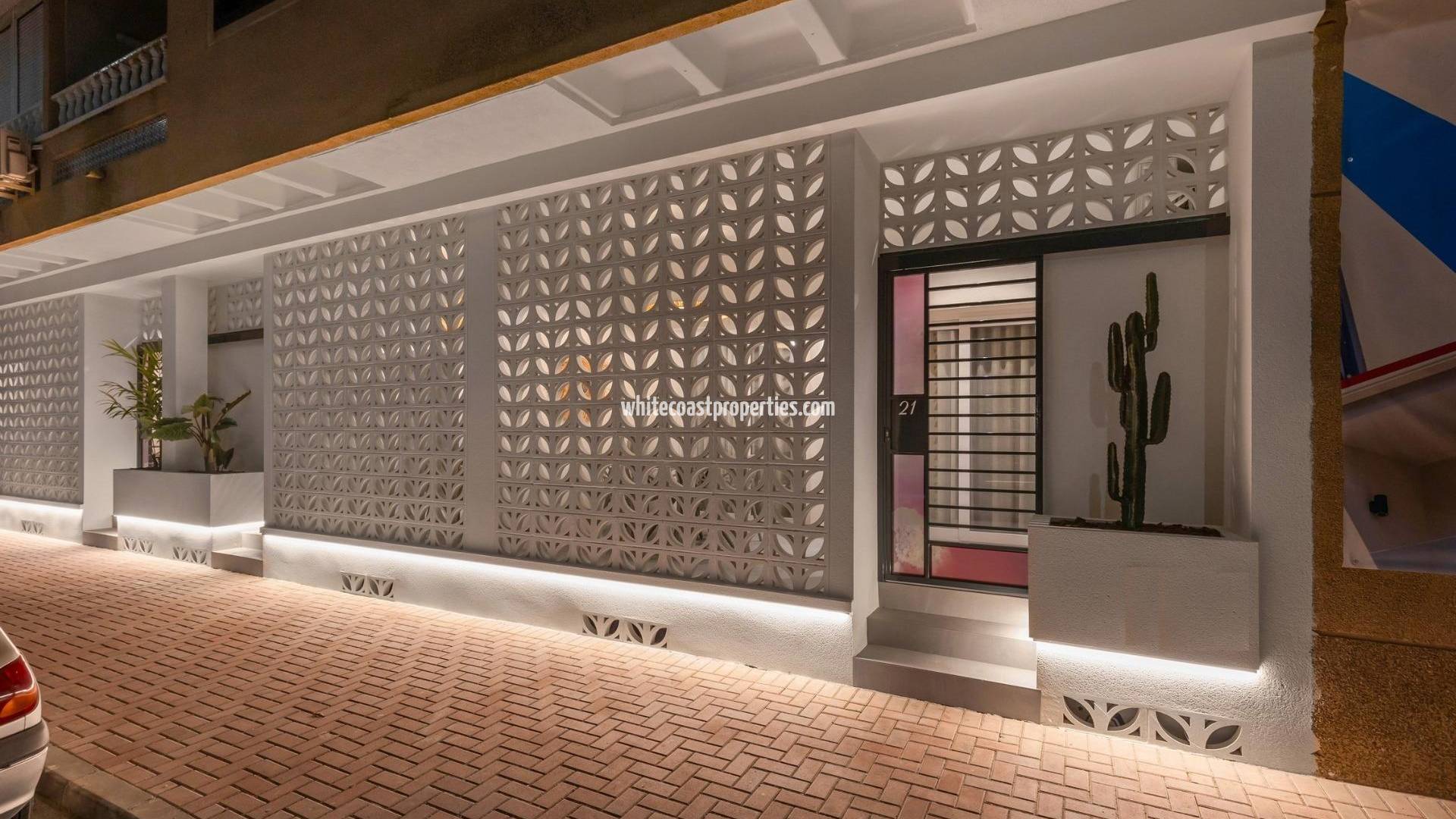 Modern New Build Apartments Just 150 m from the Sea in Torrevieja Exclusive Boutique Development by the Beach This new development offers just 3 modern apartments in a privileged location, only 150 meters from Los Náufragos beach in Torrevieja. Originally part of a commercial space built in 1989, the property has been fully renovated and transformed into stylish one-bedroom, one-bathroom homes designed for modern coastal living. Contemporary Design and Ready-to-Move-In Comfort Each apartment has been completely refurbished with top-quality finishes and is delivered fully furnished and equipped. Features include: Open-plan kitchen with furniture and appliances included Designer furniture, lighting, curtains, televisions, and decoration Air conditioning hot/cold by splits in both living room and bedroom Bathroom with furniture, mirror, and shower screen Front terrace with space for a table and chairs This turnkey solution ensures you can enjoy your new home without the hassle of furnishing or equipping it. Delivery is scheduled for February 2026, once licenses and utility connections are finalized, making it nearly a move-in-ready opportunity. Prime Central Location in Torrevieja Located just a short walk from the sea and 10 minutes from the city center, these apartments enjoy an unbeatable position. Within 300 meters you will find restaurants, supermarkets, pharmacies, banks, and public transport options. The Torrevieja Marina is only 1 km away, and essential services such as the Hospital de Torrevieja and Las Habaneras Shopping Center are within easy reach. Easy Access to Key Destinations Beach of Los Náufragos: 150 m Torrevieja Marina: 1 km Villamartín Golf Course: 10 km Alicante Airport: 45 km A Lifestyle by the Mediterranean Torrevieja is one of the most desirable destinations on the Costa Blanca, known for its sandy beaches, lively promenade, and excellent climate with more than 300 days of sunshine per year. Whether you are seeking a permanent residence, a holiday home, or an investment, this boutique development offers the perfect balance of comfort, style, and location. Secure Your Coastal Apartment Today Experience modern living just steps from the sea. Contact us now to arrange a visit and reserve your new home in Torrevieja before it’s too late.