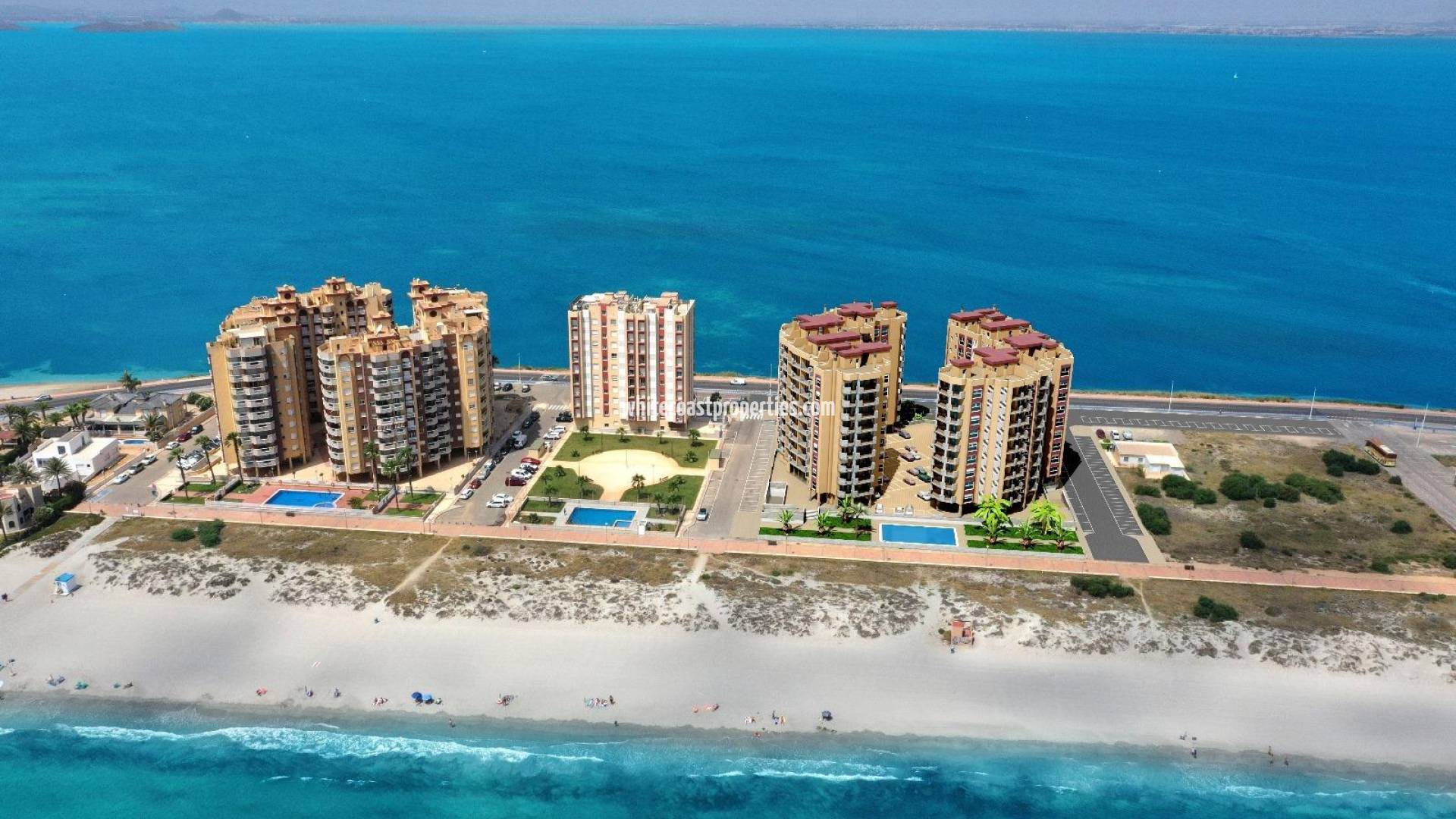 NEW BUILD RESIDENTIAL COMPLEX IN LA MANGA New Build residential complex is located in a unique and special place, between two seas, in a privileged location and with all the services you may need at your fingertips in the Region of Murcia, beautiful coastline with the beaches of transparent and shallow waters. At this residential complex apartments have been designed to make the most of every last corner of the property, as well as the the choice of materials and the design of the homes. Live a world of sensations and pleasurable moments with all the services and activities that you desire at your fingertips. Installations - Air conditioning: Air conditioning system by ducts, for hot and cold, throughout the house (except in distributors and bathrooms) and operated by central console. Electrical appliances: Stainless steel oven. Black ceramic hob with three burners. Stainless steel refrigerator. Extractor hood integrated in furniture. Integrated dishwasher. Common areas: Access to the building via white PVC door and double glazing with air chamber. Entrance halls and stair treads specially decorated with national marble. White thermo-lacquered aluminium handrail on interior staircases. Lighting by presence detection in basement and interior common areas. White motorised sectional garage access door. Stainless steel urbanisation railings. Video door entry system. Satellite dish with European channels. Swimming pool with landscaped solarium. La Manga del Mar Menor is a natural strip of land surrounded by two seas, the Mar Menor and the Mediterranean Sea. To this rarity you can add the multiple leisure and free time options, restaurants, supermarkets, medical censers, pharmacies, nautical sports censers, golf courses. La Manga is located on the north coast of the Costa Calida and is a popular holiday destination for tourists. The narrow land strip separating the warm lagoon and the colder sea has a unique microclimate. It's one of the most exotic areas in Spain. Corvera airport is about 1 hour drive away and Alicante airport about 2 hours away.