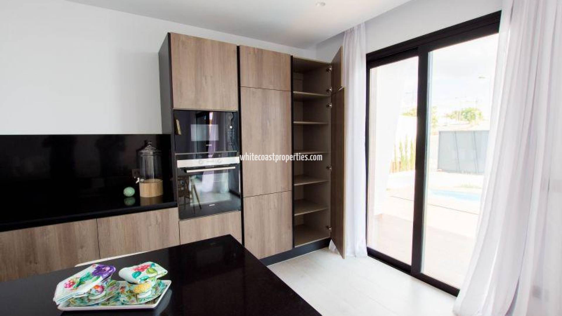 VILLA IN HIGH STANDING URBANIZATION Detached villas on one level, very modern style with beautiful views! Built on a large independent plot, the villa has a constructed area of 150.95 with 3 bedrooms, 2 bathrooms, a bright living room with large windows and direct access to the pool and garden. It also has a solarium from where you will have beautiful open views. A meeting place where you can enjoy with family and friends in a privileged environment, 5 minutes from Benidorm and its famous beach, and 20 minutes from the city of Alicante. The nearest airport is Alicante airport, located 45 km from the flat.