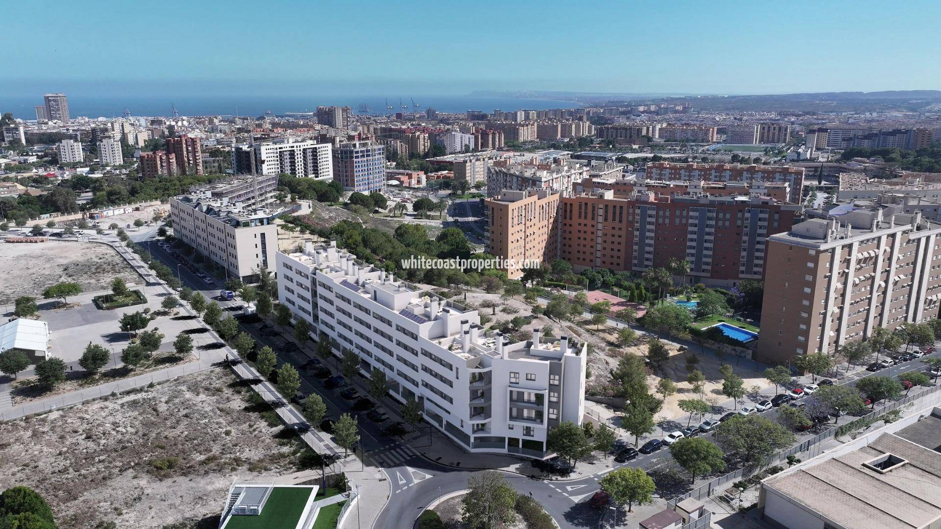 Newly built residential development in Alicante, with open views of the city. The house of your dreams in a privileged location. Discover your new home in Alicante's sought-after San Agustin neighbourhood, where modern living meets picturesque landscapes. This exclusive residential complex, located close to Pau II, offers 47 beautifully designed flats with 2, 3 or 4 bedrooms. The community boasts a communal swimming pool, lush gardens, and includes a garage space and storage room for added convenience. Exclusive amenities for a comfortable lifestyle Enjoy a range of amenities designed to enhance your quality of life. The complex's penthouses feature private solariums accessible directly from the flats, offering breathtaking views of Alicante. Additional amenities include secure bicycle parking, making it easy to adopt an active lifestyle. Your new home features centralized aerothermal water heating for energy efficiency and year-round comfort with integrated air conditioning (hot/cold) distributed through ducts. High-quality PVC or aluminum carpentry with thermal and acoustic insulation ensures a peaceful, climate-efficient environment. Conveniently Connected to Everything You Need Located between Gran Vía and Vía Parque, the development offers excellent connectivity to the city center and major thoroughfares like the A7 highway. The central location is ideal for families and professionals, with nine educational institutions of all levels within close proximity. For daily needs, you’ll find four large supermarkets and the Isla de Corfú Shopping Center nearby, offering gyms, restaurants, and a variety of shops. Everything you need is within walking distance, allowing you to leave your car at home. A Neighborhood Rich in Accessibility and Natural Beauty The San Agustín neighborhood sits atop a gentle hill, offering panoramic views of the city skyline, Monte Benacantil, and surrounding mountains. Alicante’s Mediterranean climate makes outdoor living a joy year-round, with plenty of green spaces and leisure options nearby. Key distances: Alicante city center: 2 km Alicante-Elche Airport: 14 km Playa de San Juan (beach): 6 km Alicante Golf Course: 7 km Port of Alicante: 5 km Experience the Best of Alicante Living Alicante’s exceptional climate, vibrant culture, and excellent infrastructure make it one of Spain’s most desirable cities to call home. This new residential development in San Agustín combines stylish design with an unbeatable location, making it the ideal place for your next chapter. Contact us today to schedule a visit and make this dream home yours!