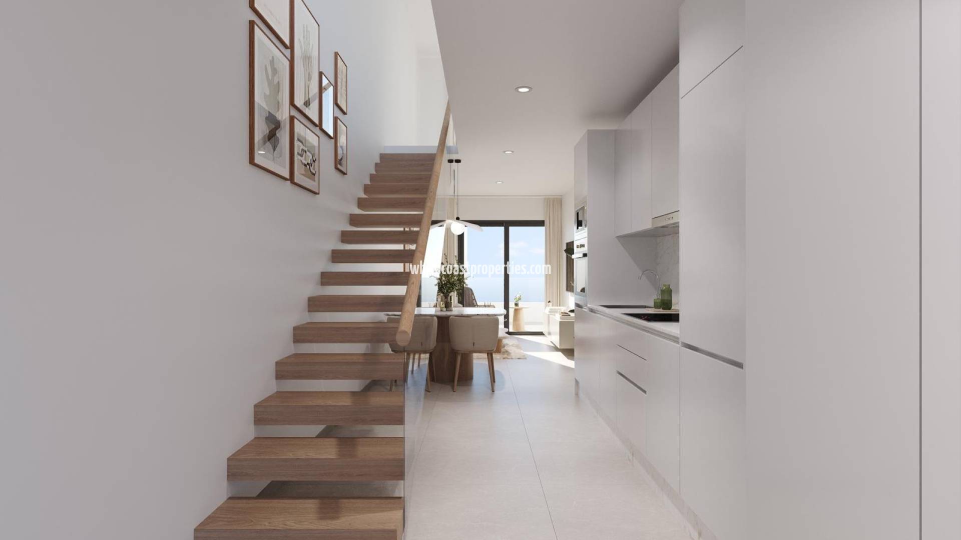Newly built apartments in Torrevieja Just 600 metres from Playa del Cura beach Prime location in the heart of Torrevieja Discover these brand new apartments and penthouses in one of the most sought-after areas of Torrevieja, just 600 metres from Playa del Cura beach and 300 metres from the seafront promenade. Located in the city centre, this lively neighbourhood offers all essential amenities within walking distance, including supermarkets, shops, restaurants, cafés and public transport. Torrevieja is a well-known coastal town on the Costa Blanca, famous for its mild Mediterranean climate, lively atmosphere and year-round seaside lifestyle. Modern apartments with spacious layouts This exclusive new development consists of only 12 one- and three-bedroom apartments and penthouses, designed for comfort, functionality and contemporary style. The apartments on the middle floors feature spacious terraces, while the penthouses enjoy an additional private solarium, ideal for sunbathing or al fresco dining. All homes include an open-plan kitchen connected to the living-dining room, creating bright and welcoming interiors. The bedrooms have fitted wardrobes and the bathrooms are fully equipped with furniture, mirrors and shower screens. Optional parking spaces are available at an additional cost. Quality finishes and energy-efficient features The flats are built with high-quality materials and a strong focus on energy efficiency. The aluminium exterior joinery includes thermal break technology and double glazing for thermal and acoustic insulation. Motorised shutters add convenience and security. Each home has pre-installation for ducted air conditioning and heating, reinforced entrance doors and white lacquered interior doors. Hot water is produced by an aerothermal system, reducing energy consumption and improving sustainability. Roof terrace solarium with communal swimming pool Residents can enjoy an exclusive roof terrace solarium with communal swimming pool, accessible by lift or stairs. This private area is perfect for relaxing, sunbathing and enjoying panoramic views of the city. It offers a peaceful retreat above the bustling streets of Torrevieja and adds significant value to the development. Lifestyle and surroundings of Torrevieja Torrevieja is known for its extensive coastline, sandy beaches and iconic salt flats. The Lagunas de La Mata y Torrevieja Natural Park is located about 5 km away and offers hiking trails and unique landscapes. Several golf courses, such as Villamartin Golf and Las Colinas Golf, are between 12 and 18 km away. The marina and port of Torrevieja are approximately 1 km away. Alicante Airport is about 45 km away and Murcia International Airport is about 65 km away, both with excellent European connections. Your home on the coast awaits Don't miss this opportunity to purchase a modern, newly built apartment near the beach in Torrevieja. Contact us today for more information or to arrange a private viewing.