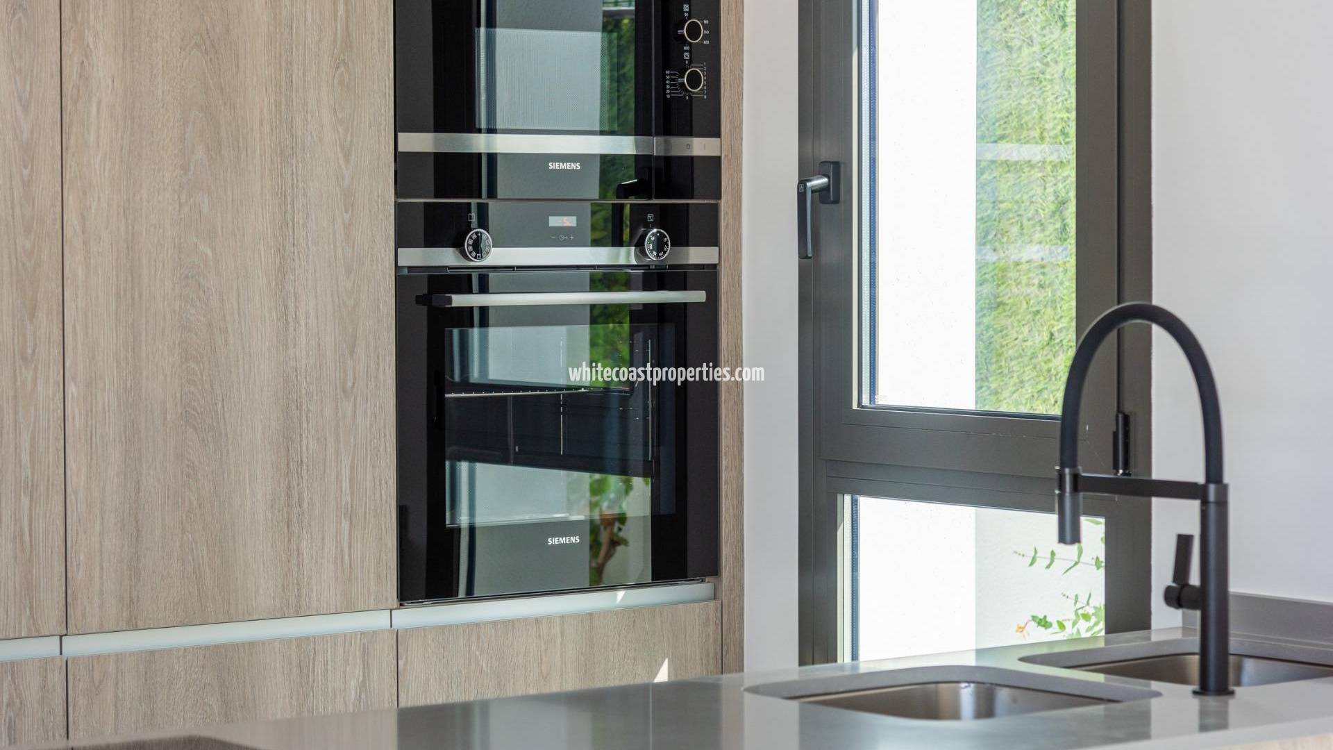 NEW BUILD VILLAS IN SAN JAVIER New Build residential of villas in San Javier. Villas build over 1 floor and consists of 3 bedrooms, 2 bathrooms, open plan kitchen, the living room with open views to the terrace, solarium, private garden with the pool. Fully furnished kitchen in white gloss or wood colour includes Induction hob with integrated extractor, oven, microwave, washing machine, integrated refrigerator, and integrated dishwasher. Complete Air Conditioning installation through ducts. Pool has pre-installation for heat pump. San Javier is close to all amenities with easy access to the beach, water sports, shops and the transport network. Here you can enjoy all of the facilities that San Javier has to offer such as the local shops, bars and restaurants as well as being near to shopping centres, the airport of Murcia and all of the beautiful places to be found along the Mar Menor. Corvera/Murcia airport is 30 minutes away and Alicante airport is 45 minutes away.