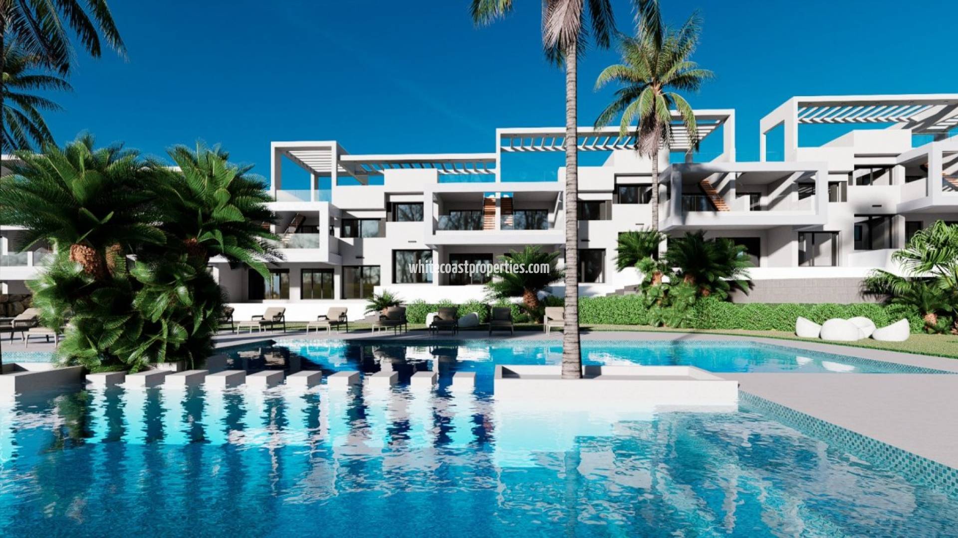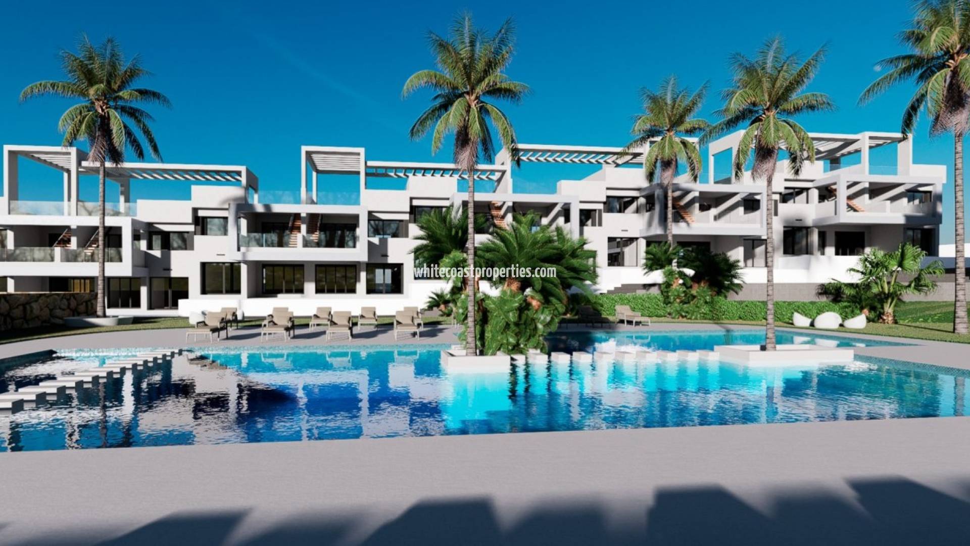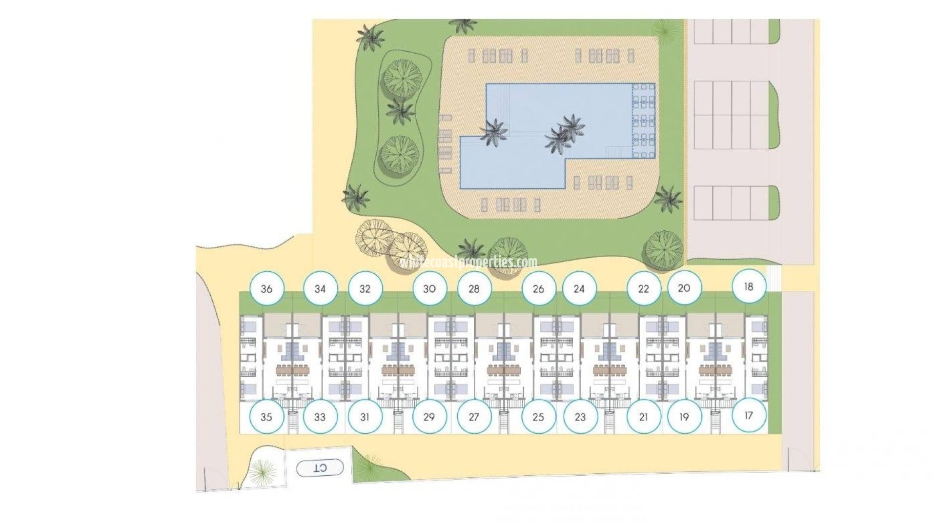 NEW BUILD RESIDENTIAL COMPLEX IN FINESTRAT New Build residential complex in Finestrat located in one of the best areas to live in the Costa Blanca. New Build complex consists of 20 bungalows with 2 bedrooms and 2 bathrooms with access to the common areas and swimming pool. Ground floor bungalows have 131 m² built area, distributed in a spacious living-dining room with open kitchen, 2 large bedrooms and 2 complete bathrooms, plus 2 terraces of 31.40 m² and 25.35 m². The top floor bungalows have 178.51 m² built area, distributed in 2 spacious bedrooms, 2 bathrooms, a living-dining room with open-plan kitchen, a terrace of 18.31 m² and a magnificent solarium of 85.82 m² All the bungalows comes with parking space. The properties have magnificent views of the sea and the Benidorm skyline. Finestrat located in the Marina Baixa region of the Costa Blanca, close to neighbouring Benidorm and about 40 kilometres from the city of Alicante and the international airport. Benidorm is just a five-minute drive from the properties and offers all the services you would need including shops, bars, restaurants, supermarkets, banks, pharmacies and several private international schools. Close to the beaches of Levante, Poniente and Cala de Finestrat, with more than 6km in length that are among the best in Europe awarded by the European Union with Blue Flags. All leisure services such as the theme parks of Aqua Natura, Terra Mítica, Terra Natura, Aqualandia and Mundomar, Sierra Cortina and Villaitana Golf courses, hiking and climbing in Puig Campana an incomparable natural setting or enjoy of nautical sports.