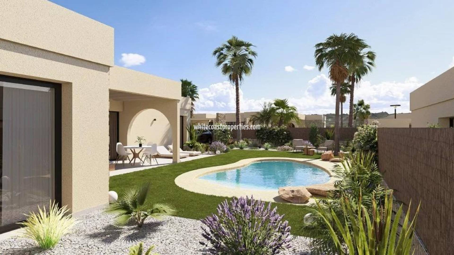 Contemporary One Level Villas in Altaona Golf Resort Murcia Prime Golf Resort Location Near Murcia City Discover this exclusive collection of new build detached villas located in the prestigious Altaona Golf Resort in Murcia. Set within a secure and peaceful environment surrounded by nature and an 18 hole golf course, this residential community offers the perfect balance between tranquility and accessibility. Altaona Golf is just 15 km from Murcia city center, where you will find shopping centers, restaurants, schools and medical services, while the beaches of the Costa Calida are only 20 km away. Murcia Corvera Airport is conveniently located 15 km from the resort, making this an ideal location for both permanent living and holiday homes. Modern Single Level Design with Private Garden and Pool These elegant villas are designed on one level for maximum comfort and functionality. Buyers can choose between 2, 3 or 4 bedrooms and 2 or 3 bathrooms plus a guest toilet. Each home features an open plan kitchen and living area that connects seamlessly to the outdoor terrace and private landscaped garden with swimming pool. A private parking space is included within the plot, ensuring convenience and privacy. Energy Efficient Homes with High Quality Features All villas hold an Energy Certificate Rating A, ensuring excellent energy efficiency and low running costs. The properties include ducted air conditioning with heat pump throughout the house except bathrooms, and electric underfloor heating in the living room and bathrooms with independent thermostats by zone. A mechanical ventilation system renews the air in kitchens, bathrooms, laundry room and guest toilet, improving indoor comfort. The kitchen comes equipped with an extractor hood and electric induction hob. LED lighting is included in the living room, hallway and exterior areas, while the remaining rooms are prepared for the owner to customize lighting. Bedrooms are fitted with USB charging points for added convenience. Smart Home Technology and Secure Community Each villa includes a video intercom system, smart home automation with two intelligent switches, and motorized vehicle access to the gated community. The private garden is delivered landscaped with a drip irrigation system and an inviting private swimming pool, ideal for enjoying the Mediterranean climate all year round. Distances to Key Points of Interest Altaona Golf Course 0.1 km Murcia city center 15 km Beaches of Los Alcazares and Mar Menor 20 km Murcia Corvera Airport 15 km Shopping centers and services 10 km Hacienda Riquelme Golf Resort 12 km Your New Lifestyle in Altaona Golf Awaits Enjoy golf, nature, security and modern comfort in one of the most attractive resorts in the Murcia region. Contact us today to receive more information or to arrange a visit to these beautiful new build villas.